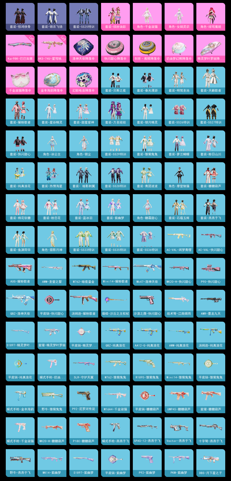 【和平精英】【lyhp21968】4粉装,3特效呛,0载具,历史最高段位:超级王牌13星 王牌印记10次 热力值:37842,92套装,130呛械,179装备,91战备;套装:套装-缤纷油彩,角色-千金淑猫,角色-绯穹魔姬,角色-女娲灵识,套装-特训学院,套装-白色伏地魔,套装-竞技名士,套装-深蓝色名流,套装-酒红色名流,套装-长空猛禽,套装-灼焰舞者,套装-人气偶像,套装-魅力单车,套装-竞技达人朋克,套装-青涩时光,套装-缤纷果语,套装-龙魂突击队,套装-元素星魂,套装-极速红龙,套装-万圣娃娃,套装-破蛋小黄鸡,套装-霓虹街区,套装-白糯汤圆,套装-战术大师,套装-耀粉歌者,套装-热情海星,套装-纯真浪花,套装-天籁歌者,套装-吉莉礼服,套装-甜星爱神,套装-银月精灵,套装-星谷精灵,套装-青玉碎影,套装-恋恋初桃,套装-龟仙人,套装-ss25特训,套装-惊鸿侠骨,套装-锦衣飞扬,套装-香桃花海,套装-龙的传人,套装-冰河战士,套装-ss26特训,套装-快闪甜心,套装-春光漫游,套装-漫游都市,套装-空岛之星,套装-明鸳圣池,套装-贝斯之夜,套装-ss27特训,套装-恋语绒绒,套装-ss28特训,套装暗影刺翼,角色-冰公主,角色-银尘,套装-街头风暴,套装-海盐绵绵冰,套装-蝶变,套装-甜酷狙击,套装-粉日山川,套装-ss29特训,套装-雏菊兔兔,套装-萝兰蝴蝶,角色-摩登魅猫,套装-星途旅人,角色-糖霜甜心,套装-ss30特训,套装-青团波波,套装-棉花软糖,角色-光矢逐梦,套装-糖糖葫芦,套装-绒宝小鹅,套装-ss31特训,套装-鱼渊荷华,套装-石蕴玉辉,套装-燕燕于飞,套装-智谋强哥,套装-紫幽梦,套装-粉恋花,套装-ss33特训,角色-猎影月神,套装-巳巳如意,套装-ss32特训,套装-青翼流星,套装-蓝冰羽,套装-大橘大利,套装-元气之梦,套装-ss34特训,套装-薄荷星砂,套装-ss35特训,套装-ss37特训,套装-ss36特训,套装-雪国风尚;呛皮:m762-彩虹符号,m762-暗夜鎏金,m762-雏菊兔兔,蜜獾-天降萌叽,蜜獾-精灵梦叶罗丽,蜜獾-糖糖葫芦,蜜獾-乌木金纹,akm-霓虹街区,akm-涂鸦街区,akm-龙的传人,akm-棋盘冕主,scar-l-红色方程式,scar-l-炫彩节奏,scar-l-海盐豹豹,aug-耀粉歌者,aug-天降萌叽,aug-异域银装,aug-月影灵韵,aug-绝对恒星,groza-海盐豹豹,m16a4-幻世战舞者,m16a4-冰河战士,m16a4-千金淑猫,ac-val-闲梦青缨,ac-val-快闪甜心,ace32-冰晶雪宝,m416-蓝色火焰,m416-红色方程式,m416-糯团青竹,q-洛神天依,q-纯真浪花,mk47-洛神天依,famas-乌木金纹,awm-天降萌叽,awm-圣堂之誓,awm-纯真浪花,amr-墨龙九天,amr-乌木金纹,5级kar98k-巳巳如意,kar98k-彩虹符号,m24-幻彩电音,m200-惊鸿侠骨,m200-乌木金纹,mk14-冰河战士,mk14-紫幽梦,mk14-薄荷星砂,mk20-h-快闪甜心,mk20-h-星途旅人,mk20-h-樱桃泡泡,mk20-h-糖糖葫芦,mk20-h-狂鲨锋刃,mk20-h-乌木金纹,mini14-耀粉歌者,mini14-香桃花海,mini14-雏菊兔兔,m417-惊鸿侠骨,vss-香桃花海,mk12-乌木金纹,slr-守护天翼,slr-乌木金纹,vect-燕燕于飞,汤姆逊-耀粉歌者,汤姆逊-炫彩节奏,汤姆逊-天降萌叽,汤姆逊-纯真浪花,mp5k-乌木金纹,野牛-雏菊兔兔,野牛-燕燕于飞,p90-快闪甜心,p90-玩趣呆呆,p90-巳巳如意,p90-乌木金纹,3级aks-74u-星穹咏叹调,aks-74u-乌木金纹,uzi-天降萌叽,uzi-冰河战士,uzi-啾咪啾咪,ump45-蓝色火焰,ump45-糖糖葫芦,spas-12-燕燕于飞,spas-12-乌木金纹,s1897-炫彩节奏,s1897-精灵梦叶罗丽,s1897-紫幽梦,s1897-糯团青竹,aa12-g-纯真浪花,s686-巳巳如意,s12k-玩趣呆呆,dbs-幻彩电音,dbs-月影灵韵,dbs-月下星之子,dbs-乌木金纹,mg3-乌木金纹,mg3-惊鸿侠骨,pkm-啾咪啾咪,pkm-紫幽梦,m249-彩虹符号,m249-冰晶雪宝,mg-36-薄荷星砂,5级dp-28-豹影疾电,dp-28-彩虹独角兽,p92-尼罗河传说,p92-紫幽梦,蝎式手呛-奶油梦幻熊,蝎式手呛-金丰海韵,蝎式手呛-千金淑猫,蝎式手呛-燕燕于飞,蝎式手呛-六号稻草人,p18c-糖糖葫芦,沙墨之鹦-快闪甜心,短管霰弹-星穹咏叹调,r1895-雏菊兔兔,tmp-9-雪月幻音,平底锅-惊鸿侠骨,平底锅-快闪甜心,平底锅-空岛之星,平底锅-精灵梦叶罗丽,平底锅-纯真浪花,平底锅-雏菊兔兔,平底锅-糖糖葫芦,平底锅-紫幽梦,撬棍-沙丘之主权杖,撬棍-冰晶雪宝,战术弩-江南烟雨,破片手留单-呆爆全场,破片手留单-星途旅人,破片手留单-海盐豹豹,破片手留单-巳巳如意,十子怒-燕燕于飞,爆炸猎弓-惊鸿侠骨;降落伞:空岛之星尾迹,公主华盖飞行器,顶峰精英尾迹,狂鲨锋刃飞行器,马上有福飞行器; 详情看图高印记 4粉装3特效呛 缤纷油彩 千金淑猫 女娲灵识 绯穹魔姬