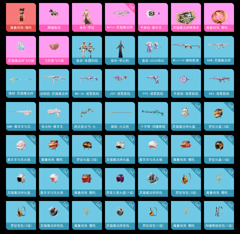 【和平精英】【lyhp21967】1粉装,3特效呛,1载具,历史最高段位:荣耀皇冠ⅰ 王牌印记-1次 热力值:10678,8套装,27呛械,46装备,13战备;套装:魔童闹海-哪吒,角色-罗征,角色-无面战甲,套装-朱霞炽焰,角色-申公豹,套装-ss37特训,套装-ss36特训,套装-雪国风尚;呛皮:aug-紫晶流影,3级m416-灵猫魔法师,ace32-冰晶雪宝,arx-凌霄紫焰,groza-无面战甲,akm-灵猫魔法师,amr-喜羊羊与灰太狼,mini14-耀粉歌者,mk12-乌木金纹,汤姆逊-灵猫魔法师,aks-74u-乌木金纹,js9-凌霄紫焰,mg3-幻世战舞者,mg-36-凌霄紫焰,mg-36-薄荷星砂,m249-无面战甲,2级dp-28-豹影疾电,电击呛-喜羊羊与灰太狼,p92-凌霄紫焰,p1911-无面战甲,1级平底锅-喜羊羊与灰太狼,平底锅-凌霄紫焰,撬棍-灵猫魔法师,撬棍-火尖呛,燃点复合弓-火尖莲影,十子怒-异瞳寒姬,破片手留单-火尖莲影;载具:黑曜夜骑;降落伞:灵猫魔法师飞行器,炫彩糖果飞行器,飞天猪飞行器; 详情看图1红装1粉装3特效呛1载具 1级哪吒 罗征 3级m4灵猫魔法师 黑曜夜骑