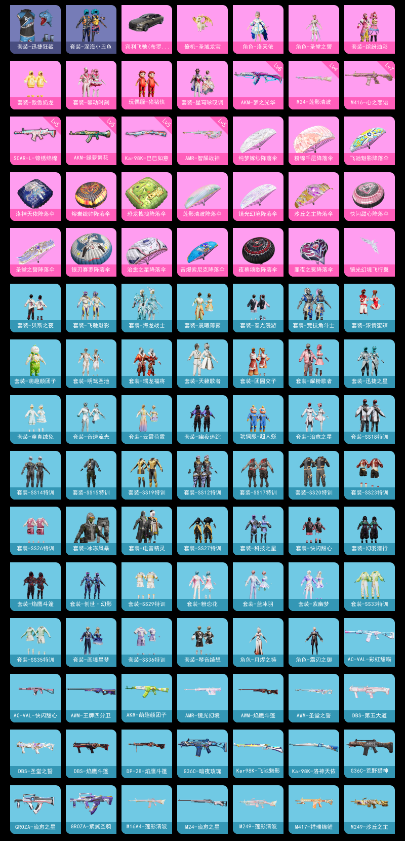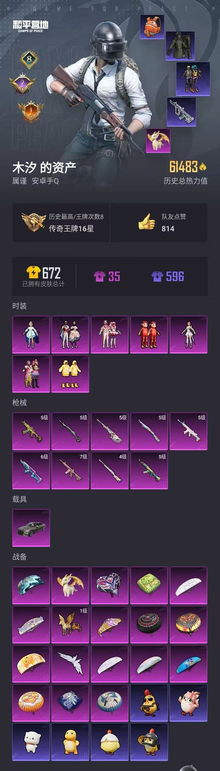 【和平精英】【lyhp21948】7粉装,9特效呛,1载具,历史最高段位:传奇王牌16星 王牌印记8次 热力值:61483,132套装,181呛械,215装备,121战备;套装:套装-缤纷油彩,套装-馨动时刻,角色-洛天依,角色-圣堂之誓,套装-傲傲奶龙,玩偶服-猪猪侠,套装-星穹咏叹调,套装-特训学院,套装-蓝色运动,套装-黄色伏地魔,套装-白色伏地魔,套装-黑色伏地魔,套装-骑行爱好者,套装-竞技名士,套装-深蓝色名流,套装-酒红色名流,套装-湖蓝色名流,套装-黄色名流,套装-猛禽,套装-长空猛禽,套装-旭日情侣,套装-冷焰舞者,套装-战地菁英,套装-战地督导,套装-青春校园,套装-甜蜜告白,套装-滨海假日,套装-冰冻风暴,套装-人气偶像,套装-幻影武者,套装-海滨突袭者,套装-街头潮人,套装-蓝彩潮人,套装-魅力单车,套装-绮丽涂鸦,套装-竞技达人朋克,套装-夜莺强袭者,套装-野性战魂,套装-破晓战魂,套装-都市魅力,套装-ss2特训,套装-雪山精英,套装-幻世战舞者,套装-迅捷狂鲨,套装-深海小丑鱼,套装-缤纷果语,套装-龙魂突击队,套装-极速红龙,套装-格斗先锋,套装-破蛋小黄鸡,套装-疯狂小兔子,套装-霓虹街区,套装-萌黄之夏,套装-夏日音浪,套装-探宝勇士,套装-牛气满满,套装-白糯汤圆,套装-萌趣颜团子,套装-战术大师,套装-ss12特训,套装-ss18特训,套装-耀粉歌者,套装-迅捷之星,套装-治愈之星,套装-科技之星,套装-竞技角斗士,套装-ss14特训,套装-天籁歌者,套装-电音精灵,套装-吉莉礼服,套装-ss15特训,套装-ss17特训,套装-瑞龙福将,套装-团圆交子,套装-福星高照,套装-海龙战士,套装-虎虎生威吉莉,套装-空投萌叽,套装-ss19特训,套装-浓情蜜辣,套装-飞驰魅影,套装-音速流光,套装-炫蓝之夏,套装-ss20特训,套装-绯格组合,套装-ss23特训,套装-恋恋初桃,套装-龟仙人,套装-云霞荷露,套装-晨曦薄雾,套装-香桃花海,套装-冰河战士,套装-ss26特训,套装-快闪甜心,套装-春光漫游,套装-空岛之星,套装-明鸳圣池,套装-童真绒兔,套装-贝斯之夜,玩偶服-超人强,套装-焰鹰斗篷,套装-幽夜迷踪,套装-幻羽潜行,套装-ss27特训,套装-恋语绒绒,套装-老实芭蕉,套装-海盐绵绵冰,套装-蝶变,套装-创世·幻影,套装-ss29特训,套装-异域银装,套装-星途旅人,套装-ss30特训,套装-ss31特训,套装-紫幽梦,套装-粉恋花,套装-ss33特训,套装-巳巳如意,套装-ss32特训,套装-蓝冰羽,套装-ss34特训,套装-薄荷星砂,套装-ss35特训,套装-琴音绮想,套装-画境星梦,角色-月烬之祷,套装-ss37特训,套装-ss36特训,角色-霜刃之御,套装-红釉青花,套装-雨过天青,套装-萌鸡速递;呛皮:mk47-洛神天依,q-彩虹符号,q-洛神天依,q-飞驰魅影,6级akm-梦之光华,5级akm-绿萝繁花,akm-灼热熔岩,akm-生命誓言,akm-破晓战魂,akm-霓虹街区,akm-夜灯,akm-彩虹符号,akm-萌趣颜团子,akm-虎虎生威,akm-江南烟雨,groza-治愈之星,groza-彩虹符号,groza-紫翼圣骑,groza-福马献瑞,ace32-画境星梦,ace32-冰晶雪宝,m16a4-生命誓言,m16a4-红色方程式,m16a4-幻世战舞者,m16a4-莲影清波,m16a4-冰河战士,m16a4-雨过天青,5级scar-l-锦绣绵绵,scar-l-红色方程式,scar-l-炫彩节奏,scar-l-玉兔迎春,scar-l-是爱神辣,scar-l-海盐豹豹,m762-牛气冲天,m762-瑞龙福将,m762-天降萌叽,m762-乌木金纹,g36c-荒野猎神,g36c-暗夜玫瑰,g36c-霁蓝缠春,g36c-乌木金纹,ac-val-彩虹甜喵,ac-val-天降萌叽,ac-val-快闪甜心,ac-val-荒原烈焰,7级m416-心之恋语,m416-红色方程式,m416-糯团青竹,蜜獾-精灵梦叶罗丽,蜜獾-乌木金纹,famas-霓彩脉冲,famas-乌木金纹,aug-异域银装,aug-乌木金纹,5级amr-智耀战神,amr-镜光幻境,amr-雨过天青,amr-乌木金纹,4级m24-莲影清波,m24-治愈之星,m24-乌木金纹,5级kar98k-巳巳如意,kar98k-红色方程式,kar98k-王子的夏天,kar98k-彩虹符号,kar98k-炫彩节奏,kar98k-洛神天依,kar98k-飞驰魅影,kar98k-顶峰精英,awm-王牌四分卫,awm-天降萌叽,awm-圣堂之誓,awm-焰鹰斗篷,win94-瑞龙福将,win94-乌木金纹,m200-罪夜之冕,m200-乌木金纹,mk12-乌木金纹,vss-香桃花海,mk20-h-莲影清波,mk20-h-快闪甜心,mk20-h-星途旅人,mk20-h-乌木金纹,sks-迅猛狂鲨,sks-夜灯,sks-炫彩节奏,mk14-治愈之星,mk14-乌木金纹,mk14-冰河战士,mk14-紫幽梦,mk14-阳光菠萝,slr-霓彩脉冲,slr-乌木金纹,mini14-生命誓言,mini14-炫彩节奏,mini14-香桃花海,m417-祥瑞锦鲤,m1加兰德-画境星梦,p90-飞驰魅影,p90-快闪甜心,p90-玩趣呆呆,p90-巳巳如意,p90-紫矿核心,mp5k-蓝莓炮弹,mp5k-画境星梦,mp5k-乌木金纹,vect-生命誓言,vect-彩虹符号,vect-治愈之星,vect-焰鹰斗篷,5级aks-74u-森灵之息,aks-74u-乌木金纹,野牛-沙丘之主,野牛-乌木金纹,uzi-红色方程式,uzi-冰河战士,uzi-啾咪啾咪,ump45-夜灯,ump45-生命誓言,ump45-海盐豹豹,汤姆逊-银刃赛罗,汤姆逊-炫彩节奏,汤姆逊-天降萌叽,汤姆逊-乌木金纹,spas-12-福马献瑞,spas-12-乌木金纹,dbs-第五大道,dbs-圣堂之誓,dbs-焰鹰斗篷,dbs-幻彩电音,s12k-瑞龙福将,s12k-音爆索尼克,s12k-玩趣呆呆,aa12-g-画境星梦,aa12-g-雨过天青,s686-红色方程式,s1897-春暖花开,s1897-炫彩节奏,s1897-飞驰魅影,s1897-紫幽梦,s1897-乌木金纹,5级dp-28-豹影疾电,dp-28-彩虹符号,dp-28-焰鹰斗篷,mg3-瑞龙福将,mg3-幻世战舞者,mg3-乌木金纹,mg3-霓彩脉冲,mg-36-薄荷星砂,m249-破晓战魂,m249-糯团青竹,m249-莲影清波,m249-沙丘之主,m249-乌木金纹,pkm-雨过天青,pkm-紫幽梦,p92-紫幽梦,沙墨之鹦-快闪甜心,沙墨之鹦-雨过天青,p18c-熔岩统帅,平底锅-紫电流光,平底锅-治愈之星,平底锅-瑞龙福将,平底锅-空投萌叽,平底锅-飞驰魅影,平底锅-光之冒险,平底锅-快闪甜心,