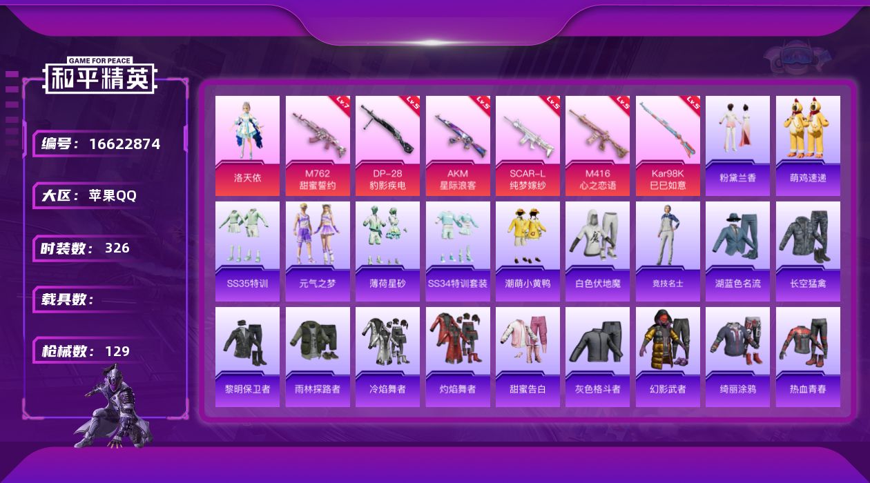 [16622874]1粉装 6特效呛 4印记 可二次 可修改实名 和平王者连体账号 【热门装扮】洛天依潮萌小黄鸭 【稀有呛皮】kar98k-巳巳如意dp-28-豹影疾电m416心之恋语m762甜蜜誓约akm星际浪客scar-l纯梦嫁纱 【七级特效呛】七级m762-甜蜜誓约 【五级特效呛】五级kar98k-巳巳如意五级m416-心之恋语五级dp-28-豹影疾电五级scar-l-纯梦嫁纱五级akm-星际浪客 【紫色装扮】ss34特训套装冷焰舞者吉莉礼服ss33特训套装ss31特训套装湖蓝色名流灰色格斗者灼焰舞者热血青春沙漠兵团幻世战舞者幻影武者格斗先锋ss19特训ss18特训天籁歌者ss16特训瑞龙福将团圆交子ss17特训妙红点点幻彩翩翩ss23特训牛气满满ss20特训ss21特训牛气冲天萌鸡速递粉黛兰香ss35特训薄荷星砂元气之梦绮丽涂鸦缤纷果语空投萌叽虎虎生威吉莉空岛之星暴风机械师王牌教练甜蜜告白福星高照疯狂小兔子白色伏地魔破蛋小黄鸡黎明保卫者龙的传人龟仙人酷潮明星长空猛禽雨林探路者雪山精英时空追击者竞技名士异域银装玉兔迎春神气柴柴ss24特训ss24特训套装绚紫流光ss25特训ss26特训恋语绒绒耀粉歌者ss10特训纯白誓言暗夜契约机械英豪机械征服者ss11特训众神之王智慧之神ss9特训舞夜骑士ss14特训萌趣颜团子特种颜团子ss15特训暗夜傀儡科技之星治愈之星原初圣火逆风勇士ss12特训骁骑迪迦ss32特训套装萌黄之夏弄潮海豚 【优质战备】赛博古神降落伞极意拳锋飞行器炫彩糖果降落伞炫彩糖果飞行器蓝莓炮弹降落伞