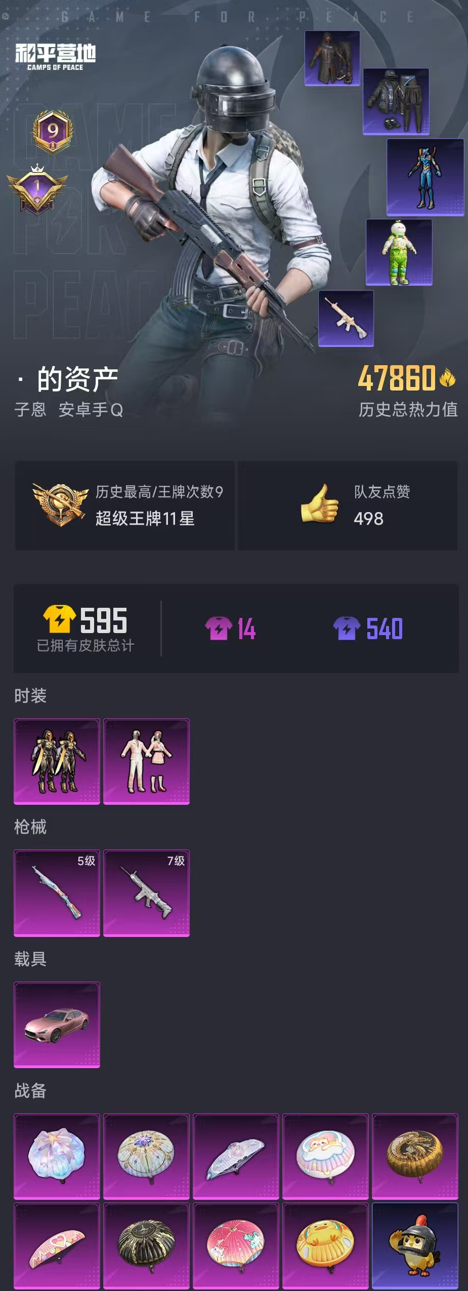 【和平精英】【lyhp21915】2粉装,2特效呛,1载具,历史最高段位:超级王牌11星 王牌印记9次 热力值:47860,108套装,174呛械,187装备,100战备;套装:套装-第五大道,套装-创世·救赎,套装-猎鹰,套装-红色运动,套装-白色伏地魔,套装-黑色伏地魔,套装-骑行爱好者,套装-竞技名士,套装-深蓝色名流,套装-酒红色名流,套装-湖蓝色名流,套装-黄色名流,套装-猛禽,套装-长空猛禽,套装-海岛探路者,套装-冷焰舞者,套装-街舞达人,套装-甜蜜告白,套装-街头潮人,套装-蓝彩潮人,套装-千禧之恋,套装-魅力单车,套装-耀眼新星,套装-都市漫游者,套装-幻世战舞者,套装-奇异狩猎者,套装-蓝调潮人,套装-缤纷果语,套装-元素星魂,套装-极速红龙,套装-麻辣教官,套装-破蛋小黄鸡,套装-霓虹街区,套装-萌黄之夏,套装-夏日音浪,套装-探宝勇士,套装-牛气满满,套装-原初圣火,套装-逆风勇士,套装-萌趣颜团子,套装-战术大师,套装-ss12特训,套装-牛气冲天,套装-镭射皇者,套装-银白舞王,套装-耀粉歌者,套装-飞行日记,套装-ss13特训,套装-热情海星,套装-纯真浪花,套装-ss14特训,套装-ss15特训,套装-极乐追光,套装-空投萌叽,套装-ss19特训,套装-飞驰魅影,套装-音速流光,套装-炫蓝之夏,套装-ss20特训,套装-ss21特训,套装-萌趣咩咩,套装-娇憨猪猪,套装-梦幻奶油,套装-酸甜橘柚,套装-玉兔迎春,套装-ss22特训,套装-田园牧歌,套装-轻风白浪,套装-绯格组合,套装-ss23特训,套装-龙舌兰冰茶,套装-甜梦熊熊,套装-神气柴柴,套装-懵萌河马,套装-妙红点点,套装-幻彩翩翩,套装-ss24特训,套装-荧惑魅影,套装-龟仙人,套装-涂山之恋,套装-ss25特训,套装-惊鸿侠骨,套装-锦衣飞扬,套装-晨曦薄雾,套装-元气发射,套装-龙的传人,套装-ss26特训,套装-快闪甜心,套装-春光漫游,套装-空岛之星,套装-无暇誓言,套装-贝斯之夜,套装-焰鹰斗篷,套装-幻羽潜行,套装-ss27特训,套装-恋语绒绒,套装-老实芭蕉,套装-ss28特训,玩偶服-卖崽青蛙,角色-白光莹,角色-mark.06,套装-海盐绵绵冰,套装-ss31特训,套装-ss33特训,套装-ss32特训,角色-灵公主,套装-ss34特训,套装-ss36特训;呛皮:groza-彩虹符号,groza-田园牧歌,groza-懵萌河马,groza-海盐豹豹,7级scar-l-纯梦嫁纱,scar-l-红色方程式,scar-l-黄金龙骨,scar-l-炫彩节奏,scar-l-玉兔迎春,scar-l-海盐豹豹,m416-蓝色火焰,m416-红色方程式,m416-糯团青竹,m416-彩虹嘻嘻猴,蜜獾-娇憨猪猪,蜜獾-桃夭倾城,蜜獾-天降萌叽,蜜獾-乌木金纹,ac-val-乌木金纹,ac-val-天降萌叽,ac-val-闲梦青缨,ac-val-快闪甜心,m16a4-红色方程式,m16a4-幻世战舞者,g36c-懵萌河马,g36c-乌木金纹,famas-乌木金纹,m762-牛气冲天,m762-镭射皇者,m762-第五大道,m762-天降萌叽,q-潮汐统领,q-原初圣火,q-彩虹符号,q-飞驰魅影,q-纯真浪花,akm-冰凉西瓜,akm-破晓战魂,akm-霓虹街区,akm-夜灯,akm-萌趣颜团子,akm-虎虎生威,akm-龙的传人,mk47-乌木金纹,mk47-妙红点点,aug-耀粉歌者,aug-青春冒险家,aug-天降萌叽,aug-异域银装,5级kar98k-巳巳如意,kar98k-彩虹符号,kar98k-炫彩节奏,kar98k-飞驰魅影,kar98k-乌木金纹,amr-暗夜行者,amr-妙红点点,amr-乌木金纹,m24-乌木金纹,awm-焰鹰斗篷,awm-纯真浪花,awm-乌木金纹,m200-梦幻舞会,m200-惊鸿侠骨,m200-乌木金纹,莫辛纳甘-乌木金纹,莫辛纳甘-懵萌河马,vss-镭射皇者,vss-星之彼岸,vss-田园牧歌,vss-彩虹符号,m417-惊鸿侠骨,mk20-h-莲影清波,mk20-h-快闪甜心,mk20-h-乌木金纹,mini14-原初圣火,mini14-炫彩节奏,mini14-耀粉歌者,mini14-旋转彩虹,mini14-涂山之恋,slr-娇憨猪猪,mk14-乌木金纹,mk14-冰河战士,sks-炫彩节奏,sks-未来歌姬,qbu-飒粉甜心,ump45-夜灯,ump45-蓝色火焰,ump45-生命誓言,ump45-涂山之恋,ump45-海盐豹豹,p90-飞驰魅影,p90-倾城蜜语,p90-快闪甜心,p90-乌木金纹,汤姆逊-诡面斩,汤姆逊-耀粉歌者,汤姆逊-炫彩节奏,汤姆逊-环太平洋,汤姆逊-天降萌叽,汤姆逊-纯真浪花,汤姆逊-乌木金纹,vect-生命誓言,vect-彩虹符号,vect-田园牧歌,vect-焰鹰斗篷,mp5k-彩虹嘻嘻猴,mp5k-乌木金纹,uzi-诡夜天鹅,uzi-娇憨猪猪,uzi-天降萌叽,uzi-冰河战士,uzi-啾咪啾咪,野牛-乌木金纹,dbs-第五大道,dbs-彩虹符号,dbs-焰鹰斗篷,dbs-乌木金纹,s686-红色方程式,s686-生命誓言,s1897-镭射皇者,s1897-炫彩节奏,s1897-飞驰魅影,s1897-糯团青竹,aa12-g-纯真浪花,s12k-破晓战魂,s12k-娇憨猪猪,s12k-幻世战舞者,s12k-玩趣呆呆,spas-12-田园牧歌,mg3-幻世战舞者,mg3-乌木金纹,mg3-暗夜行者,mg3-妙红点点,mg3-摩登王国,mg3-惊鸿侠骨,mg3-桃粉嫣然,mg3-霓彩脉冲,dp-28-原初圣火,dp-28-锦绣火鲤,dp-28-彩虹符号,dp-28-旋转彩虹,dp-28-焰鹰斗篷,m249-破晓战魂,m249-镭射皇者,m249-彩虹符号,m249-糯团青竹,m249-妙红点点,m249-乌木金纹,pkm-懵萌河马,pkm-啾咪啾咪,沙墨之鹦-旋转彩虹,沙墨之鹦-快闪甜心,p18c-原初圣火,平底锅-原初圣火,平底锅-镭射皇者,平底锅-飞行日记,平底锅-飞驰魅影,平底锅-娇憨猪猪,平底锅-田园牧歌,平底锅-妙红点点,平底锅-纯梦嫁纱,平底锅-懵萌河马,平底锅-惊鸿侠骨,平底锅-快闪甜心,平底锅-空岛之星,平底锅-焰鹰斗篷,平底锅-纯真浪花,撬棍-环太平洋,撬棍-幻世战舞者,撬棍-朗基努斯之呛,十子怒-异域银装,破片手留单-胡桃卫兵,破片手留单-呆爆全场,爆炸猎弓-惊鸿侠骨;载具:玛莎拉蒂ghibli粉;降落伞:粉色滑翔尾迹,空岛之星尾迹,异域银装飞行器; 详情看图4.7w热力值2粉装2特效呛1载具 第五大道 蓝螳螂 满级纯梦死噶 粉玛莎拉蒂
