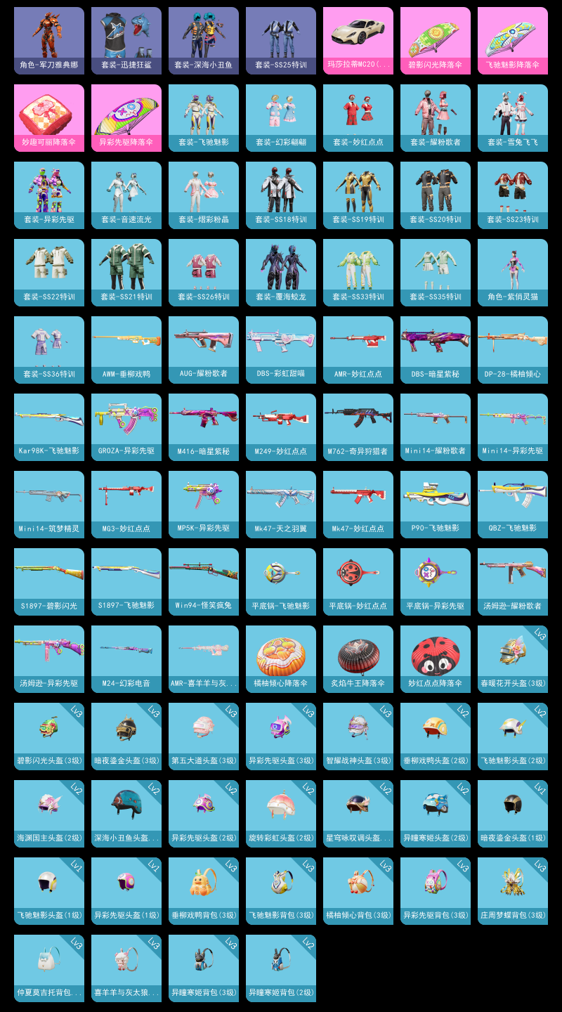 【和平精英】【lyhp22006】0粉装,0特效呛,1载具,历史最高段位:超级王牌2星 王牌印记2次 热力值:25115,86套装,92呛械,76装备,47战备;套装:套装-特训学院,套装-猎鹰,套装-青年教官,套装-橘黑制服,套装-红色运动,套装-黄色运动,套装-蓝色运动,套装-黄色伏地魔,套装-白色伏地魔,套装-黑色伏地魔,套装-竞技名士,套装-深蓝色名流,套装-酒红色名流,套装-湖蓝色名流,套装-黄色名流,套装-猛禽,套装-长空猛禽,套装-海岛探路者,套装-旭日情侣,套装-冷焰舞者,套装-灼焰舞者,套装-战地督导,套装-完美偶像,套装-人气偶像,套装-幻影武者,套装-街头潮人,套装-蓝彩潮人,套装-魅力单车,套装-绮丽涂鸦,套装-竞技达人朋克,套装-都市漫游者,套装-野性战心,套装-破晓战魂,套装-都市魅力,套装-幻世战舞者,套装-迅捷狂鲨,套装-深海小丑鱼,套装-青涩时光,套装-缤纷果语,套装-元素星魂,套装-极速红龙,套装-麻辣教官,套装-破蛋小黄鸡,套装-夏日音浪,套装-探宝勇士,套装-牛气满满,套装-白糯汤圆,套装-牛气冲天,套装-ss18特训,套装-耀粉歌者,套装-飞行日记,套装-雪兔飞飞,角色-军刀雅典娜,套装-异彩先驱,套装-霓虹极客,套装-空投萌叽,套装-ss19特训,套装-飞驰魅影,套装-音速流光,套装-炫蓝之夏,套装-ss20特训,套装-覆海蛟龙,套装-ss21特训,套装-玉兔迎春,套装-ss22特训,套装-熠彩粉晶,套装-光之冒险,套装-ss23特训,套装-妙红点点,套装-幻彩翩翩,套装-王牌教练,套装-柠萌假日,套装-龟仙人,套装-ss25特训,套装-龙的传人,套装-ss26特训,套装-恋语绒绒,角色-紫俏灵猫,套装-异域银装,套装-ss33特训,套装-ss32特训,套装-顶瓜瓜,套装-大橘大利,套装-ss35特训,套装-ss36特训,套装-萌鸡速递;呛皮:mk47-天之羽翼,mk47-乌木金纹,mk47-妙红点点,groza-彩虹符号,groza-异彩先驱,aug-耀粉歌者,aug-天降萌叽,m16a4-蓝色火焰,m16a4-红色方程式,m16a4-幻世战舞者,akm-灼热熔岩,akm-破晓战魂,akm-霓虹街区,akm-彩虹符号,m762-奇异狩猎者,m762-天降萌叽,m416-蓝色火焰,m416-红色方程式,m416-暗星紫秘,m416-糯团青竹,ac-val-天降萌叽,q-飞驰魅影,famas-霓彩脉冲,蜜獾-天降萌叽,蜜獾-鸡智如我,蜜獾-乌木金纹,ace32-冰晶雪宝,g36c-乌木金纹,scar-l-红色方程式,scar-l-玉兔迎春,awm-垂柳戏鸭,amr-妙红点点,amr-喜羊羊与灰太狼,amr-乌木金纹,svd-霓彩脉冲,kar98k-红色方程式,kar98k-炫彩节奏,kar98k-飞驰魅影,m200-乌木金纹,win94-怪笑疯兔,win94-乌木金纹,m24-幻彩电音,m24-乌木金纹,莫辛纳甘-乌木金纹,slr-彩虹符号,slr-霓彩脉冲,mk14-乌木金纹,mini14-炫彩节奏,mini14-耀粉歌者,mini14-异彩先驱,mini14-筑梦精灵,m417-玩趣呆呆,野牛-乌木金纹,ump45-蓝色火焰,ump45-生命誓言,ump45-海盐豹豹,汤姆逊-耀粉歌者,汤姆逊-炫彩节奏,汤姆逊-异彩先驱,汤姆逊-天降萌叽,p90-飞驰魅影,p90-紫矿核心,p90-乌木金纹,vect-生命誓言,mp5k-异彩先驱,uzi-红色方程式,s686-红色方程式,dbs-暗星紫秘,dbs-彩虹甜喵,dbs-彩虹符号,s12k-破晓战魂,s12k-幻世战舞者,s1897-炫彩节奏,s1897-碧影闪光,s1897-飞驰魅影,s1897-糯团青竹,m249-破晓战魂,m249-妙红点点,mg3-幻世战舞者,mg3-乌木金纹,mg3-妙红点点,dp-28-橘柚倾心,mg-36-薄荷星砂,平底锅-空投萌叽,平底锅-异彩先驱,平底锅-飞驰魅影,平底锅-光之冒险,平底锅-妙红点点,平底锅-变形金刚,撬棍-幻世战舞者,十子怒-异域银装,破片手留单-拽到爆炸;载具:玛莎拉蒂mc20星石白;降落伞:粉色滑翔尾迹; 详情看图1特效呛 玛莎拉蒂 深海小丑鱼