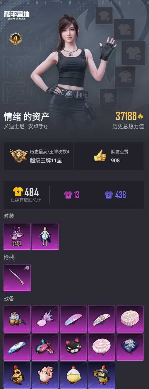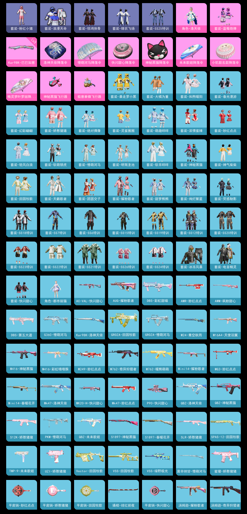 【和平精英】【lyhp22018】2粉装,1特效呛,0载具,历史最高段位:超级王牌11星 王牌印记4次 热力值:37198,114套装,132呛械,138装备,81战备;套装:角色-洛天依,套装-蓝莓炮弹,套装-特训学院,套装-白色伏地魔,套装-骑行爱好者,套装-竞技名士,套装-湖蓝色名流,套装-猛禽,套装-长空猛禽,套装-竞技勇士朋克,套装-冷焰舞者,套装-浪漫天命,套装-战地菁英,套装-甜蜜告白,套装-龙腾端午,套装-冰冻风暴,套装-完美偶像,套装-幻影武者,套装-特战英豪,套装-街头潮人,套装-蓝彩潮人,套装-魅力单车,套装-绮丽涂鸦,套装-坚韧舞者,套装-竞技达人朋克,套装-野性战心,套装-破晓战魂,套装-都市魅力,套装-荣耀,套装-热血青春,套装-ss2特训,套装-雪山精英,套装-幻世战舞者,套装-夏日倾情,套装-甜蜜熊情侣,套装-青涩时光,套装-缤纷果语,套装-灿烂千阳,套装-元素星魂,套装-极速红龙,套装-麻辣教官,套装-粉红小猪,套装-破蛋小黄鸡,套装-疯狂小兔子,套装-ss5特训,套装-北国孤狼,套装-ss6特训,套装-ss7特训,套装-鹤鸣,套装-霓虹街区,套装-暴走罗小黑,套装-神秘黑猫,套装-大橘为重,套装-软萌银虎,套装-白熊同盟,套装-萌黄之夏,套装-探宝勇士,套装-牛气满满,套装-战术大师,套装-ss12特训,套装-牛气冲天,套装-ss18特训,套装-耀粉歌者,套装-飞行日记,套装-天籁歌者,套装-电音精灵,套装-ss15特训,套装-团圆交子,套装-ss19特训,套装-浓情蜜辣,套装-ss20特训,套装-软羊咩咩,套装-ss21特训,套装-萌趣咩咩,套装-娇憨猪猪,套装-玉兔迎春,套装-ss22特训,套装-和煦暖阳,套装-田园牧歌,套装-轻风白浪,套装-绚烂繁星,套装-光之冒险,套装-绯格组合,套装-ss23特训,套装-甜梦熊熊,套装-神气柴柴,套装-懵萌河马,套装-灵蜜圈圈,套装-妙红点点,套装-幻彩翩翩,套装-王牌教练,套装-柠萌假日,套装-青玉碎影,套装-ss24特训,套装-荧惑魅影,套装-龟仙人,套装-涂山之恋,套装-ss25特训,套装-惊鸿侠骨,套装-锦衣飞扬,套装-绝对偶像,套装-龙的传人,套装-冰河战士,套装-ss26特训,套装-快闪甜心,套装-春光漫游,套装-空岛之星,套装-明鸳圣池,套装-海盐绵绵冰,套装-蝶变,角色-都市丽猫,套装-ss31特训,套装-巳巳如意,套装-炫彩糖果;呛皮:groza-生命誓言,groza-田园牧歌,groza-懵萌河马,m762-奇异狩猎者,m762-暖熊萌萌,m762-天降萌叽,m762-乌木金纹,q-神秘黑猫,q-彩虹符号,q-洛神天依,q-未来歌姬,m16a4-蓝色火焰,m16a4-红色方程式,m16a4-幻世战舞者,m16a4-天使羽翼,aug-耀粉歌者,aug-天降萌叽,aug-乌木金纹,scar-l-红色方程式,scar-l-玉兔迎春,scar-l-海盐豹豹,mk47-洛神天依,mk47-乌木金纹,mk47-妙红点点,akm-破晓战魂,akm-彩虹符号,akm-龙的传人,g36c-懵萌河马,蜜獾-娇憨猪猪,蜜獾-天降萌叽,蜜獾-精灵梦叶罗丽,m416-蓝色火焰,m416-红色方程式,m416-神秘黑猫,m416-糯团青竹,m416-彩虹嘻嘻猴,m416-乌木金纹,ac-val-乌木金纹,ac-val-天降萌叽,ac-val-快闪甜心,m24-青空秋雨,m24-乌木金纹,3级kar98k-巳巳如意,kar98k-红色方程式,kar98k-洛神天依,amr-妙红点点,amr-乌木金纹,m200-惊鸿侠骨,m200-乌木金纹,莫辛纳甘-乌木金纹,莫辛纳甘-懵萌河马,awm-飒粉甜心,mk20-h-快闪甜心,mk20-h-乌木金纹,slr-娇憨猪猪,slr-彩虹符号,slr-金丰海韵,vss-田园牧歌,vss-绿野极光,vss-彩虹符号,mini14-生命誓言,mini14-春暖花开,mini14-耀粉歌者,mini14-涂山之恋,mini14-香桃花海,m417-惊鸿侠骨,sks-炫彩节奏,sks-乌木金纹,mk14-乌木金纹,vect-生命誓言,vect-田园牧歌,vect-乌木金纹,汤姆逊-奇异狩猎者,汤姆逊-耀粉歌者,汤姆逊-暗夜鎏金,汤姆逊-天降萌叽,汤姆逊-乌木金纹,p90-快闪甜心,p90-巳巳如意,p90-乌木金纹,uzi-红色方程式,uzi-娇憨猪猪,uzi-天降萌叽,uzi-啾咪啾咪,uzi-炫彩糖果,ump45-夜灯,ump45-蓝色火焰,ump45-涂山之恋,野牛-乌木金纹,spas-12-田园牧歌,spas-12-乌木金纹,s12k-破晓战魂,s12k-娇憨猪猪,s12k-幻世战舞者,s12k-玩趣呆呆,s686-红色方程式,s686-生命誓言,s686-彩虹符号,s686-巳巳如意,s1897-春暖花开,s1897-神秘黑猫,s1897-炫彩节奏,s1897-乌木金纹,dbs-彩虹甜喵,dbs-第五大道,dbs-彩虹符号,m249-破晓战魂,m249-糯团青竹,m249-妙红点点,mg3-幻世战舞者,mg3-乌木金纹,mg3-妙红点点,mg3-惊鸿侠骨,pkm-懵萌河马,tmp-9-未来歌姬,沙墨之鹦-快闪甜心,平底锅-飞行日记,平底锅-娇憨猪猪,平底锅-田园牧歌,平底锅-光之冒险,平底锅-妙红点点,平底锅-懵萌河马,平底锅-惊鸿侠骨,平底锅-快闪甜心,平底锅-空岛之星,撬棍-绯红前夜,撬棍-幻世战舞者,破片手留单-呆爆全场,破片手留单-拽到爆炸,破片手留单-巳巳如意,爆炸猎弓-惊鸿侠骨,铝热弹-炫彩糖果;降落伞:神秘黑猫飞行器,炫彩糖果飞行器,极意拳锋飞行器,冰柠泡泡飞行器; 详情看图2粉1特效呛 洛天依