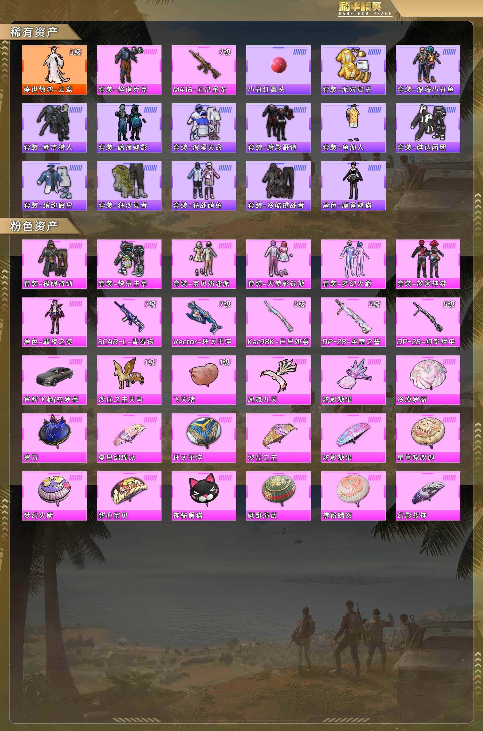 素材号-盛世惊鸿云鸾3级/怪诞乔克/都市/金鞋/火箭少女/小丑红鼻头/深海小丑鱼/暗夜魅影/浪漫天命/暗影哥特/胖达团团/缤纷假日/狂沙舞者/狂战萌兔/冷酷挑战者/摩登魅猫/极限特训/快乐主宰/宝贝奶油派/天使彩虹糖/放客神游/罪夜之冕/宾利飞驰布罗德盖棕双色 (1神装-8粉装-6粉呛)没战神框 56074粉色飞行器-82089热力值-23王牌印记-195套装-250呛皮 【红色神