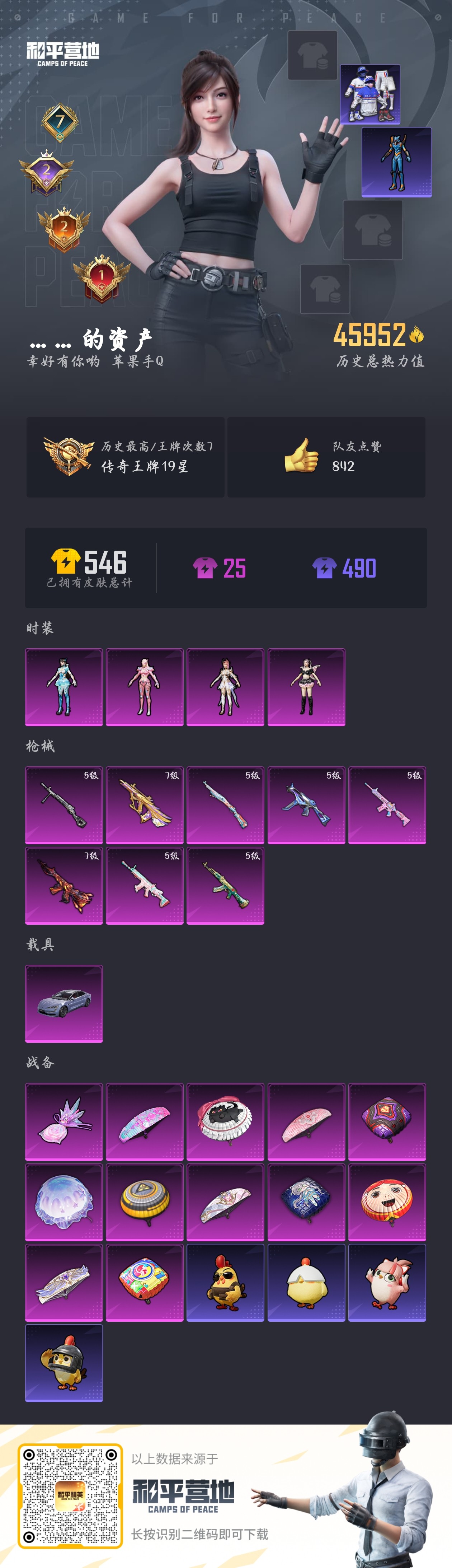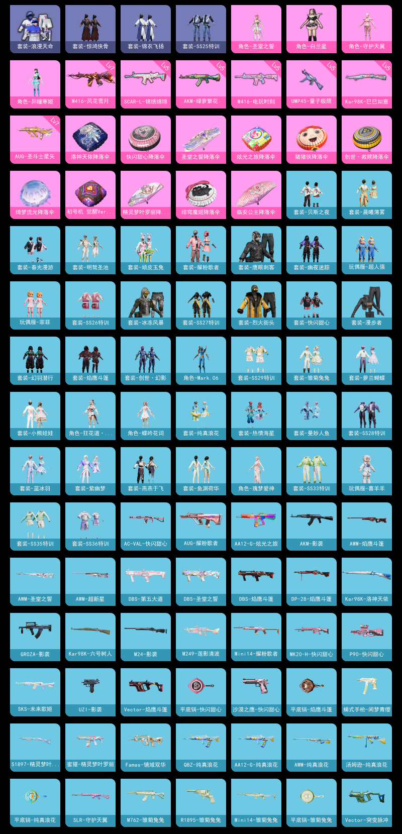 【和平精英】【txhp7055】4粉装,8特效呛,1载具,历史最高段位:传奇王牌19星 王牌印记7次 热力值:45952,105套装,142呛械,191装备,89战备;套装:角色-白兰星,角色-圣堂之誓,角色-守护天翼,角色-异瞳寒姬,套装-特训学院,套装-青年教官,套装-黄色运动,套装-蓝色运动,套装-白色伏地魔,套装-黑色伏地魔,套装-竞技名士,套装-深蓝色名流,套装-黄色名流,套装-猛禽,套装-长空猛禽,套装-漫步者,套装-海岛探路者,套装-旭日情侣,套装-六六大吉,套装-浪漫天命,套装-特战装甲,套装-战地督导,套装-燃烧卡路里,套装-鹰眼刺客,套装-冰冻风暴,套装-蓝彩潮人,套装-千禧之恋,套装-魅力单车,套装-竞技达人朋克,套装-狂沙舞者,套装-破晓战魂,套装-烈火街头,套装-青涩时光,套装-缤纷果语,套装-龙魂突击队,套装-极速红龙,套装-破蛋小黄鸡,套装-顽皮玉兔,套装-战术大师,套装-耀粉歌者,套装-曼妙人鱼,套装-热情海星,套装-纯真浪花,套装-柠萌假日,套装-龟仙人,套装-ss25特训,套装-惊鸿侠骨,套装-锦衣飞扬,套装-晨曦薄雾,套装-香桃花海,套装-龙的传人,套装-冰河战士,套装-ss26特训,套装-快闪甜心,套装-春光漫游,套装-漫游都市,套装-空岛之星,套装-明鸳圣池,套装-贝斯之夜,玩偶服-菲菲,玩偶服-超人强,套装-焰鹰斗篷,套装-幽夜迷踪,套装-幻羽潜行,套装-ss27特训,套装-恋语绒绒,套装-老实芭蕉,套装-ss28特训,角色-蝶吟花词,玩偶服-卖崽青蛙,角色-mark.06,套装-街头风暴,套装-海盐绵绵冰,套装-蝶变,套装-创世·幻影,套装-小熊娃娃,套装-ss29特训,套装-雏菊兔兔,角色-狂花道·娜可露露,套装-萝兰蝴蝶,套装-异域银装,套装-星途旅人,角色-怀庆长公主,套装-ss30特训,套装-绒宝小鹅,套装-ss31特训,套装-鱼渊荷华,套装-燕燕于飞,套装-智谋强哥,角色-瑰梦爱神,套装-紫幽梦,套装-ss33特训,套装-巳巳如意,套装-ss32特训,套装-蓝冰羽,套装-炫彩糖果,玩偶服-喜羊羊,套装-元气之梦,套装-ss34特训,套装-游乐,套装-薄荷星砂,套装-ss35特训,套装-粉黛兰香,套装-ss36特训,套装-萌鸡速递;呛皮:5级akm-绿萝繁花,akm-影袭,akm-涂鸦街区,akm-龙的传人,akm-霓彩脉冲,akm-绿洲时空,groza-影袭,groza-海盐豹豹,groza-紫矿核心,7级aug-圣斗士星矢,aug-甜蜜菠萝,aug-耀粉歌者,aug-天降萌叽,aug-异域银装,aug-冰晶雪宝,famas-镜域双华,famas-绿洲时空,famas-霓彩脉冲,famas-乌木金纹,5级scar-l-锦绣绵绵,scar-l-彩虹符号,scar-l-星途旅人,scar-l-海盐豹豹,m762-能量风暴,m762-雏菊兔兔,m16a4-冰河战士,7级m416-风花雪月,5级m416-电玩时刻,m416-蓝色火焰,m416-糯团青竹,ac-val-乌木金纹,ac-val-快闪甜心,q-纯真浪花,蜜獾-天降萌叽,蜜獾-精灵梦叶罗丽,蜜獾-乌木金纹,m24-影袭,awm-超新星,awm-天降萌叽,awm-圣堂之誓,awm-焰鹰斗篷,awm-纯真浪花,awm-绿洲时空,m200-惊鸿侠骨,m200-乌木金纹,5级kar98k-巳巳如意,kar98k-红色方程式,kar98k-彩虹符号,kar98k-洛神天依,kar98k-六号树人,kar98k-顶峰精英,win94-乌木金纹,amr-乌木金纹,m417-惊鸿侠骨,mk14-冰河战士,mk14-紫幽梦,mk14-薄荷星砂,mk14-紫晶流影,sks-未来歌姬,slr-守护天翼,slr-霓彩脉冲,vss-彩虹符号,vss-香桃花海,mini14-耀粉歌者,mini14-香桃花海,mini14-雏菊兔兔,mini14-绯穹魔姬,mk20-h-快闪甜心,mk20-h-星途旅人,mk20-h-乌木金纹,mp5k-乌木金纹,5级ump45-量子极限,ump45-生命誓言,汤姆逊-天降萌叽,汤姆逊-纯真浪花,汤姆逊-智耀战神,uzi-影袭,uzi-天降萌叽,uzi-冰河战士,uzi-啾咪啾咪,uzi-炫彩糖果,p90-快闪甜心,p90-玩趣呆呆,p90-巳巳如意,p90-乌木金纹,野牛-雏菊兔兔,野牛-燕燕于飞,vect-彩虹符号,vect-焰鹰斗篷,vect-突变脉冲,vect-燕燕于飞,aks-74u-乌木金纹,spas-12-燕燕于飞,spas-12-狂鲨锋刃,spas-12-乌木金纹,s1897-精灵梦叶罗丽,s1897-紫幽梦,dbs-第五大道,dbs-彩虹符号,dbs-圣堂之誓,dbs-焰鹰斗篷,dbs-乌木金纹,s686-生命誓言,s686-巳巳如意,aa12-g-炫光之旅,aa12-g-纯真浪花,s12k-玩趣呆呆,s12k-霓彩脉冲,m249-彩虹符号,m249-莲影清波,mg3-幻世战舞者,mg3-惊鸿侠骨,mg3-绿洲跃动,pkm-啾咪啾咪,pkm-紫幽梦,5级dp-28-豹影疾电,dp-28-焰鹰斗篷,蝎式手呛-闲梦青缨,蝎式手呛-燕燕于飞,沙墨之鹦-快闪甜心,p92-紫幽梦,r1895-雏菊兔兔,短管霰弹-星穹咏叹调,平底锅-空投萌叽,平底锅-惊鸿侠骨,平底锅-快闪甜心,平底锅-空岛之星,平底锅-焰鹰斗篷,平底锅-纯真浪花,平底锅-雏菊兔兔,平底锅-许七安,平底锅-紫幽梦,撬棍-朗基努斯之呛,破片手留单-呆爆全场,破片手留单-星途旅人,破片手留单-拽到爆炸,破片手留单-巳巳如意,铝热弹-炫彩糖果,爆炸猎弓-惊鸿侠骨,燃烧瓶-福马献瑞,十子怒-燕燕于飞,十子怒-异域银装;载具:仰望u7阿盖尔紫;降落伞:炫彩糖果飞行器,粉色滑翔尾迹,异域银装飞行器,顶峰精英尾迹,鸡智如我飞行器; 详情看图7印记-4.5w热力-4粉-8特-1车 7级圣斗士星矢aug-7就风花雪月m4
