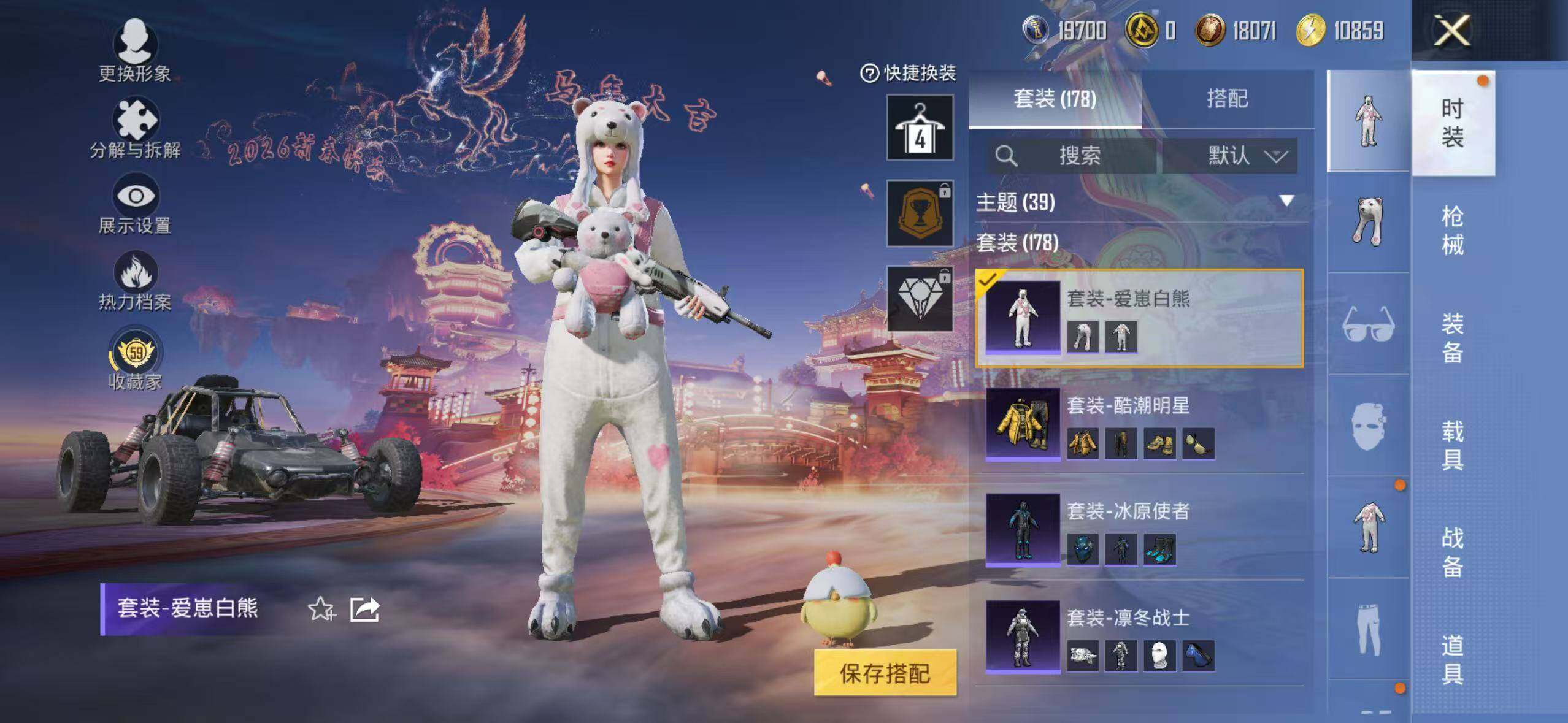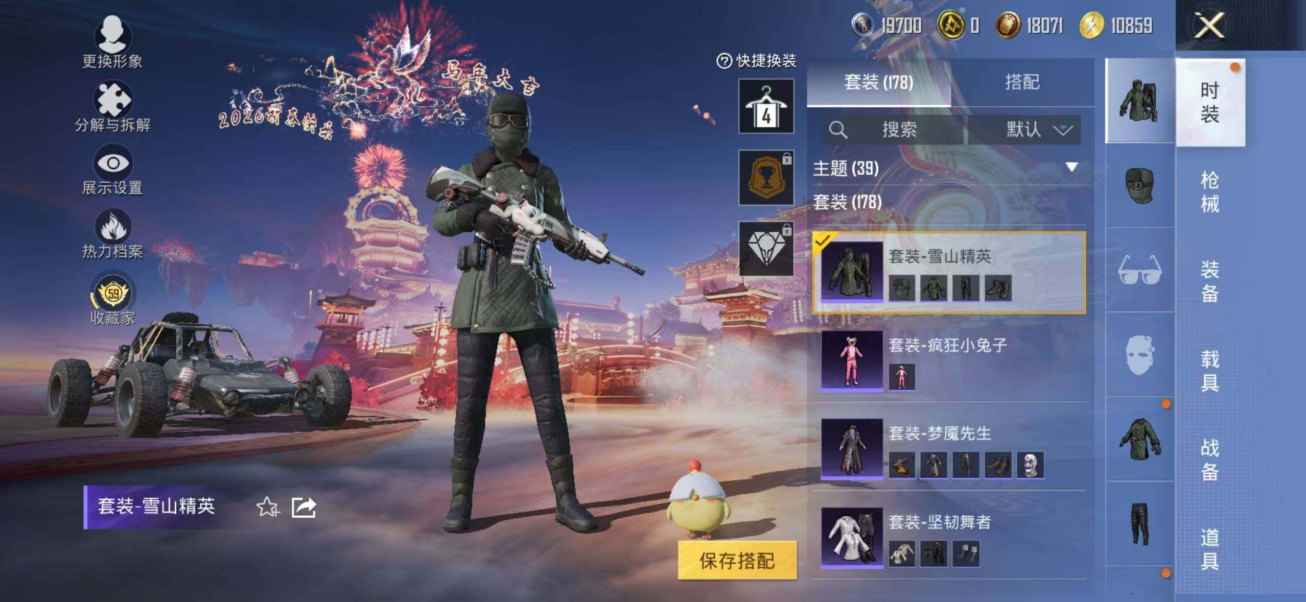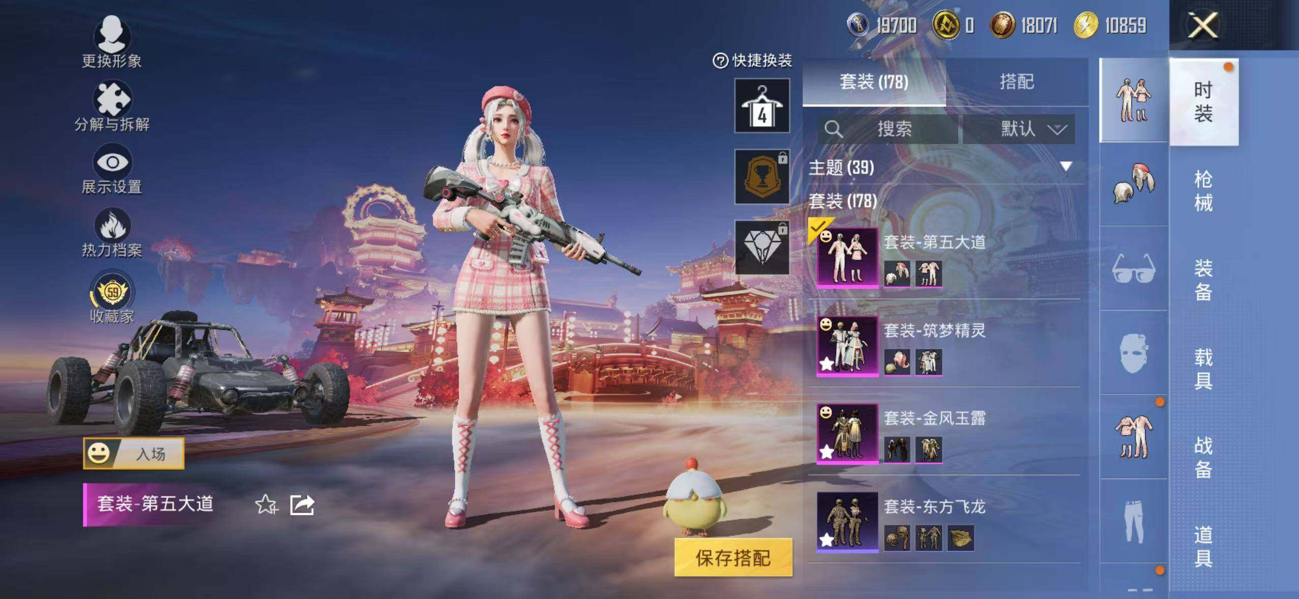6519【雪山精英4粉装3特效呛1粉色飞行器63775热力值7王牌印记178套装200呛皮】 【热门品类】:套装-潮萌小黄鸭 【粉色套装】:粉装-金风玉露,粉装-筑梦精灵,粉装-第五大道,粉装-星穹咏叹调 【粉色呛皮等级】:m762-青锋波束五级 【粉色呛皮】:m762-青锋波束,kar98k-巳巳如意,dp-28-豹影疾电 【粉色飞行器】:春暖花开飞行器 【粉色降落伞】:百万伏特降落