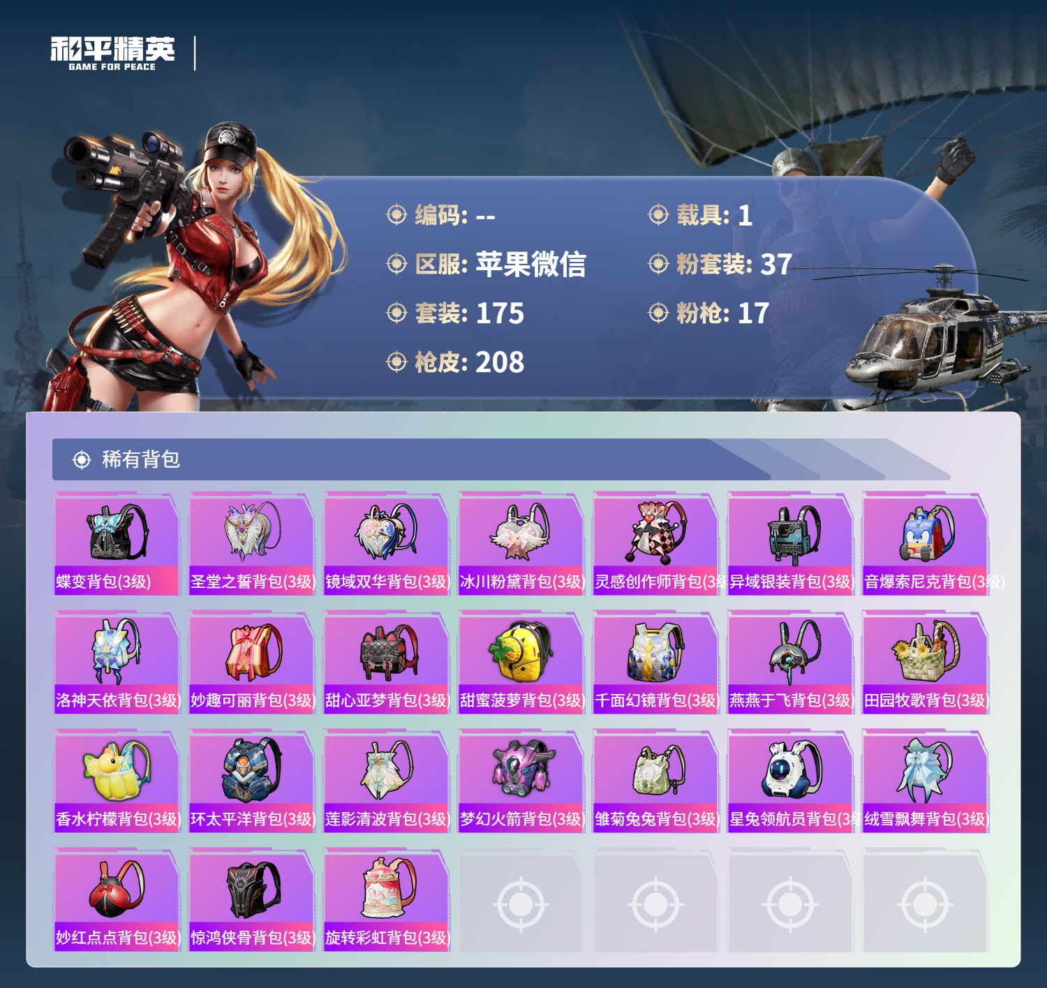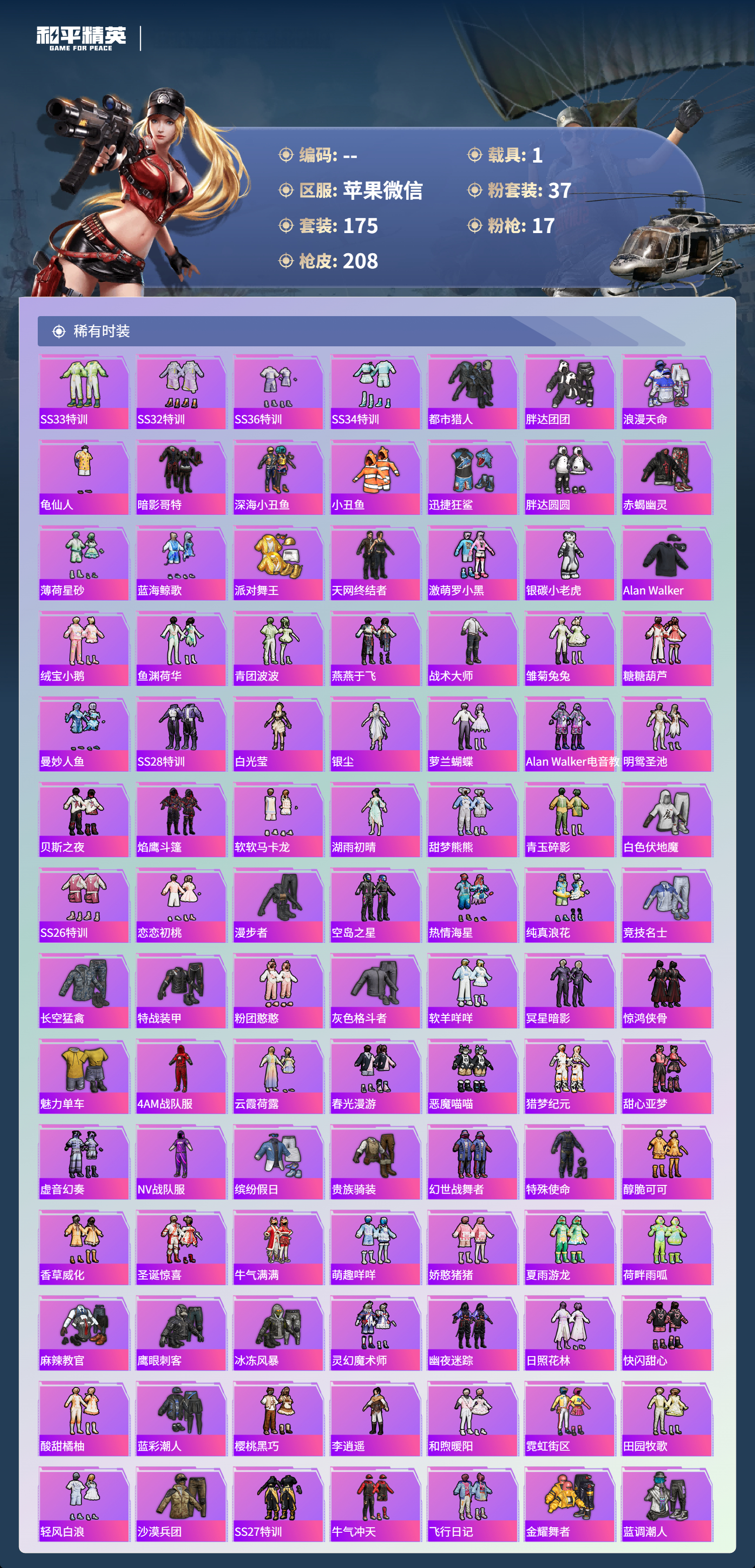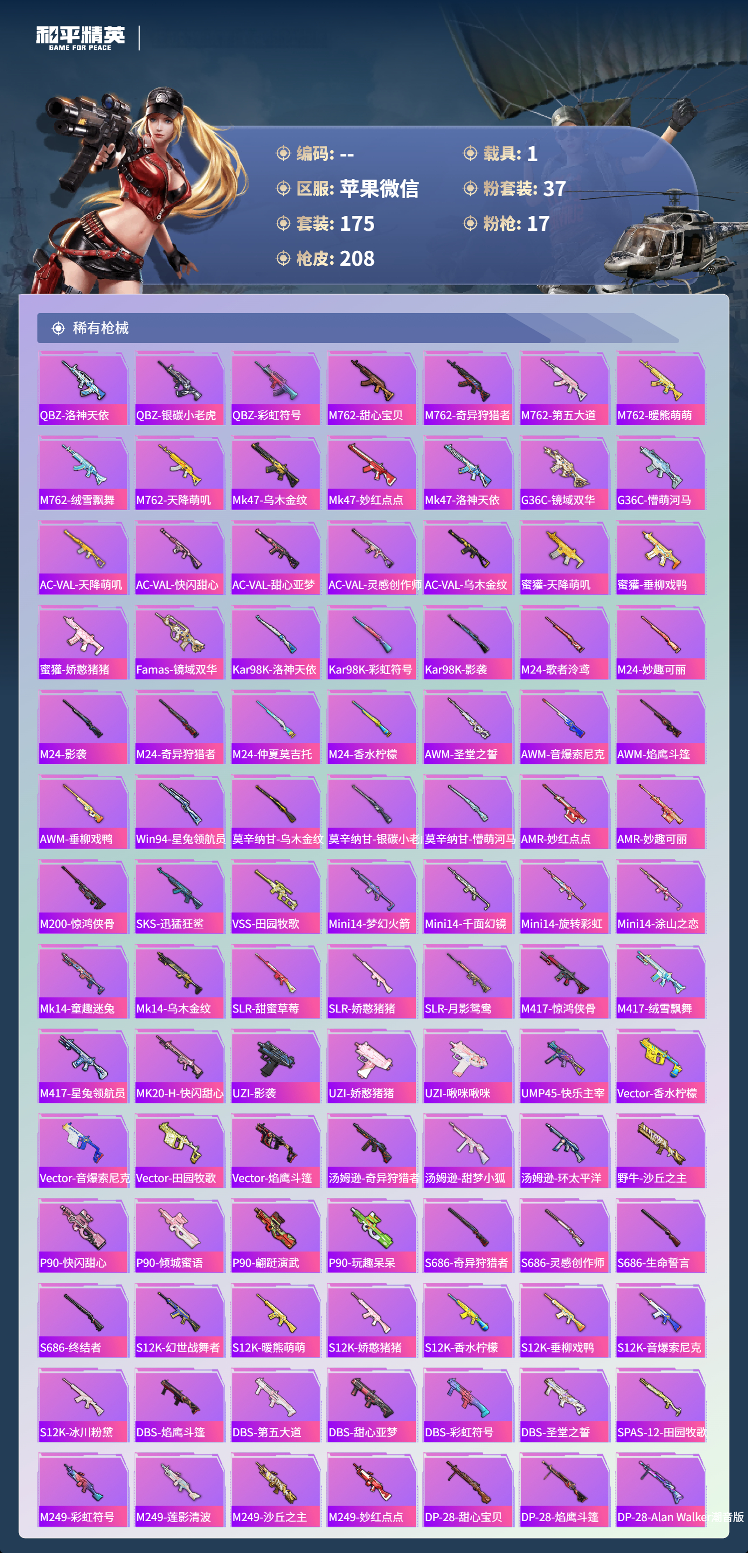 2446320苹果微信-15王牌印记-有战神框-2红装-37粉装-17特效呛-1载具-94147热力值-175套装-208呛皮-7卓越印记-6传奇印记 【2红装】镜域双华-欧若拉/1级沙丘之主-图卡盟/4级 【37粉装】角色-呆萌星弥套装-雪国幻梦套装-彩虹鹿灵女娲后裔-赵灵儿套装-暖熊萌萌套装-怪诞乔克角色-小可学妹套装-香水柠檬套装-冰川红玫套装-冰霜白皇套装-