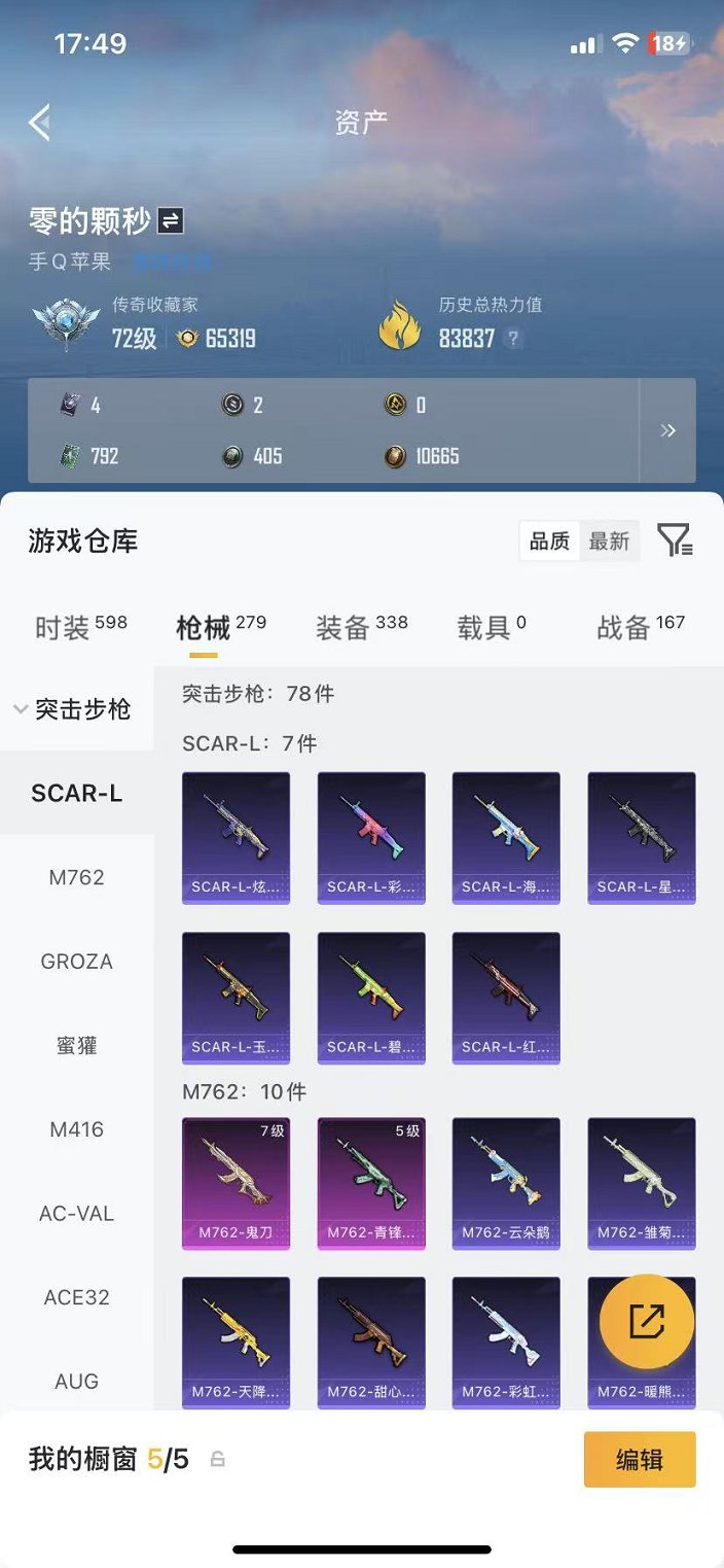 0载具-164套装-279呛皮-【蓝粉螳螂申公豹 6粉装12特效呛可秒换绑】 苹果q区-83837热力值-11印记-164套装-279呛皮 【2稀有】 8号机 mark.06【6粉装】 宝贝奶油派 天使彩虹糖 垂柳戏鸭 暗星紫秘 角色-冷漠罗丽 角色-狂花道·不知火舞【11特效呛】 m16a4-垂柳戏鸭7级 akm-绿萝繁花5级 m416-电玩时刻5级 m762-青锋波束5级 mk14-甜梦熊