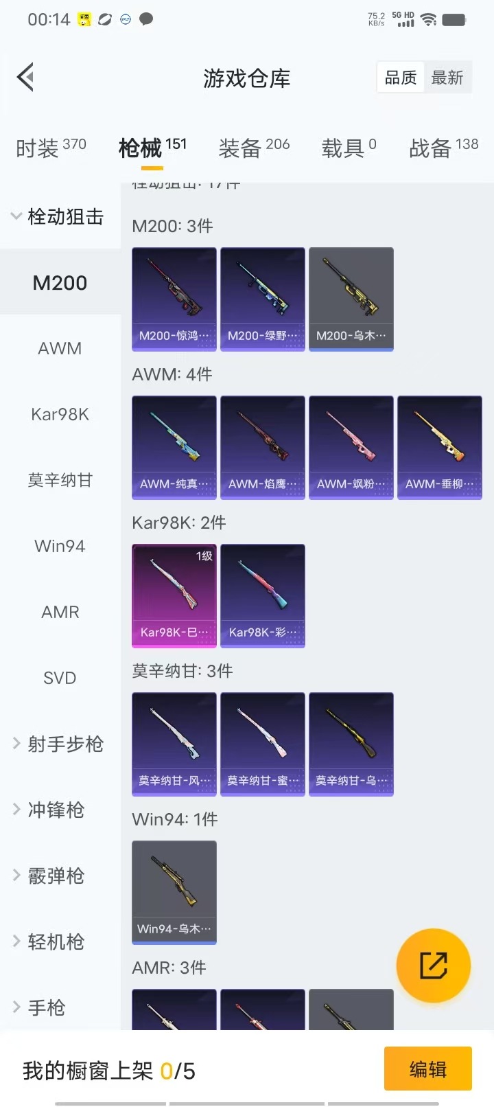 0载具-107套装-140呛皮-[]6粉装 4特效呛 5印记 可二次 可修改实名 【热门装扮】异瞳寒姬缤纷油彩猪妹猪脸妹暗夜鎏金第五大道闲梦青缨金丰海韵 【稀有呛皮】kar98k-巳巳如意dp-28-豹影疾电m417第五大道scar-l-锦绣绵绵 【六级特效呛】六级m417-第五大道 【五级特