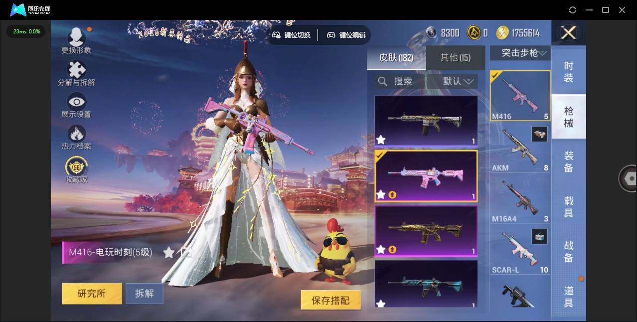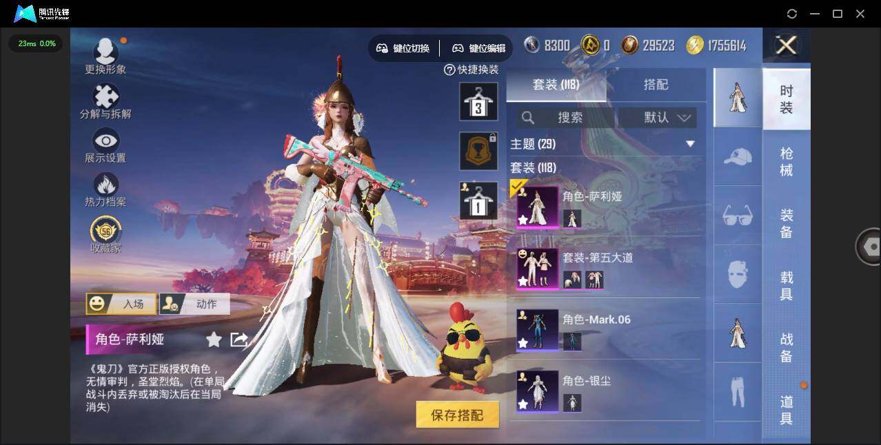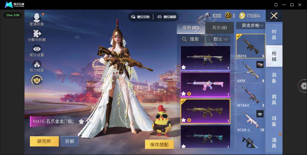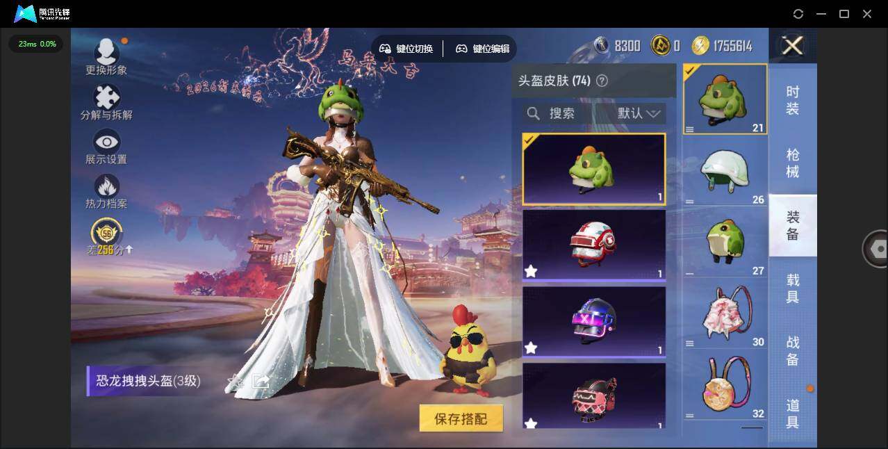 0载具-439套装-182呛皮-时装数: 439 呛械数: 182 战备数: 118 热门装扮: 奇异狩猎者迅捷狂鲨鹰眼刺客第五大道萨利娅 稀有呛皮: scar-l-锦绣绵绵五级,m416-五爪金龙七级,m416-电玩时刻五级,aug-暖羊咩咩五级,kar98k-巳巳如意五级,dp-28-豹影疾电五级