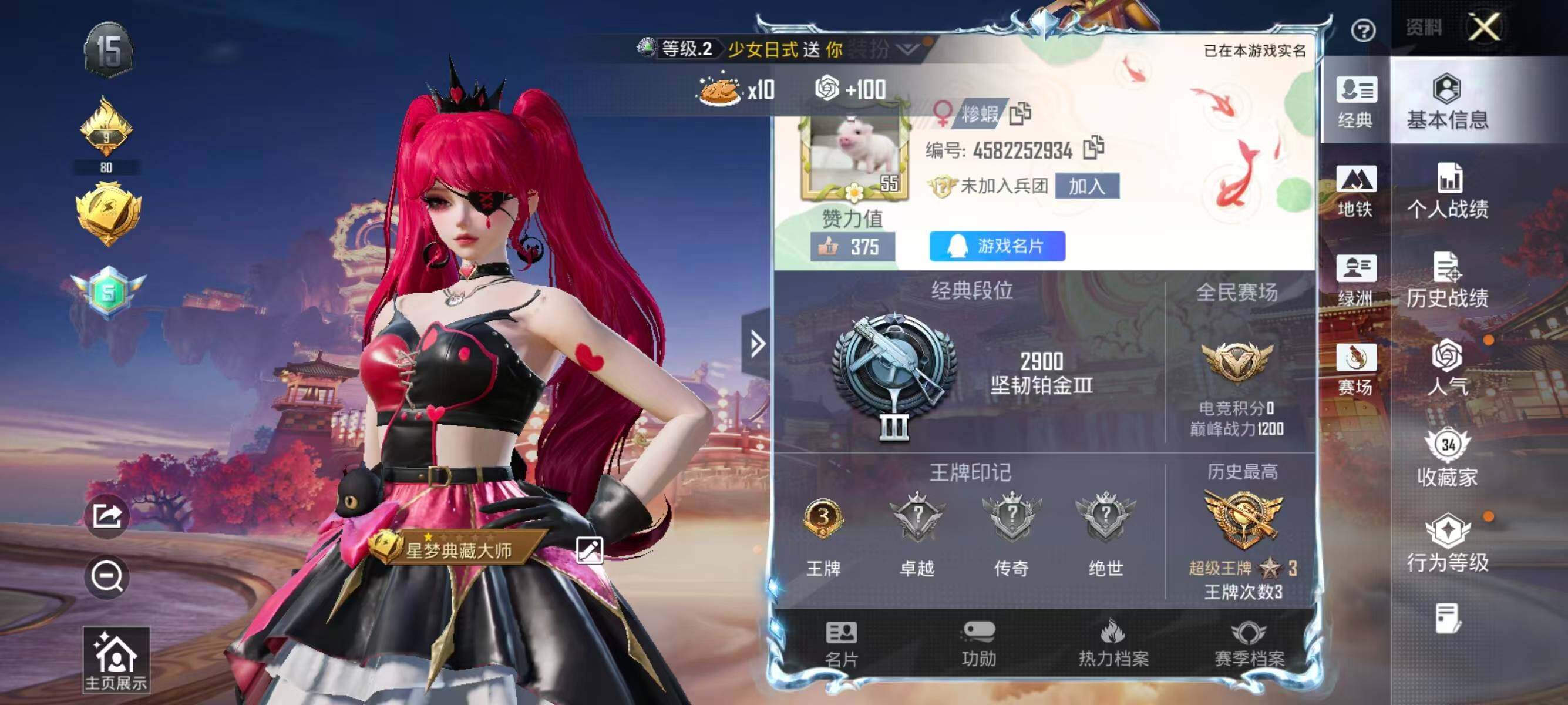 【1541】【过年不打烊·2粉装3特效呛·女号·公主号】安卓 手q-2粉装-3特效呛-0载具-2粉色飞行器-24638热力值-3王牌印记-60套装-77呛皮 【粉色套装】:粉装-天禅智恒,角色-绯穹魔姬 【粉色呛皮等级】:kar98k-巳巳如意四级,sks-碧影闪光六级,dp-28-豹影疾电三级 【粉色呛皮】:kar98k-巳巳如意,sks-碧影闪光,dp-28-豹影疾电 【粉色飞行器】:庄周梦蝶飞行器 【粉色降落伞】:童趣迷兔降落伞,星之彼岸降落伞,天之羽翼降落伞,青春物语降落伞,筑梦精灵降落伞,垂柳戏鸭降落伞,炫彩糖果降落伞 【稀有套装】:套装-巳巳如意,套装-雪国风尚,套装-炫彩糖果,角色-海琴烟 【稀有呛皮】:akm-星之彼岸,akm-破晓战魂,m16a4-幻世战舞者,m16a4-甜心亚梦,scar-l-炫彩节奏,scar-l-玉兔迎春,scar-l-红色方程式,scar-l-青丘仙客,m416-月影鸳鸯,m416-红色方程式,m416-蓝色火焰,groza-异彩先驱,groza-紫翼圣骑,aug-海螺星光,aug-耀粉歌者,q-飞驰魅影,m762-彩虹符号,ac-val-天降萌叽,ac-val-甜心亚梦,蜜獾-天降萌叽,蜜獾-娇憨猪猪,uzi-娇憨猪猪,ump45-生命誓言,ump45-蓝色火焰,汤姆逊-天降萌叽,汤姆逊-奇异狩猎者,汤姆逊-异彩先驱,mp5k-异彩先驱,p90-飞驰魅影,kar98k-炫彩节奏,kar98k-王子的夏天,kar98k-飞驰魅影,kar98k-星穹咏叹调,m24-炫彩节奏,mini14-异彩先驱,slr-娇憨猪猪,s686-奇异狩猎者,s686-彩虹符号,s686-生命誓言,s1897-炫彩节奏,s1897-飞驰魅影,s12k-娇憨猪猪,s12k-幻世战舞者,dbs-甜心亚梦,m249-星之彼岸,dp-28-彩虹符号,dp-28-甜心亚梦,dp-28-紫翼圣骑,dp-28-闪光银龙,mg3-幻世战舞者 【其他套装】:套装-ss19特训,套装-ss20特训,套装-ss21特训,套装-ss22特训,套装-ss23特训,套装-光之冒险,套装-冷焰舞者,套装-夏日音浪,套装-幻世战舞者,套装-幻影武者,套装-探宝勇士,套装-春日漫步,套装-湖蓝色名流,套装-炫蓝之夏,套装-牛气冲天,套装-牛气满满,套装-特战装甲,套装-特训学院,套装-玉兔迎春,套装-王牌教练,套装-白色伏地魔,套装-破蛋小黄鸡,套装-竞技名士,套装-红色运动,套装-缤纷果语,套装-耀粉歌者,套装-蓝彩潮人,套装-蓝色运动,套装-长空猛禽,套装-飞行日记,套装-魅力单车,套装-麻辣教官,套装-黄色名流,套装-智慧之神,套装-霓虹极客,套装-极速竞梦,套装-飞驰魅影,套装-音速流光,套装-浓情蜜辣,套装-甜心亚梦,套装-虚音幻奏,套装-娇憨猪猪,套装-萌趣咩咩,角色-林月如,套装-香榭午后 【