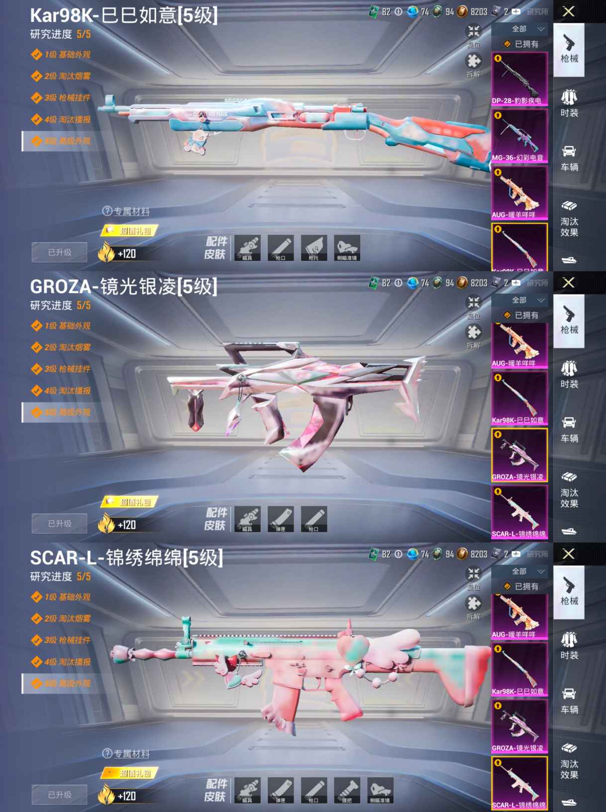 0载具-107套装-148呛皮-【7特 2粉暗影哥特,浪漫天命】安卓手q-2粉装-7特效呛-107套装-148呛皮-15王牌印记-不朽星钻ⅴ-43152热力值【2粉装】极限特训数码大师【7特效呛】scar-l-青春物语[7级]aug-暖羊咩咩[5级]kar98k-巳巳如意[5级]groza-镜光银凌[5级]scar-l-锦绣绵绵[5级]dp-28-豹影疾电[5级]mg-36-幻彩电音[4级]【5
