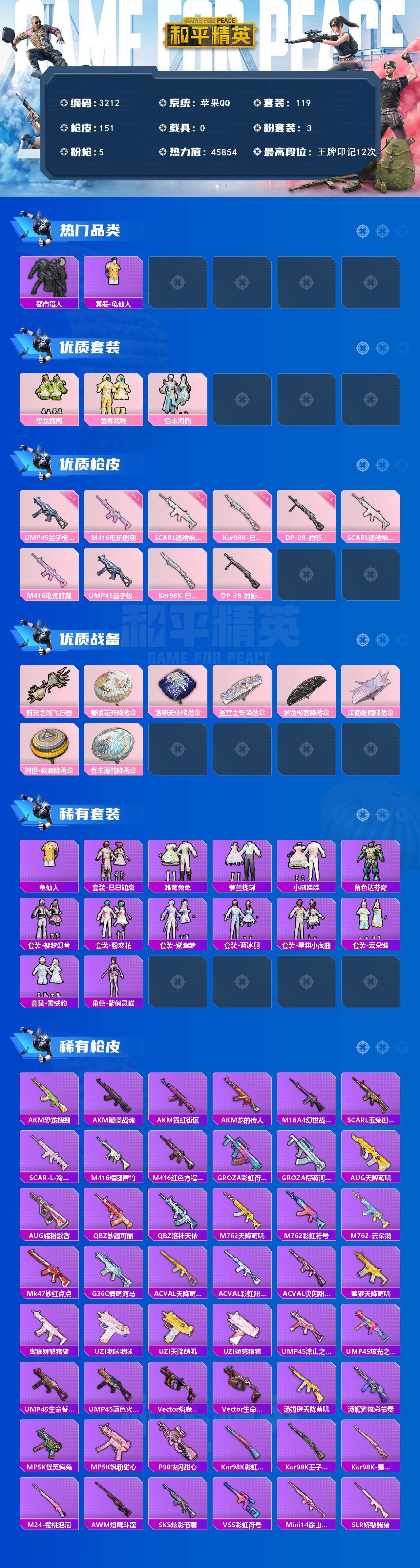 0载具-119套装-151呛皮-119套装/呛械5/装备190/战备127/王牌印记12/热力值45854/五级scar-l-锦绣绵绵/五级m416-电玩时刻/五级ump45-量子极限/五级kar98k-巳巳如意/四级dp-28-豹影疾电/都市猎人/套装-龟仙人/恐龙拽拽/垂柳戏鸭/金丰海韵/scar-l-锦绣绵绵/m416-电玩时刻/ump45-量子极限/kar98k-巳巳如意/dp-28-豹影疾电/时光之吻飞行器/春暖花