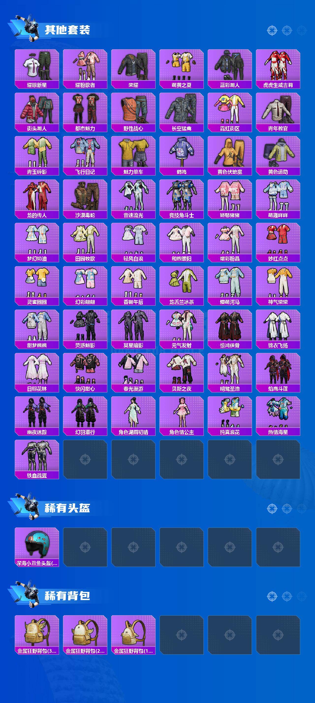 0载具-130套装-168呛皮-130套装/呛械4/装备211/战备138/王牌印记13/热力值48289/五级akm-绿萝繁花/五级scar-l-锦绣绵绵/五级kar98k-巳巳如意/五级dp-28-豹影疾电/套装-暗影哥特/仲夏莫吉托/闲梦青缨/金丰海韵/萨利娅/akm-绿萝繁花/scar-l-锦绣绵绵/kar98k-巳巳如意/dp-28-豹影疾电/镜光幻境飞行翼/恐龙拽拽降落伞/彩虹甜喵降落伞/暗夜鎏金降落伞/音爆索尼
