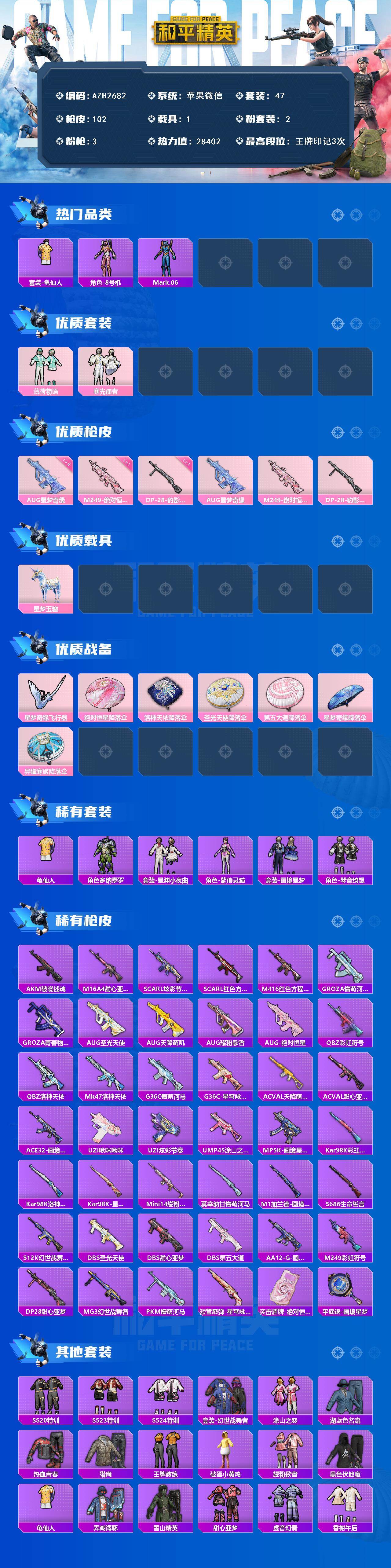 苹果 微信【薄荷物语 寒光使者 香榭午后 满级星梦奇缘aug 1载具】2粉装-3特效呛-1载具-2粉色飞行器-28402热力值-3王牌印记-47套装-102呛皮 【热门品类】:套装-龟仙人,角色-8号机,角色-mark.06 【粉色套装】:粉装-薄荷物语,粉装-寒光使者 【粉色呛皮等级】:aug-星梦奇缘九级,m249-绝对恒星一级,dp-28-豹影疾电一级 【粉色载具】:星梦玉骢