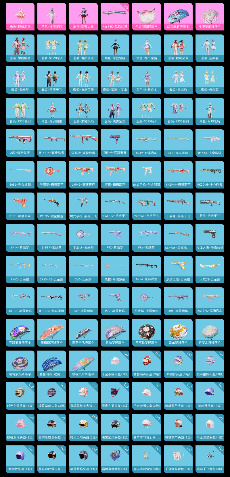 【和平精英】【lyhp22193】3粉装,2特效呛,0载具,历史最高段位:荣耀皇冠ⅱ 王牌印记-1次 热力值:19141,44套装,80呛械,92装备,44战备;套装:角色-樱桃泡泡,角色-冷漠罗丽,角色-罪夜之冕,套装-竞技名士,套装-长空猛禽,套装-缤纷果语,套装-龙魂突击队,套装-鹤鸣,套装-战术大师,套装-耀粉歌者,套装-光之冒险,套装-漫游都市,套装-云魄琉璃,套装-蝶变,套装-ss29特训,角色-摩登魅猫,角色-都市丽猫,套装-ss30特训,套装-青团波波,角色-绛羽幽主,套装-暗夜风云,套装-糖糖葫芦,套装-ss31特训,套装-鱼渊荷华,套装-燕燕于飞,套装-紫幽梦,套装-ss33特训,套装-云朵鹅,套装-巳巳如意,套装-ss32特训,套装-蓝冰羽,套装-顶瓜瓜,套装-雪绒豹,套装-大橘大利,角色-时希公主,套装-星渊小夜曲,套装-元气之梦,套装-ss34特训,套装-朱霞炽焰,套装-凌霄紫焰,套装-薄荷星砂,套装-ss35特训,角色-月烬之祷,套装-ss36特训;呛皮:ace32-冰晶雪宝,m16a4-蓝色火焰,m16a4-冰河战士,m16a4-千金淑猫,m762-天降萌叽,m762-云朵鹅,arx-凌霄紫焰,scar-l-红色方程式,famas-乌木金纹,aug-耀粉歌者,蜜獾-糖糖葫芦,蜜獾-乌木金纹,q-彩虹符号,akm-破晓战魂,m416-蓝色火焰,m416-红色方程式,m200-乌木金纹,5级kar98k-巳巳如意,kar98k-星穹咏叹调,svd-云朵鹅,mk20-h-糖糖葫芦,mk20-h-净心行者,mk20-h-乌木金纹,sks-炫彩节奏,mk14-魔药课室,mk14-紫幽梦,mk14-薄荷星砂,mini14-耀粉歌者,mini14-绯穹魔姬,mini14-鸡智如我,m417-玩趣呆呆,slr-金丰海韵,aks-74u-鸡智如我,aks-74u-乌木金纹,ump45-蓝色火焰,ump45-生命誓言,ump45-糖糖葫芦,野牛-燕燕于飞,js9-凌霄紫焰,p90-巳巳如意,uzi-天降萌叽,uzi-冰河战士,vect-生命誓言,vect-燕燕于飞,汤姆逊-耀粉歌者,s1897-紫幽梦,spas-12-燕燕于飞,spas-12-云朵鹅,spas-12-乌木金纹,aa12-g-橘猫汽水,s686-红色方程式,s686-生命誓言,s686-千金淑猫,s686-巳巳如意,pkm-啾咪啾咪,pkm-紫幽梦,m249-糯团青竹,m249-金丰海韵,mg-36-凌霄紫焰,mg-36-薄荷星砂,5级dp-28-豹影疾电,mg3-幻世战舞者,p18c-糖糖葫芦,沙墨之鹦-圣穹绘梦,沙墨之鹦-云朵鹅,蝎式手呛-千金淑猫,蝎式手呛-燕燕于飞,tmp-9-霓彩节奏,r1895-镭金极速,p92-紫幽梦,p92-凌霄紫焰,撬棍-冷漠罗丽,大砍刀-云朵鹅,平底锅-糖糖葫芦,平底锅-紫幽梦,平底锅-属我最6,平底锅-凌霄紫焰,盐雾蛋-冰氧夏日,破片手留单-巳巳如意,十子怒-燕燕于飞;降落伞:破刃行动尾迹; 详情看图3粉装2特效呛 羊梦糖心 罪夜之冕 樱桃泡泡