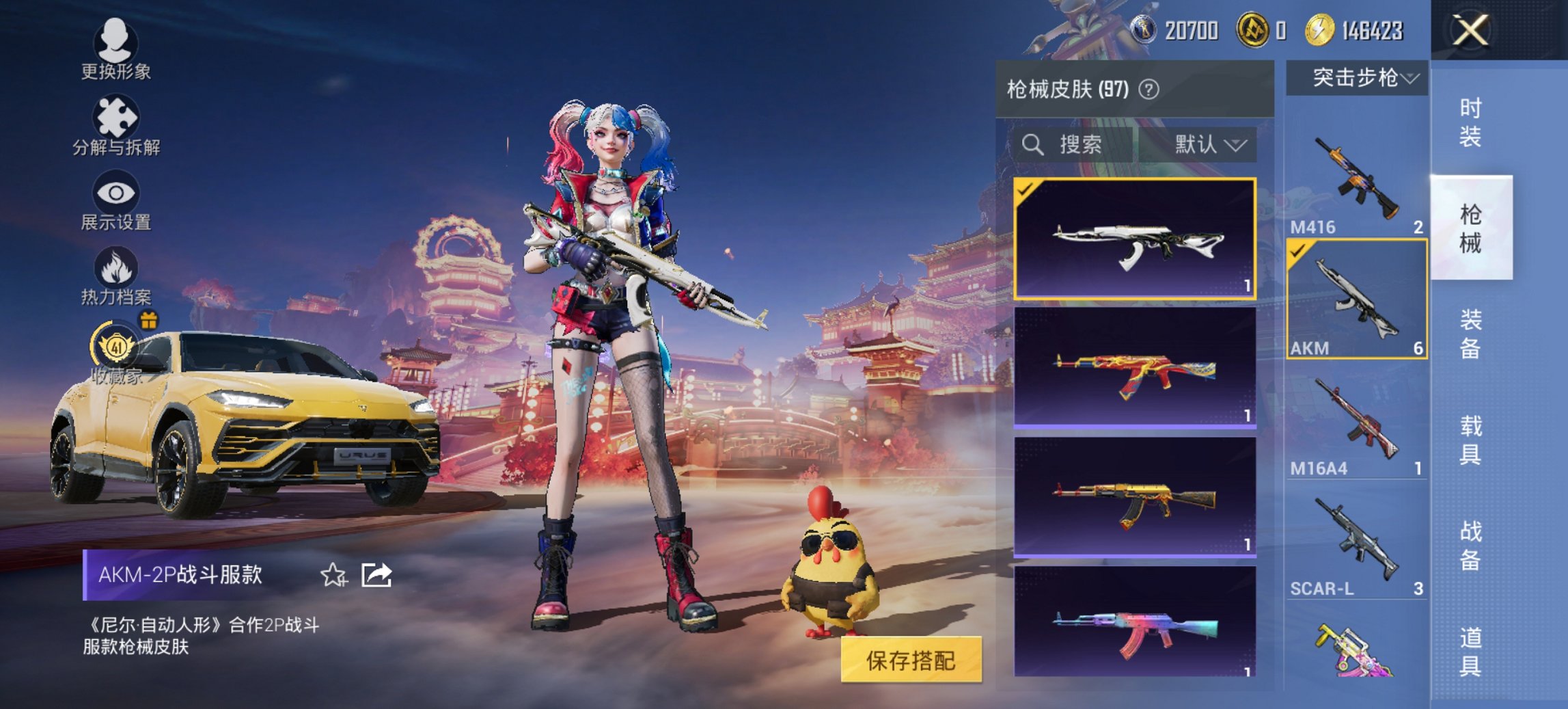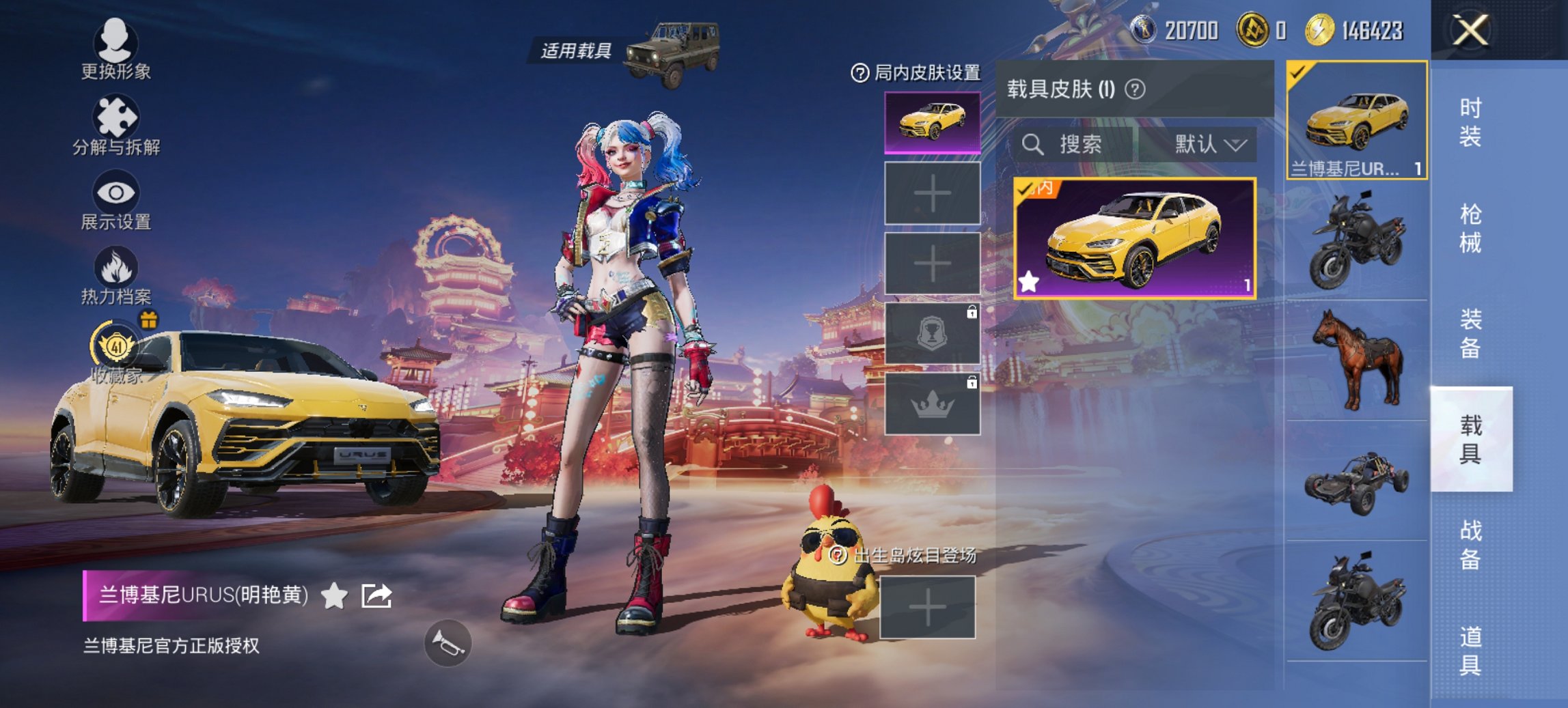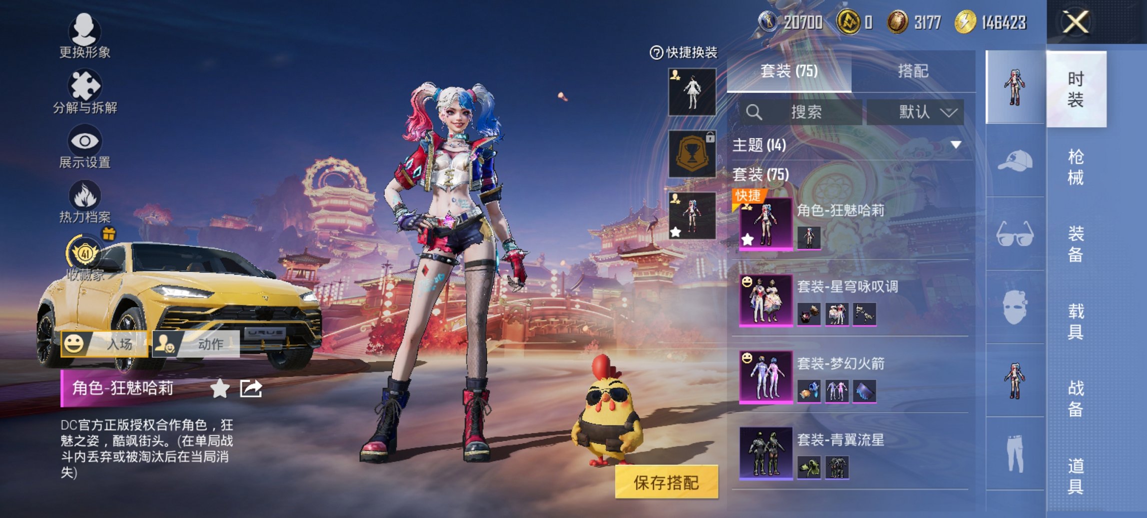 1载具-74套装-97呛皮-【小丑女梦幻火箭3粉装3特效呛1载具 秒换绑不用等】 安卓q区-29716热力值-3印记-74套装-97呛皮 【1载具】 兰博suv黄色【3粉装】 狂魅哈莉(小丑女) 梦幻火箭 星穹咏叹调【3特效呛】 kar98k-绿意幻情5级 kar98k-巳巳如意4级 dbs-幻影飞狐5级【82热门】 浪漫天命 好奇恐龙 破蛋小黄鸡 激萌罗小黑 团圆交子 瑞龙福将 狂沙舞者 白