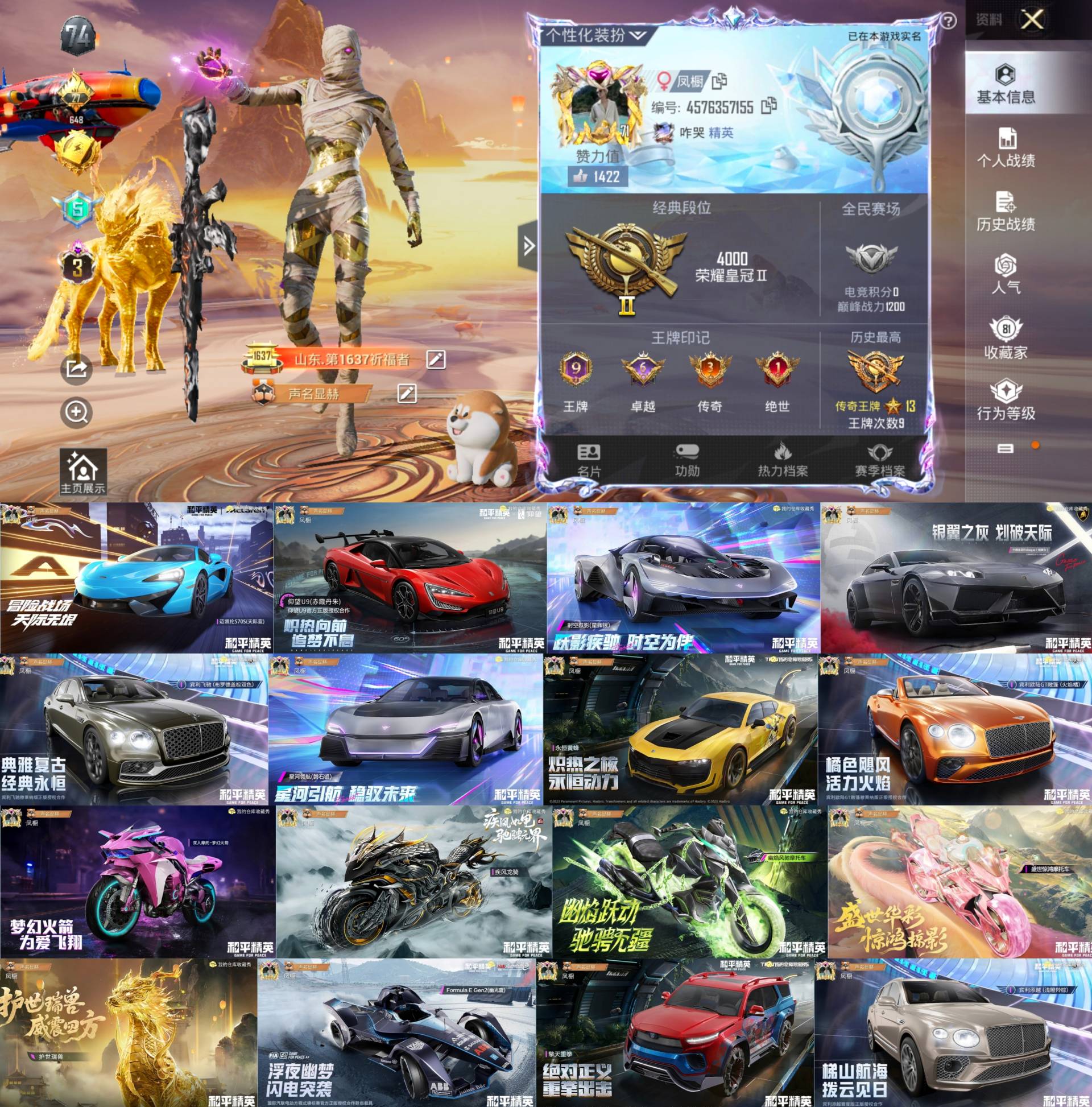 [6743674]实名: 可修改 时装数: 167 载具数: 16 呛械数: 226 神级装扮: 沙丘之主-图卡盟镜域双华-欧若拉墨龙九天-敖渊幽焰骑士-维塔 金蛇镇世-烛九盛世惊鸿-云鸾 和平王者连体 可二次可转区 身法号素材号主播号 6红装20粉12呛16车1僚机 3级沙丘之主-图卡盟 墨龙九天-敖渊 镜域双华-欧若拉 幽焰骑士-维塔 金蛇镇世-烛九 盛世惊鸿-云鸾 天网终结者 紫螳螂初号机款机体服 护世瑞兽 双人摩托梦幻火箭 疾风龙骑 幽焰风驰摩托车 盛世惊鸿摩托车 迈凯伦天际蓝 仰望u9赤霞丹朱 时空跃影 兰博基尼银翼灰 宾利飞驰布罗德盖棕双色 星河领航磐石银 永恒黄蜂 擎天重拳 宾利添越浅瞪羚粽 宾利欧陆gt敞篷火焰橘 fmula e gen2幽光蓝 僚机擎天重拳 mk14盛世惊鸿 scr金蛇镇世 akm幽焰骑士 m416墨龙九天 p90沙丘之主 m24镜域双华 m416风花雪月 akm甜心宝贝 p90粉樱探戈 m762青锋波束 98k巳巳如意 dbs幻影飞狐 金域紫灵 幻影飞狐 繁龙极客 萌物绒绒 蔷薇星 粉樱探戈 未来歌姬 白勺歌姬 呆萌星弥 小可学妹 无畏白羊 射星猎手 牧神之羯 梦幻火箭 天使彩虹糖 宝贝奶油派 琉璃花蕾 派对舞王金鞋子 许七安 酷勇熊大 憨乐熊二 2b战斗服款 2p战斗服款 甜蜜旋律 明日香款战队服 呆萌铁蟹 暗影哥特 浪漫天命 风铃 万象金身飞行器 龙翔九天飞行器 祥瑞起舞飞行器 凤舞九天飞行器 酣梦熊熊飞行器 幽焰列车飞行器 繁龙极客飞行器 镜域双华-灵镜之阶 沙丘之主天马 超新星飞行器 萌物绒绒飞行器 粉樱探戈飞行器 梦幻火箭飞行器 招财竹蜻蜓飞行器 王者1典藏1无双30传说 弑呛猎影 青丘九尾 愿照山河定 愿照九州拓 愿照岁时盈 金乌负日 曦玄引cp 乘龙问璇玑 乘龙淬吴钩 乘龙铭钟鼎 琥珀纪元马超 逐花归海 遇见神鼓 惊梅引 妄想实况 灼幽烈阳 鹤羽星尊 燃星之曲 齐天大圣 山海炽霜斩 怒海麟威 诗剑行 碎云 音你闪耀 深海之息 游龙清影 启明星使 云鹰飞将 猫影幻舞 久胜战神 超时空战士 朱雀志 孙行者 大圣娶亲 至尊宝