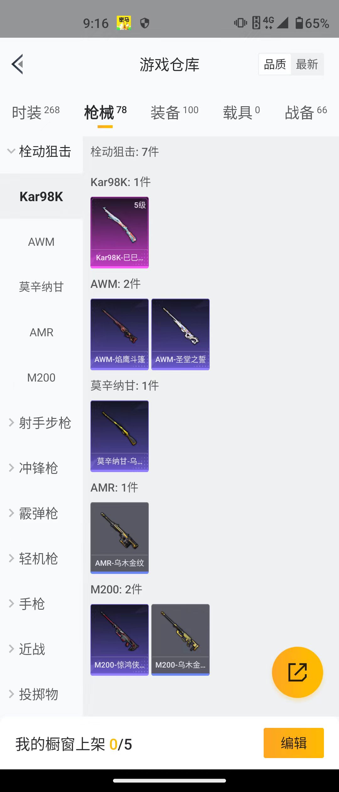 2208231-实名: 不可修改 时装数: 268 呛械数: 78 战备数: 66 热门装扮: 呆萌铁蟹深海小丑鱼迅捷狂鲨未来歌姬炫光之旅白兰星烟云彩露 稀有呛皮: 黄金龙骨scar-laug超新星kar98k-巳巳如意