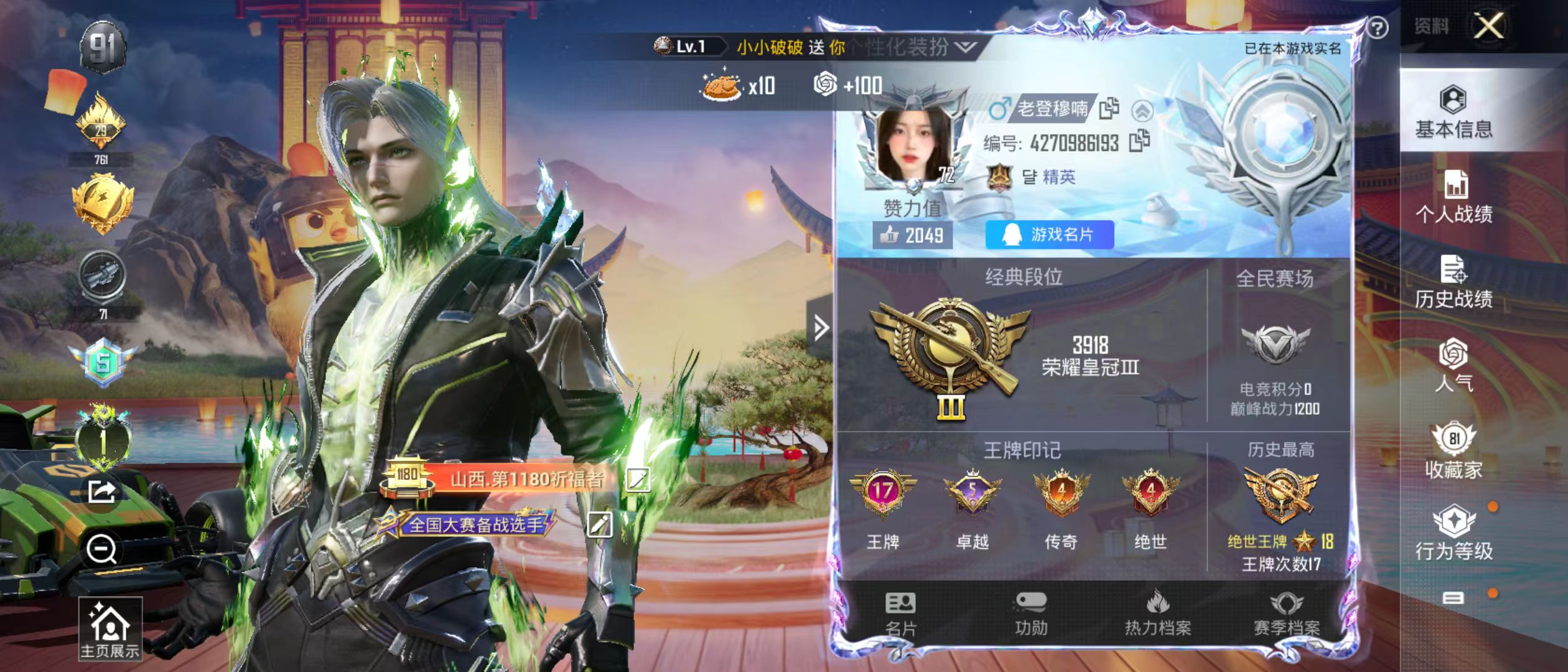 2217747-实名: 不可修改 时装数: 752 载具数: 13 呛械数: 269 战备数: 197 神级装扮: 沙丘之主-图卡盟镜域双华-欧若拉幽焰骑士-维塔 热门装扮: 梦幻火箭新101甜心巧克力宝贝奶油派天使彩虹糖梦魇先生万圣娃娃东方飞龙新星烈龙复仇流浪者灵感创作师暗夜鎏金挚爱序曲第五大道傲傲奶龙圣堂之誓小叽联名款初号机 觉醒ver.金丰海韵bearbrick千金淑猫 载具: 双人摩托-梦幻火箭合金龙骨(绿)海龙奔腾僚机-萌兔起飞路特斯eletre冰川蓝路特斯evija星际黄玛莎拉蒂quattropte夜幕蓝乔治·巴顿战车鎏金黑宾利飞驰布罗德盖棕双色布加迪威龙律动橙星梦玉骢幽澜尊爵(静谧蓝)星河领航磐石银幽焰风驰摩托车 稀有呛皮: akm甜心宝贝vect灵感创作师scar-l天蓬元帅m417第五大道p90沙丘之主m24镜域双华m416墨龙九天破片手留单粉粉猫爪盐雾蛋猫咪绅士ump45-宇宙意志爆炸猎弓-拳皇·狂花道groza-精灵之光akm-幽焰骑士kar98k-巳巳如意
