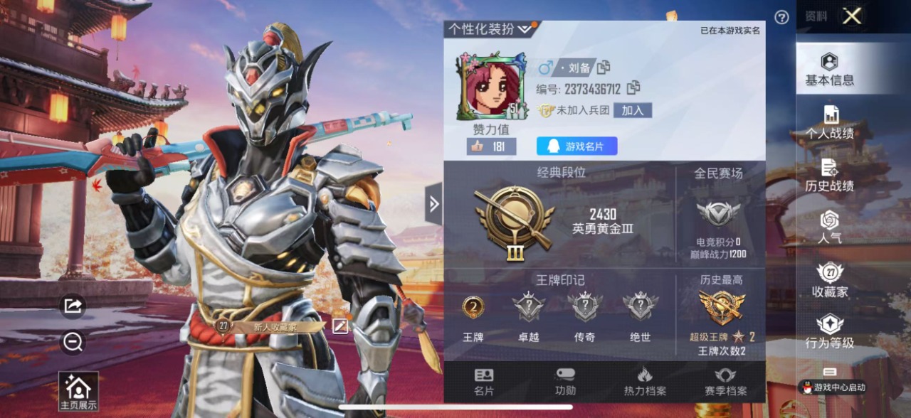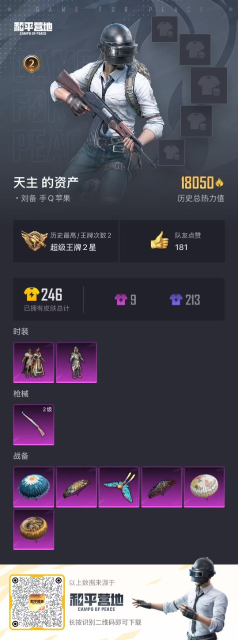 [7437290]2粉装 1特效呛 2印记 可二次 热门装扮:金曜白虎华贵君王 稀有呛皮:kar98k-巳巳如意 二级特效呛:二级kar98k-巳巳如意 紫色装扮:竞技名士 优质战备:至尊龙雀飞行器华贵君王降落伞凝视深渊降落伞至尊龙雀降落伞春暖花开降落伞飞行器-春暖花开繁花小夜曲降落伞