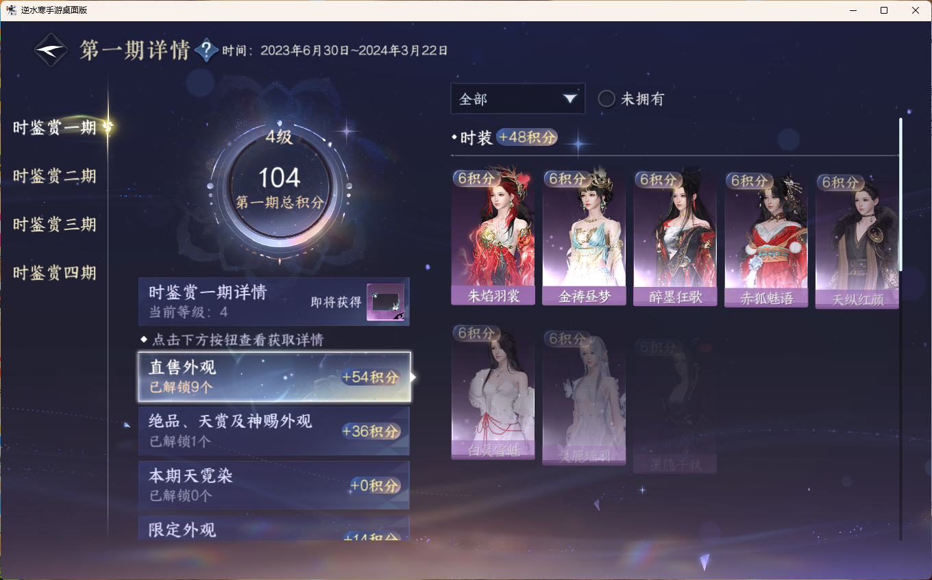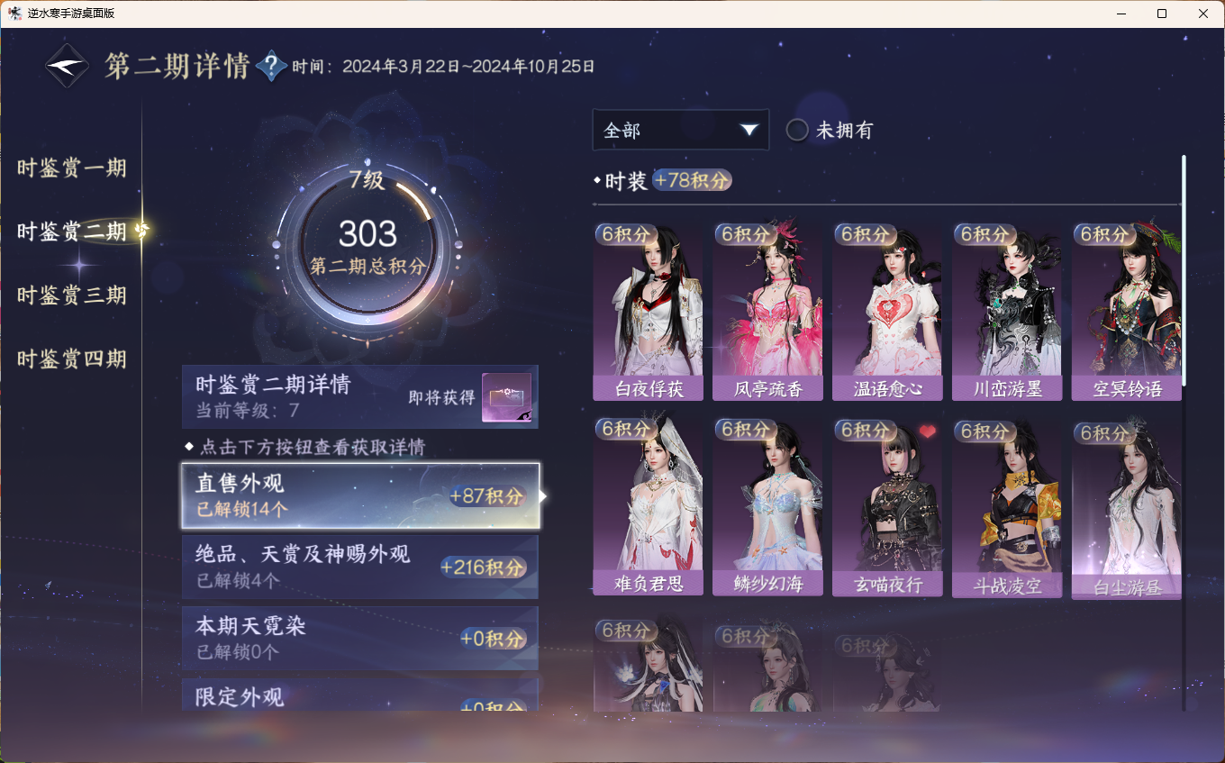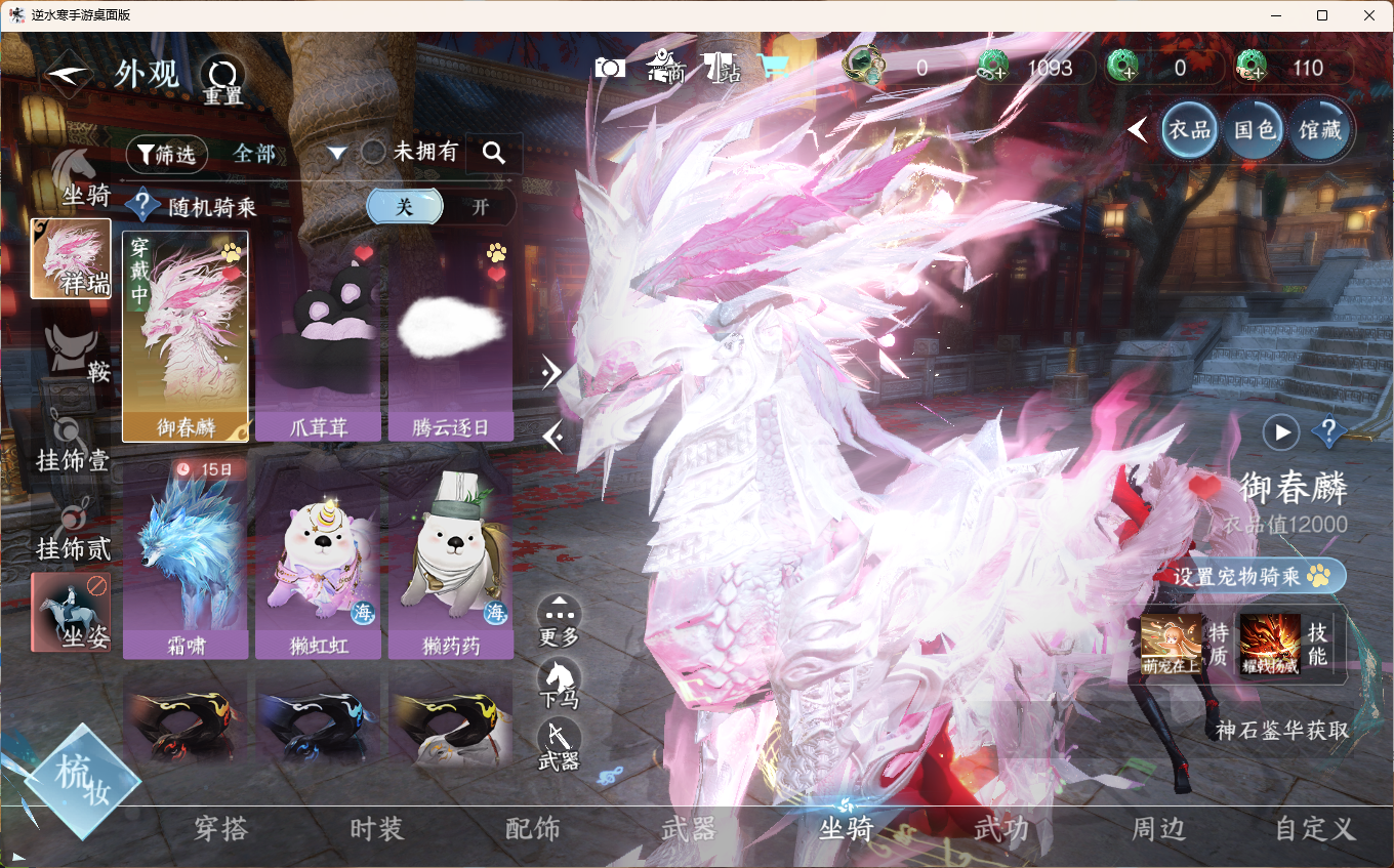 [13845805]【已用天赏石11】 副本外观4 馆藏5级 灵韵3 6国色 243830衣品 53680国色值 216套时装 装备特技15金 宠物图鉴10级 庄园13级 详情见图