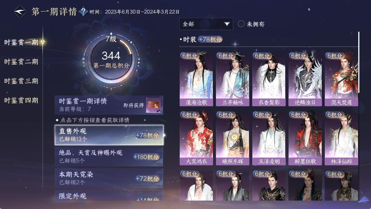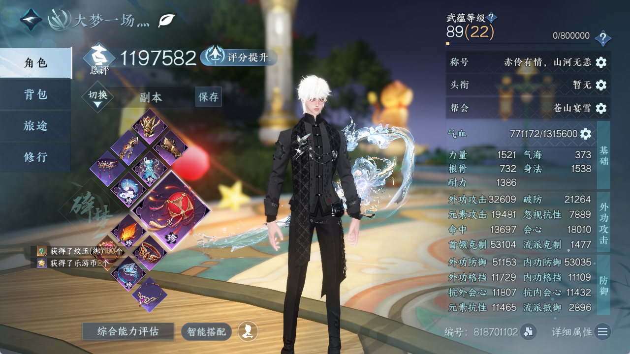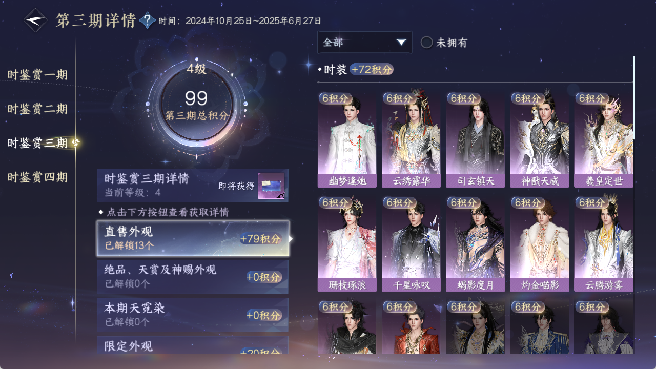 [14267803]【9天赏石】天霓染1 馆藏5级 灵韵8 3国色 197275衣品 25900国色值 217套时装 装备特技20金 宠物图鉴10级