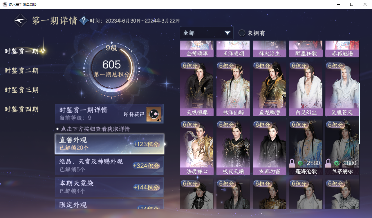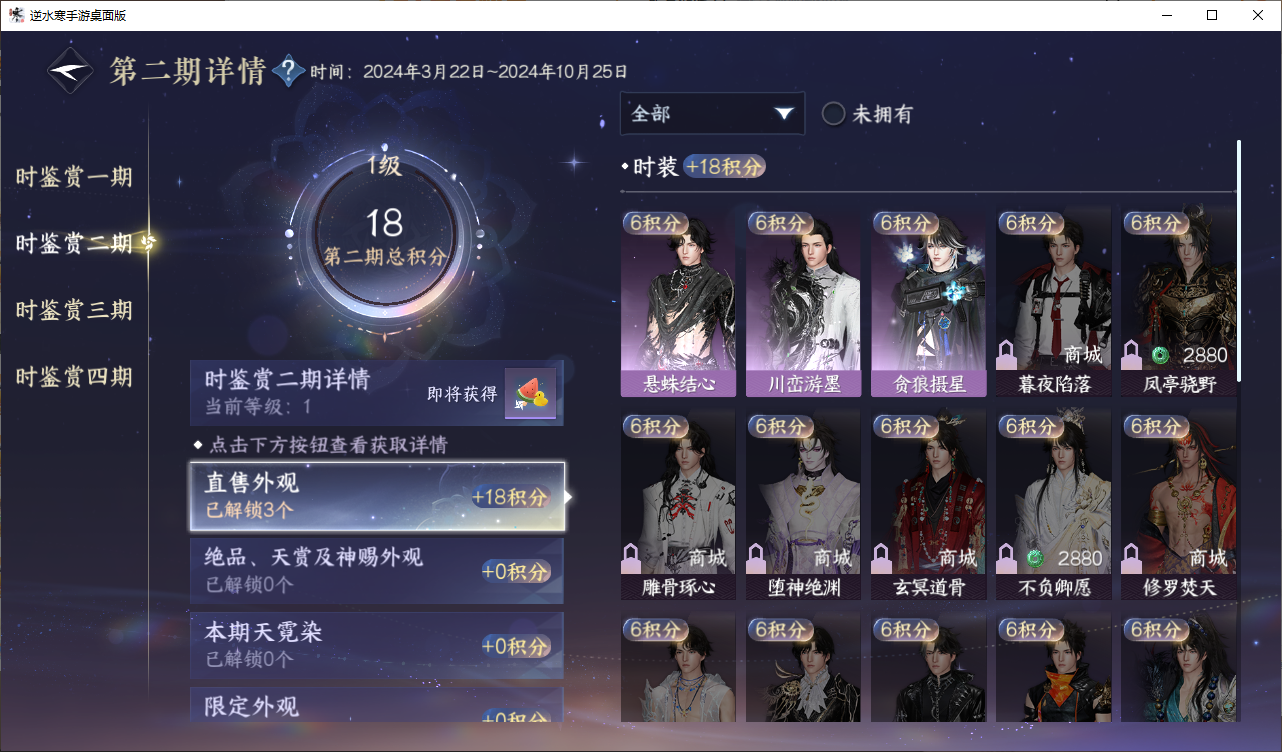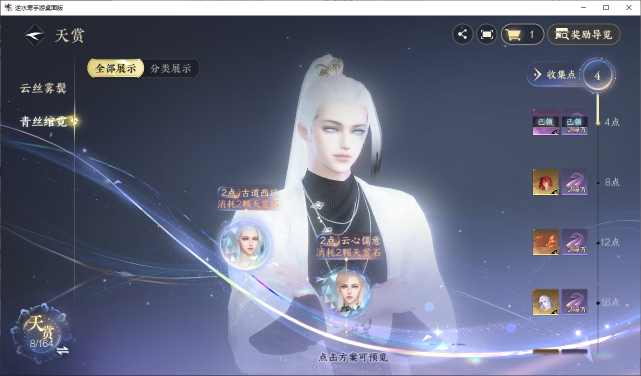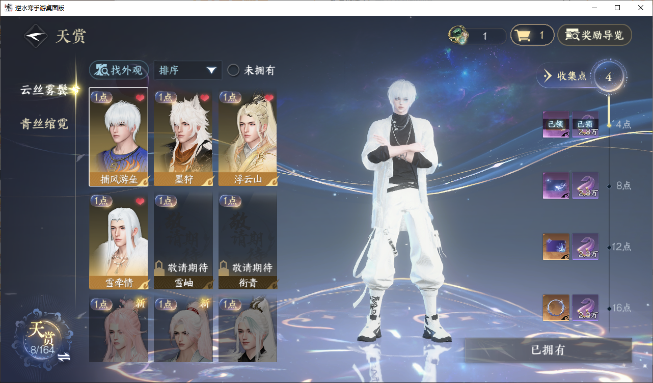 [14309193]神相【把酒临风】【已用天赏石15】天霓染2【1颗未用天赏】 副本外观1 馆藏6级 灵韵4 6国色 186910衣品 51760国色值 166套时装 稀有外观: 白夜拂雪 天赏石外观: 黑狐月川灵白发雪牵情五尾狐流光溯金发浮云山墨狩捕风游垒