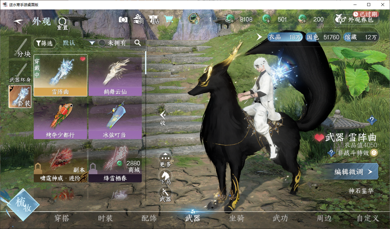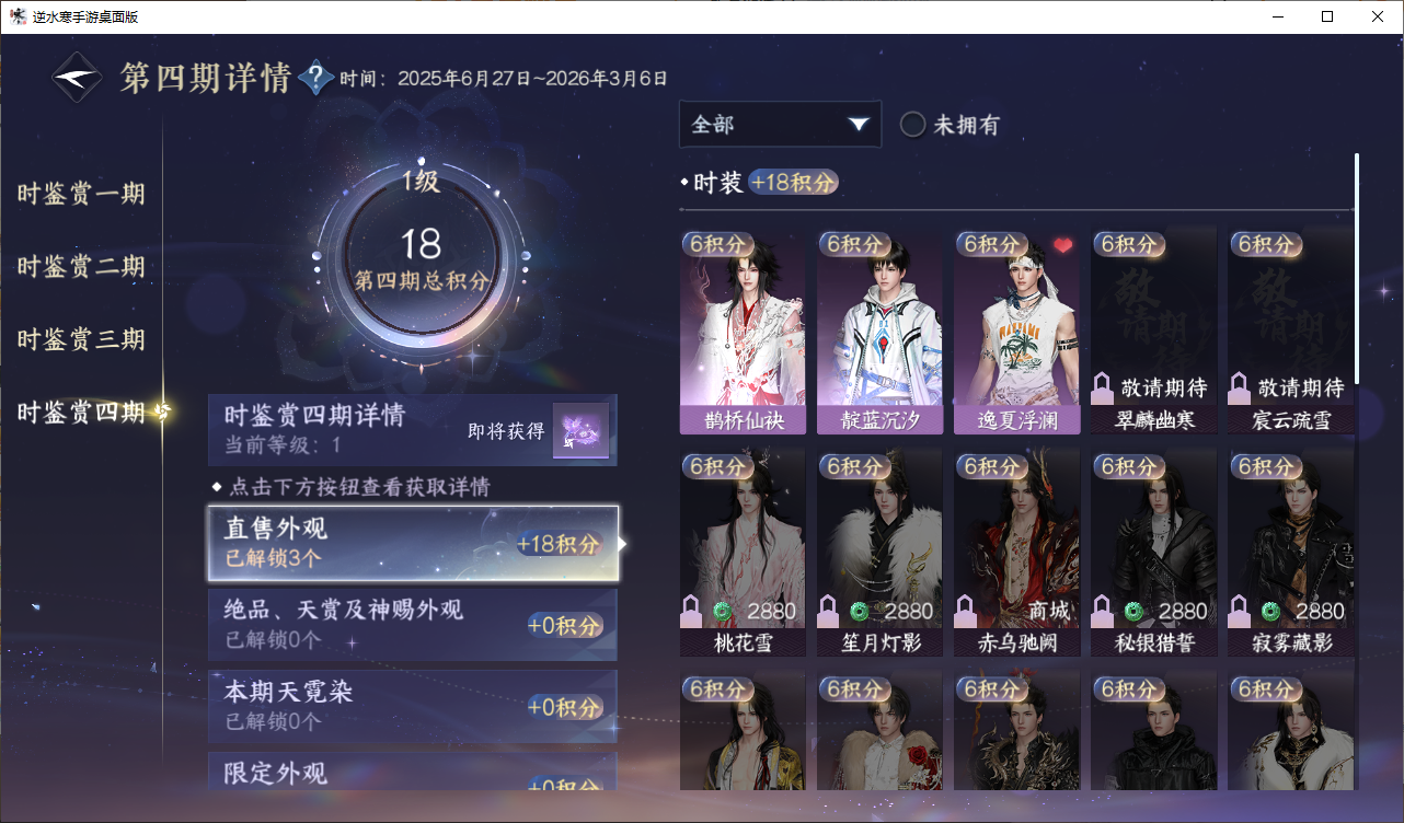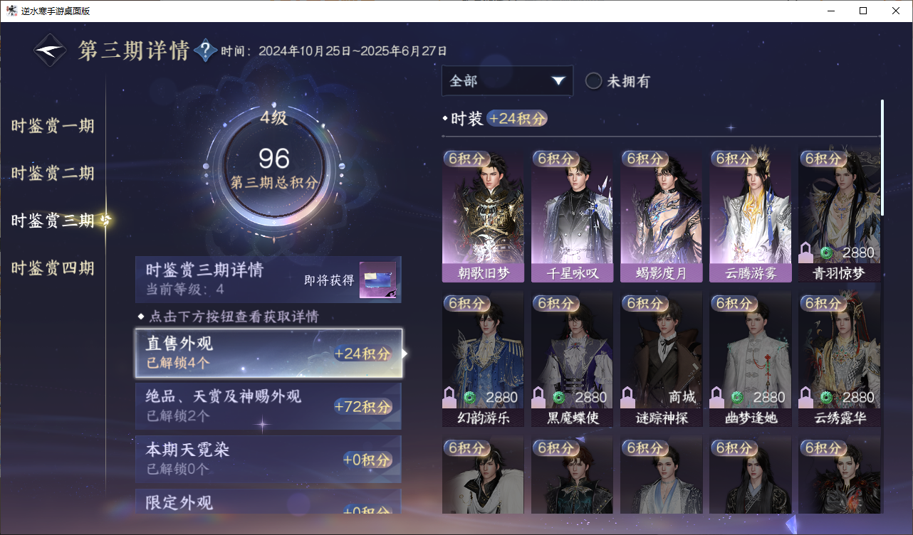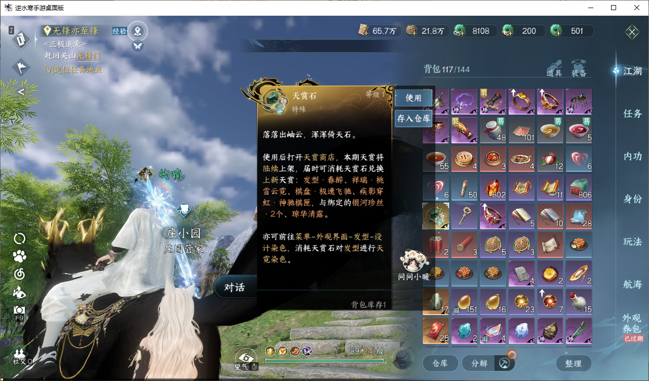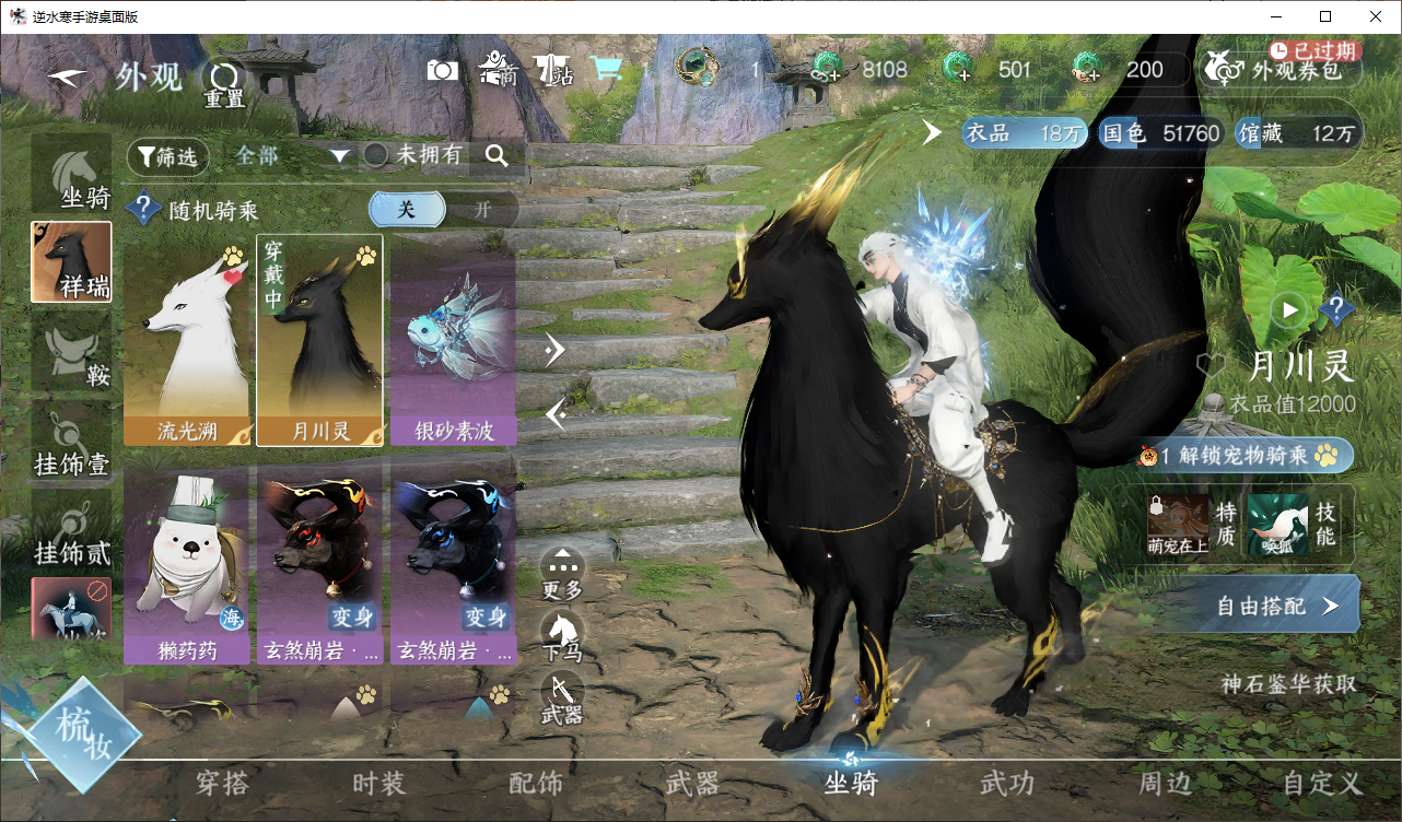 [14309193]神相【把酒临风】【已用天赏石15】天霓染2【1颗未用天赏】 副本外观1 馆藏6级 灵韵4 6国色 186910衣品 51760国色值 166套时装 稀有外观: 白夜拂雪 天赏石外观: 黑狐月川灵白发雪牵情五尾狐流光溯金发浮云山墨狩捕风游垒