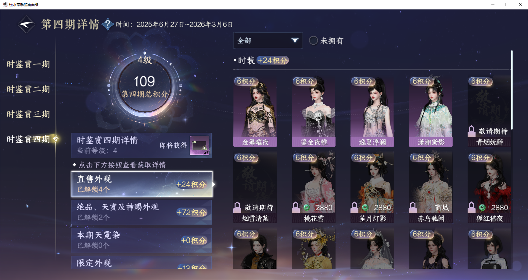 [14364091]【已用7天赏带多套288时装有绝版舞乐】稀有外观: 白夜拂雪星落月皓紫宿宸极 天赏石外观: 火焰武器白发狂歌星朔九天尘缘引梦喵语煦风漫璇珀 商城时装: 舞乐火霓白灵雪魅雾蓝星瞳糖云蜜杏雾都往事粉蔷曳风金缕漠歌