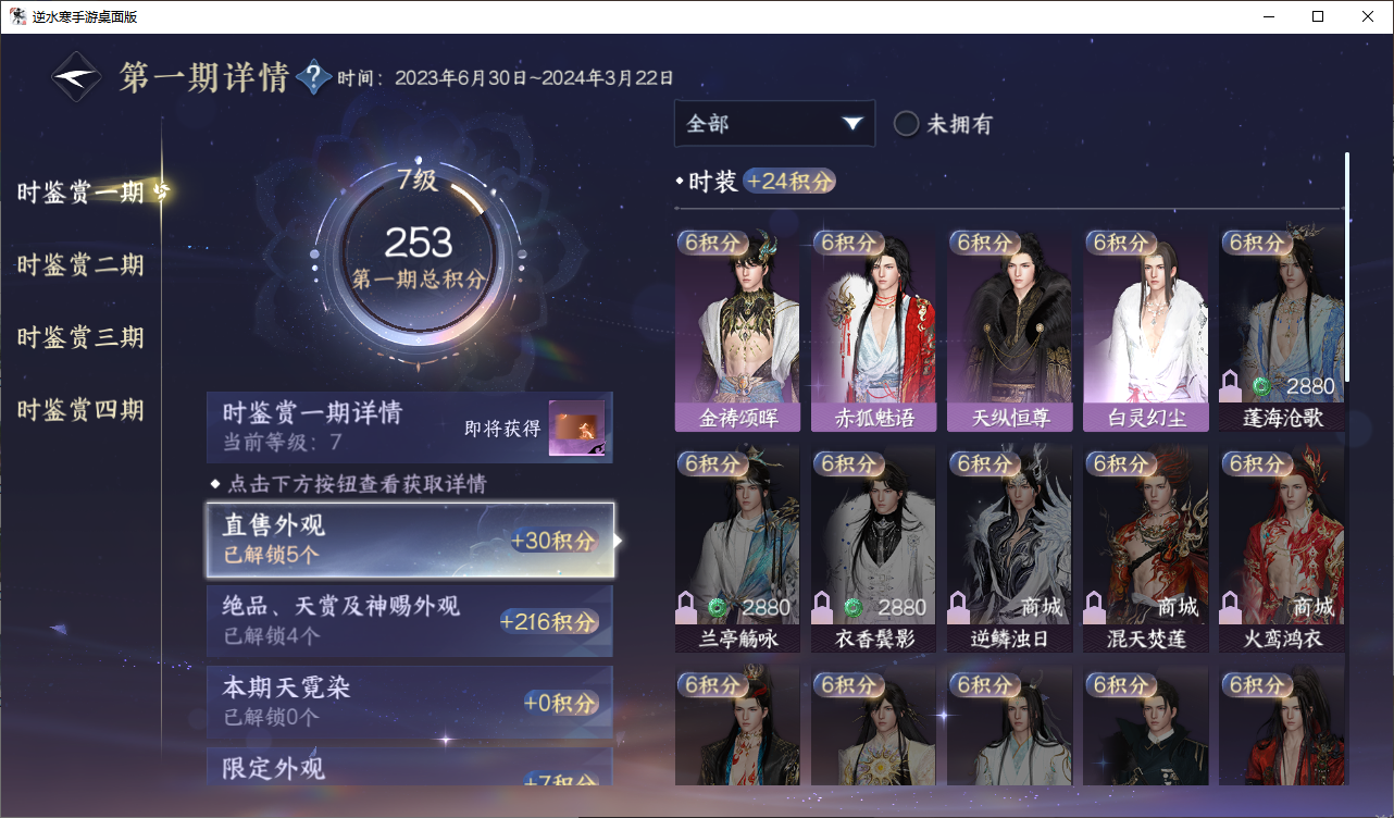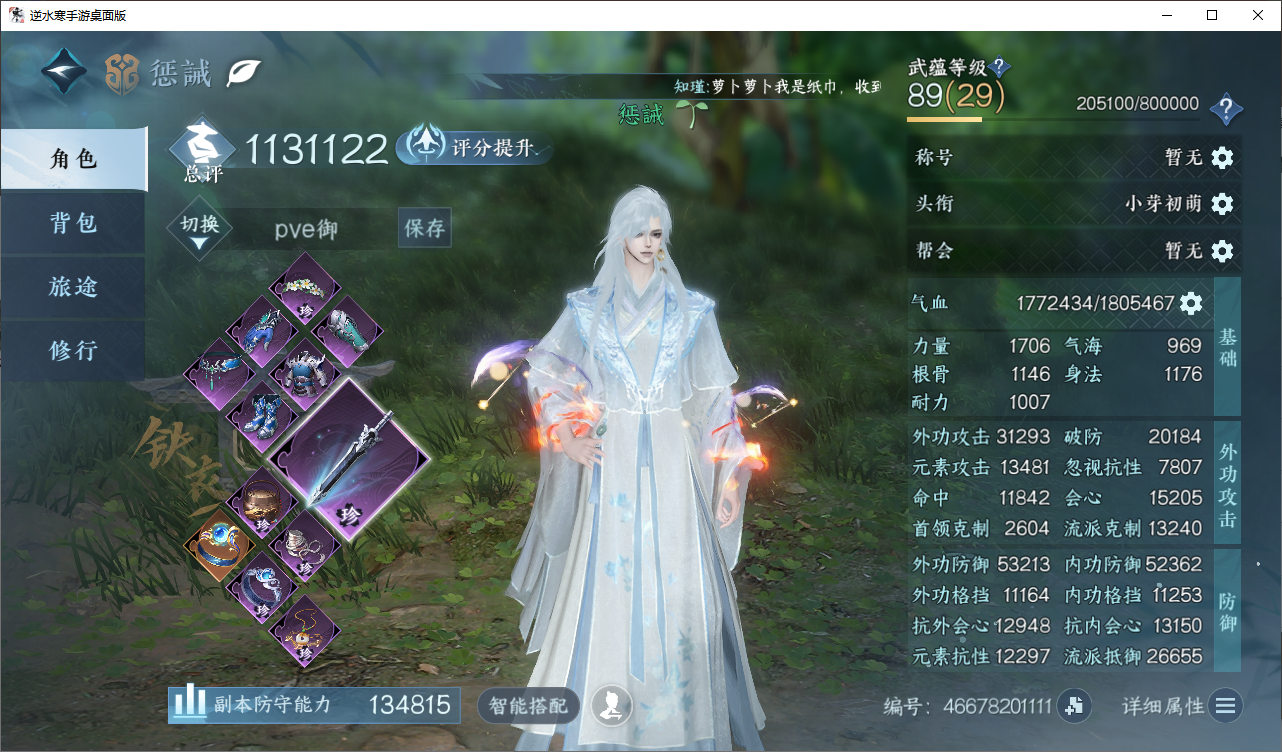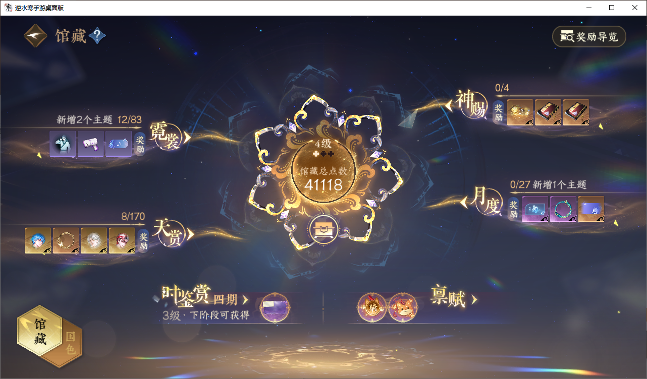 [15365447]铁衣【凭栏听雨】【已用天赏石13】天霓染1 副本外观2 馆藏4级 灵韵5 9国色 203265衣品 74210国色值 197套时装 装备特技15金 庄园11级 详情见图