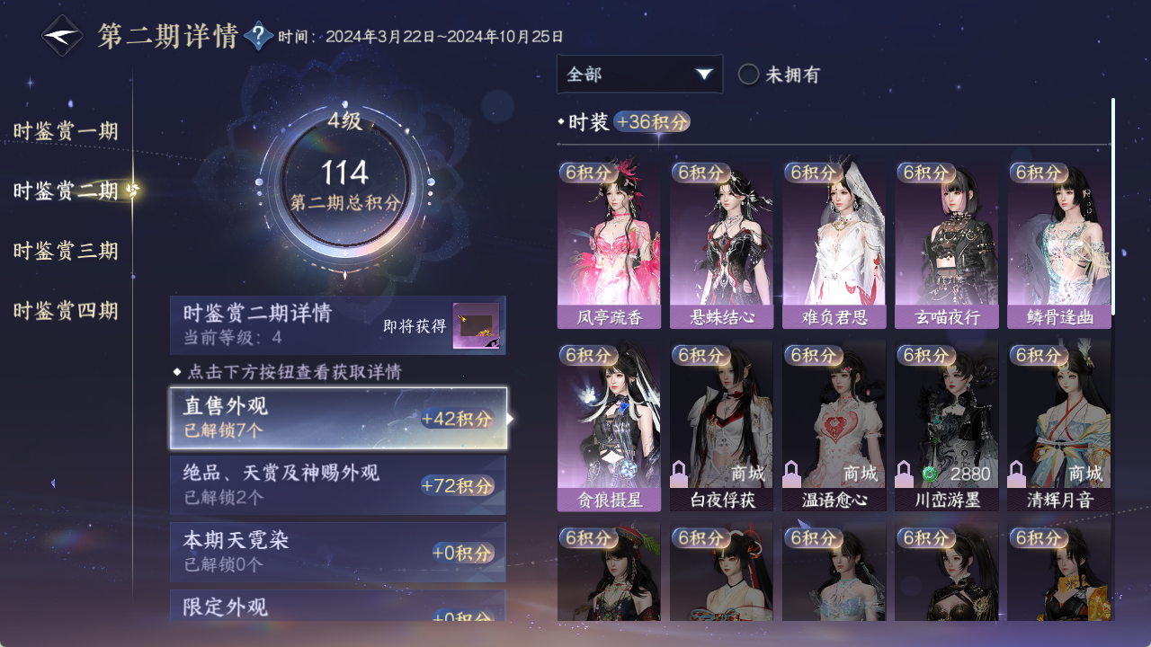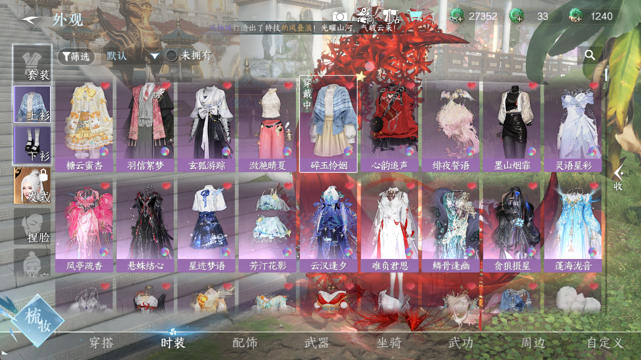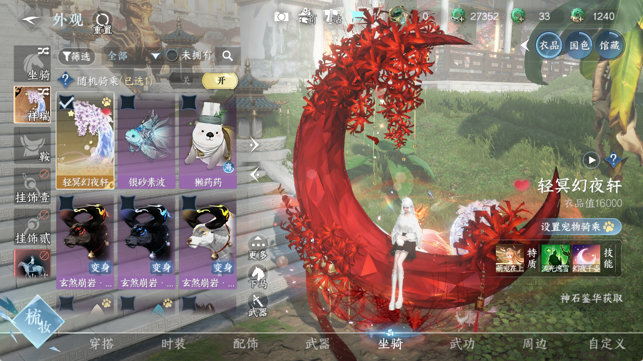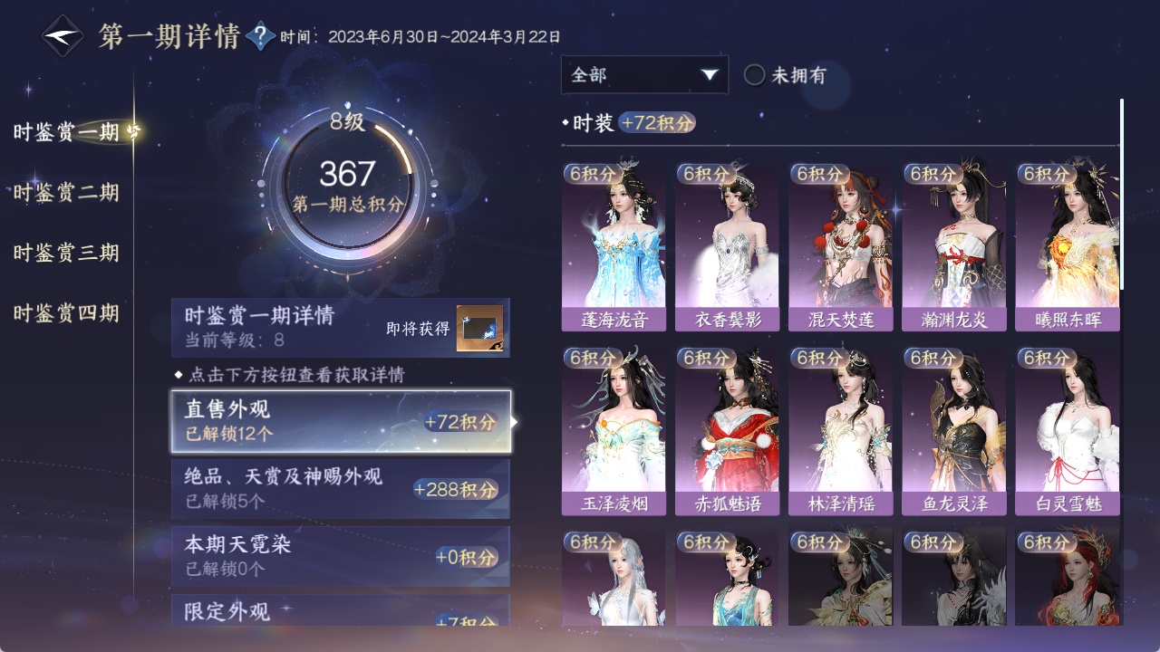 [15620514]【已用天赏石12-未用1】 副本外观2 馆藏5级 灵韵8 5国色 195335衣品 44500国色值 183套时装 装备特技15金 宠物图鉴9级