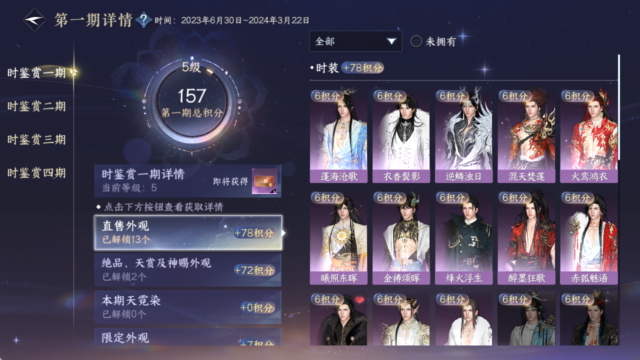 [15944157]【已用天赏石8】 副本外观3 馆藏4级 灵韵4 5国色 185045衣品 41330国色值 205套时装 装备特技12金 宠物图鉴4级 庄园12级