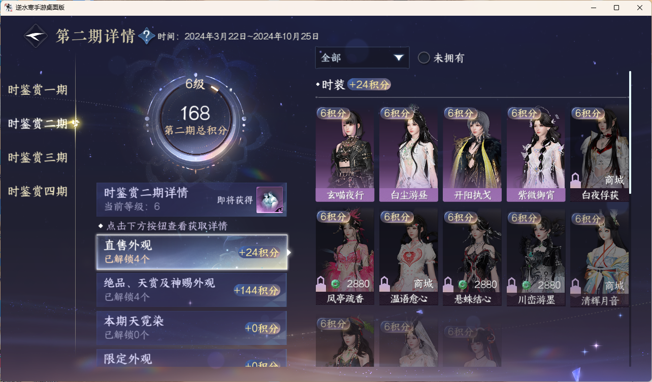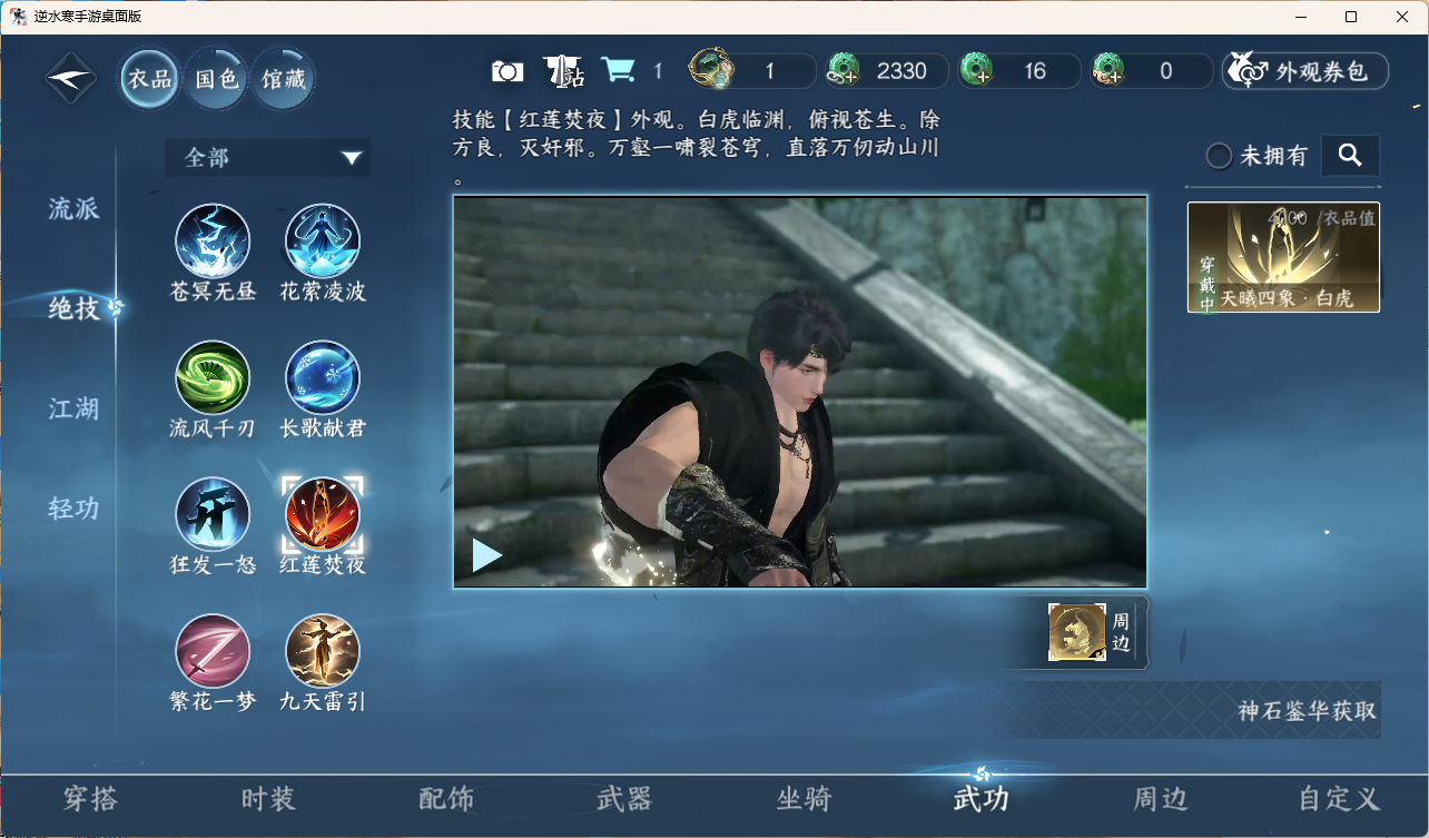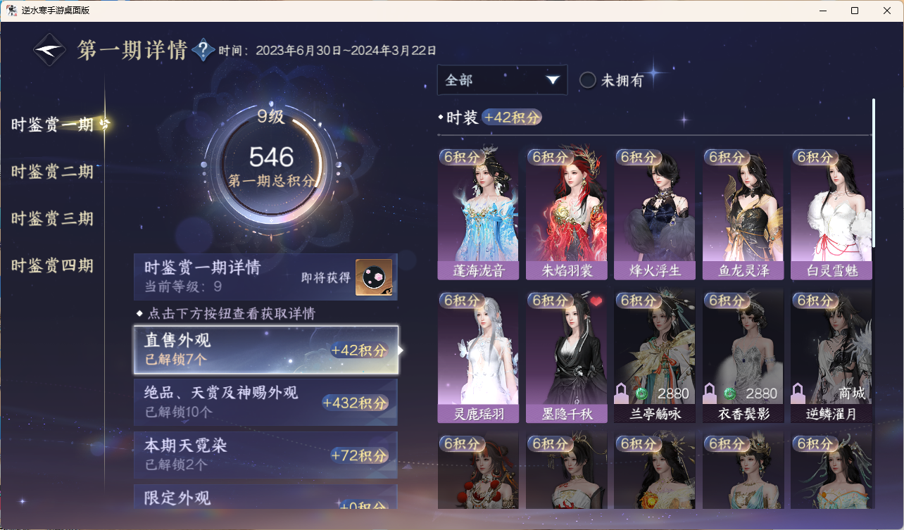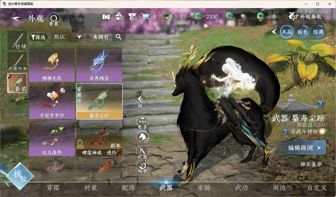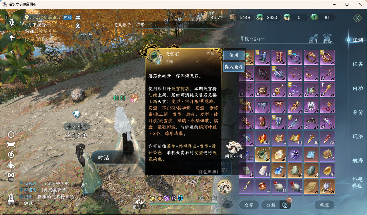[15959949]素问【放歌清宵】【已用天赏石19】【1未用天赏石】天霓染1 灵韵3 2国色 161930衣品 26750国色值 132套时装 装备特技10金 宠物图鉴2级 庄园12级 详情见图