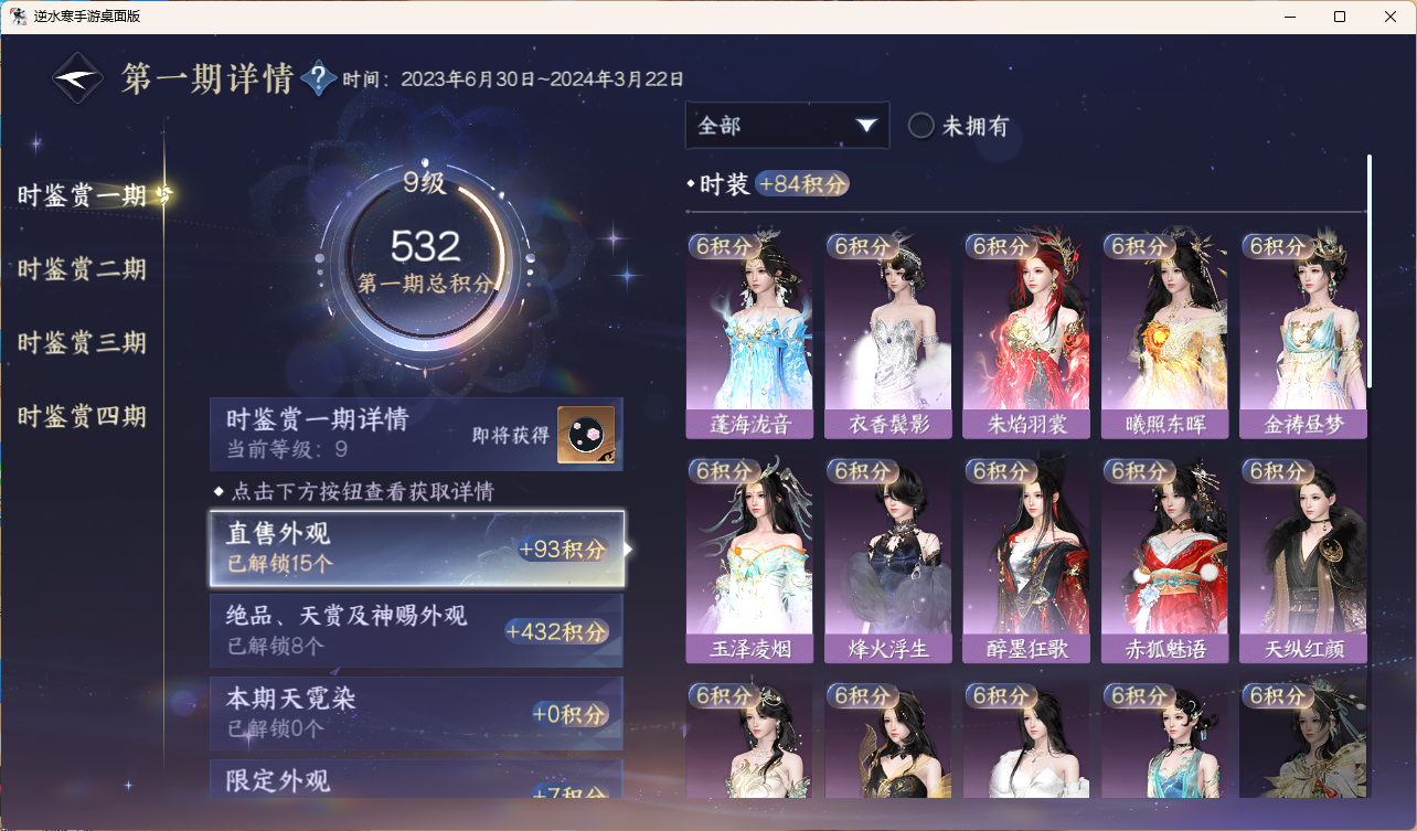 [16043243]龙吟【把酒临风】【已用天赏石19】【未用天赏石1】 副本外观6 馆藏5级 灵韵12 7国色 318895衣品 62420国色值 230套时装 装备特技26金 庄园13级 20天赏