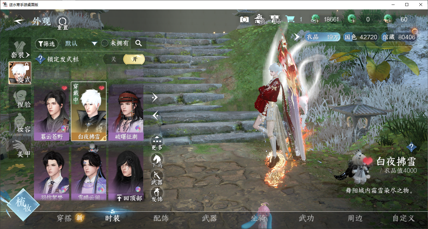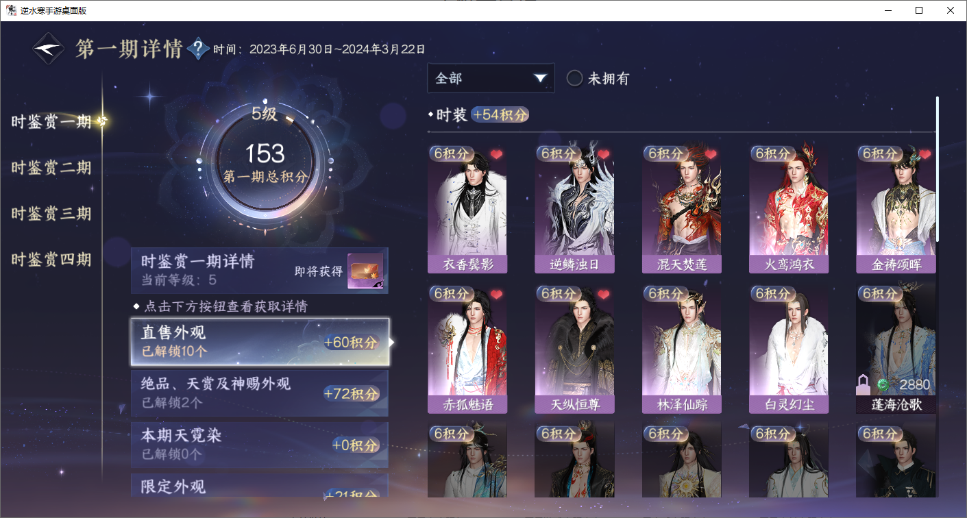 [16179356]沧澜【把酒临风】【已用天赏石11】 转盘外观1 副本外观2 馆藏5级 灵韵6 5国色 193730衣品 42720国色值 178套时装 装备特技16金 宠物图鉴10级