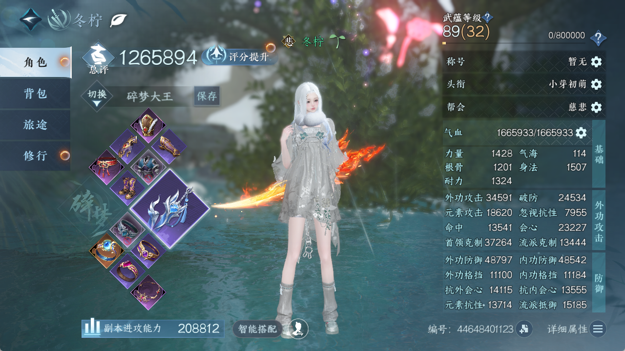 [16365876]【已用天赏石10】天霓染2 馆藏5级 灵韵4 7国色 160665衣品 57340国色值 192套时装 装备特技6金 宠物图鉴8级 庄园12级