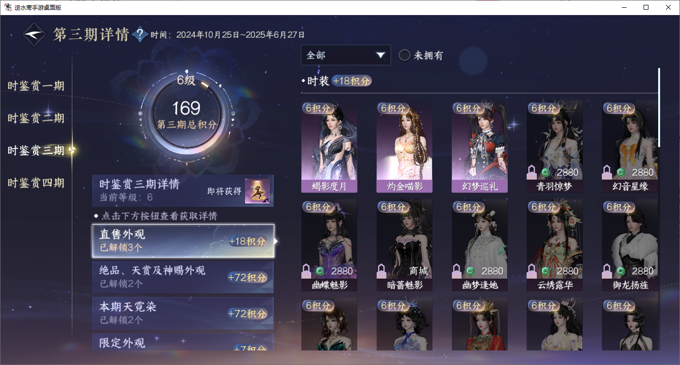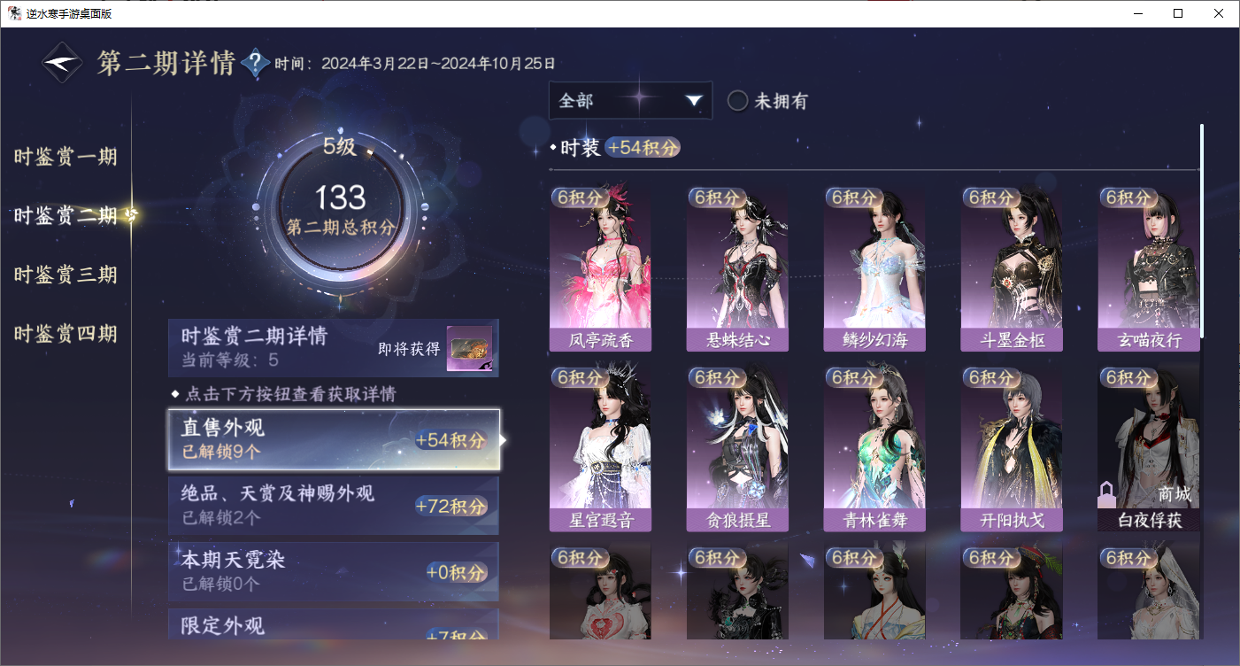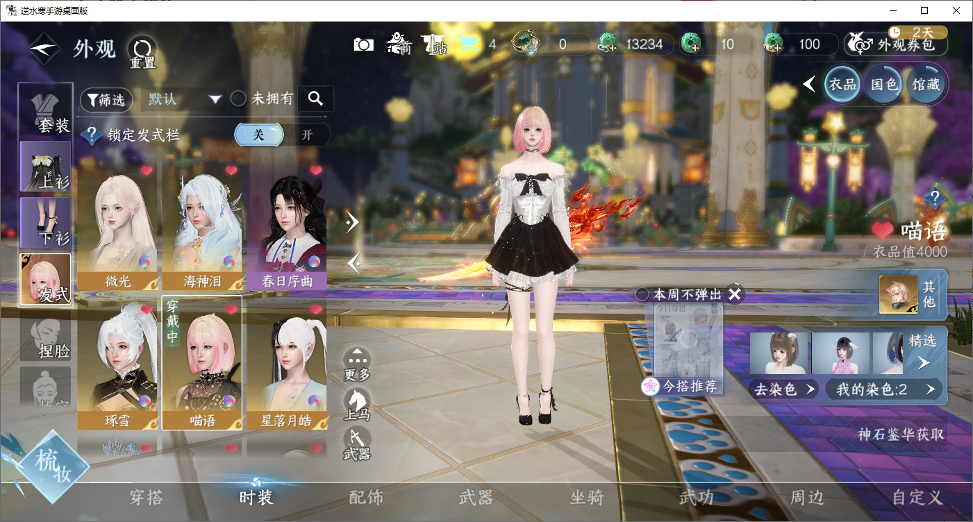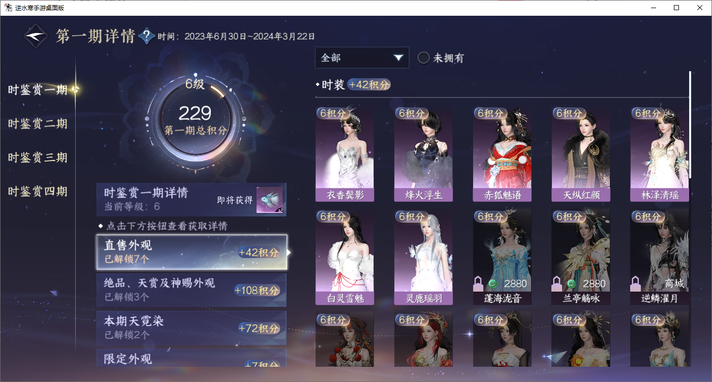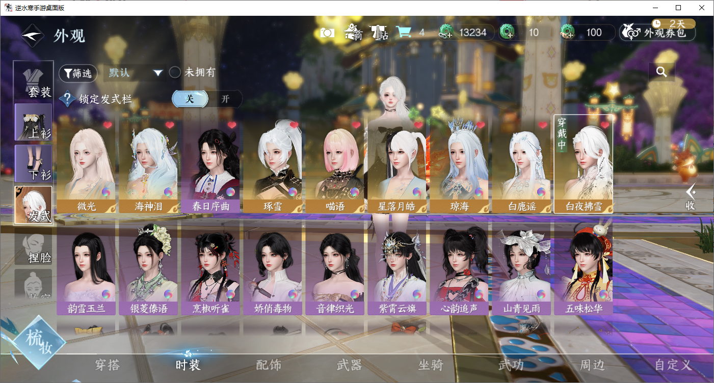 [16435754]【已用10天赏】稀有外观: 微光 天赏石外观: 白发白鹿谣琼海喵语琢雪海神泪 商城时装: 鲤跃今宵春日序曲