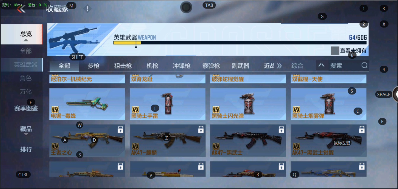 v4 3王者武器 64英雄武器 1英雄角色 201万化 呛圣 武器:王者之兽王者之心王者之神awm-妙才81式-光明之神m4a1-堕天神ak47-木兰ak47-无影ak47-火麒麟m4a1-死神m4a1-雷神芭蕾特-毁灭q03-金色蔷薇q03-死神qbb95-极光