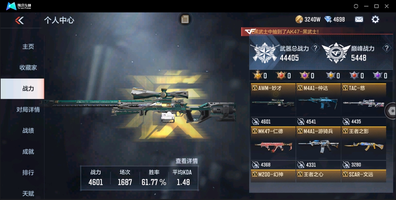 [9027225]【保证金商户】【编号00638】【慈套/仲达套过载/仁德套/幻神套/妙才套过载/威侯套/文远套/仲康/王心/王影/m4游骑兵/王狱/王蝶/王烈/孟获/星象cop/星象尼泊尔/王隐】【257英雄v-154等级-贵族v7-10角色v】 热门呛械: m4a1-仲达 scar-文远 mk47-仁德 tac-慈 awm-妙才 m200-幻神 m4a1-威侯 王者之心 王者之影 m4a1-游骑兵 王者之狱 王者之蝶 ksg-孟获 czs2-仲康 王者之魂 王者之隐 王者之迹 cop 357-星象 热门皮肤: m4a1-仲达-过载 awm-妙才-过载 角色:步练师 樱 雨墨 关小雨 幽灵刀锋-觉醒 子涵 葵 职场灵狐-赛事经理 炽天使-x 蝉