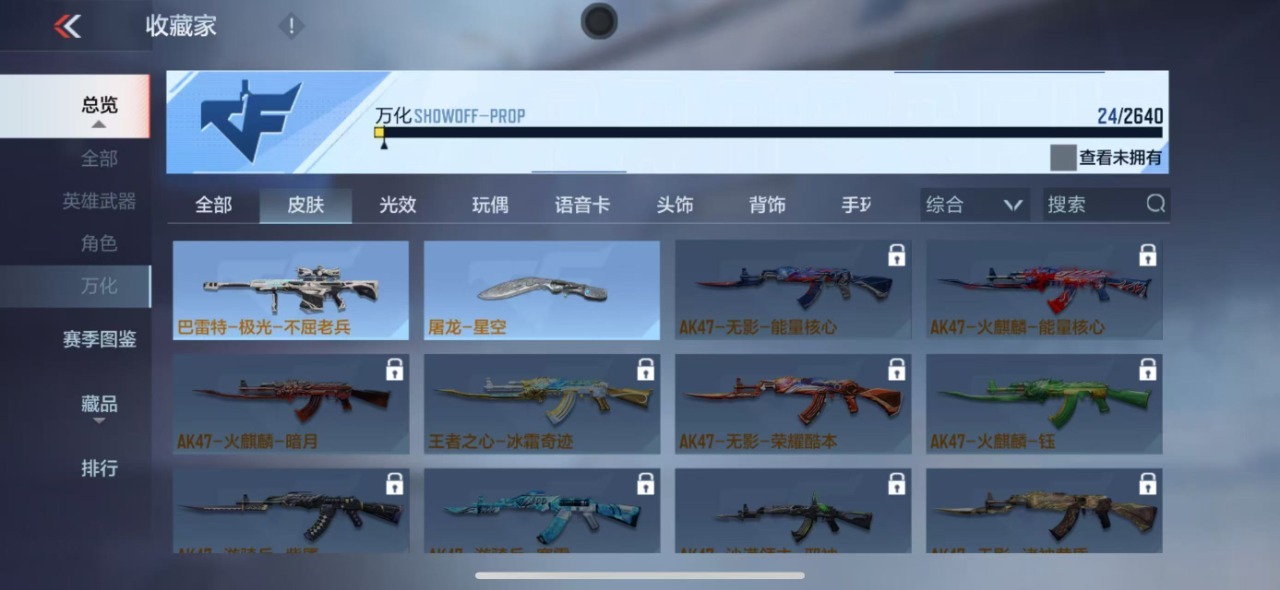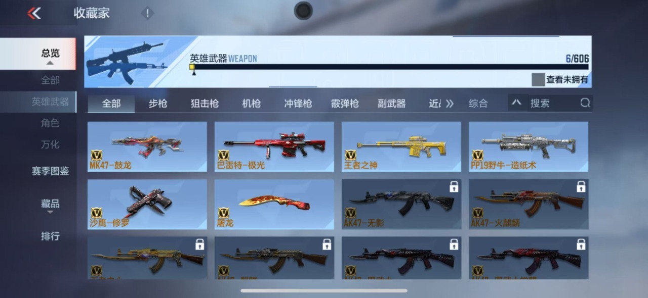 [9201349]v1 可二次 1王者武器 6英雄武器 1英雄角色 24万化 精英 武器:王者之神芭蕾特-极光mk47-鼓龙pp19野牛-造纸术屠龙