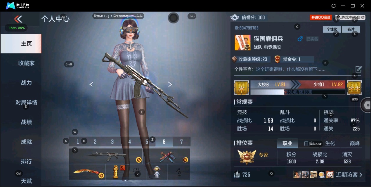 可二次 v2 71英雄武器 129万化 专家 武器:m200-幻神芭蕾特-毁灭芭蕾特-极光ak47-无影m4a1-机械迷城m4a1-死神m4a1-雷神ak47-黑武士觉醒ak47-火麒麟awm-天使q03-死神mg36-黑骑士qbb95-极光双持斯泰尔-天使m4a1