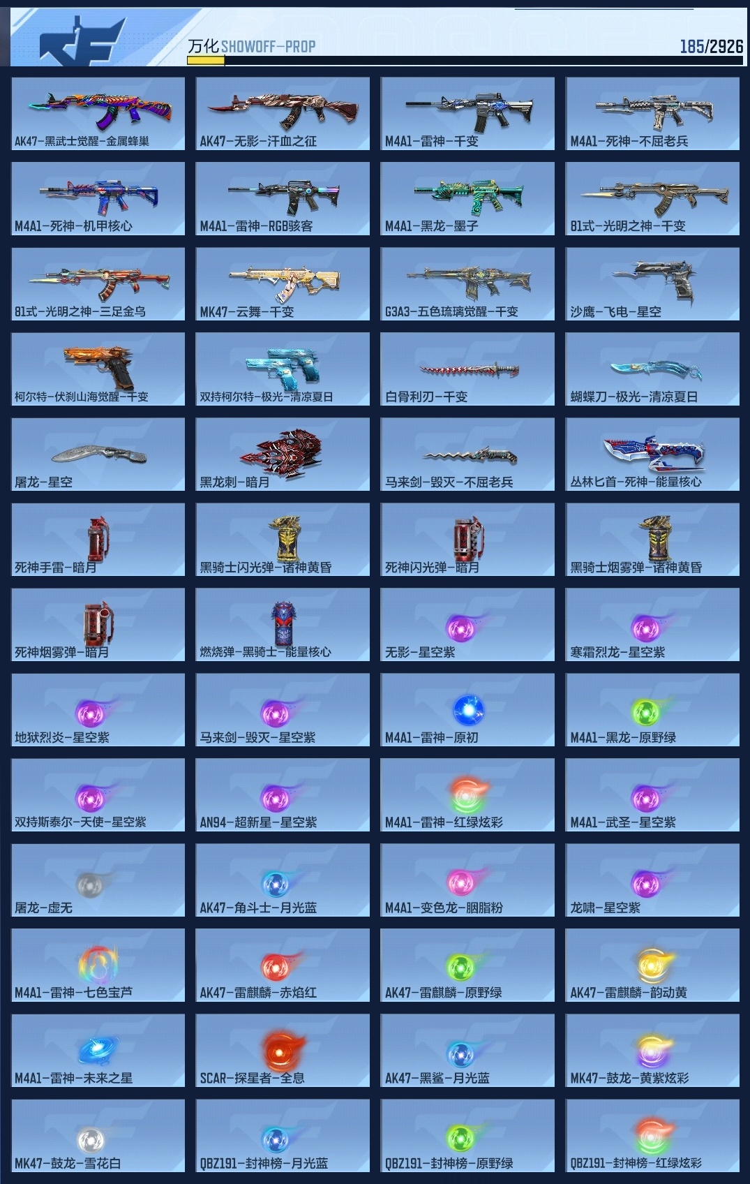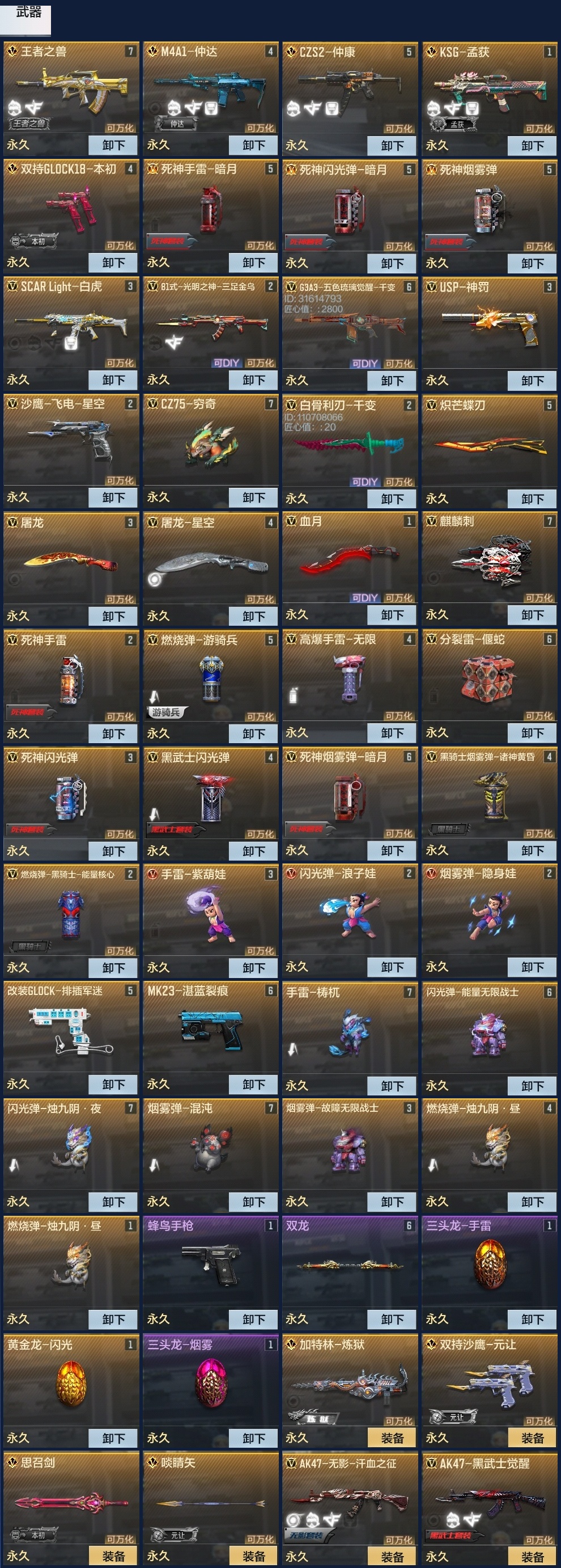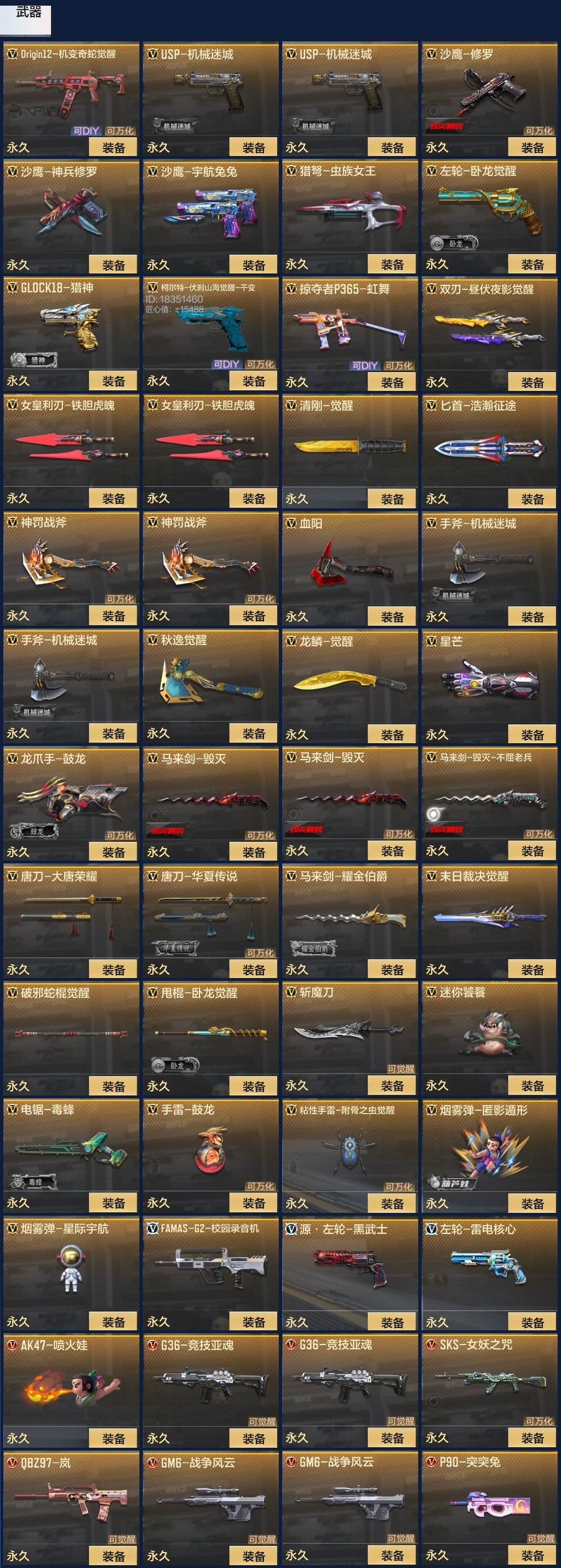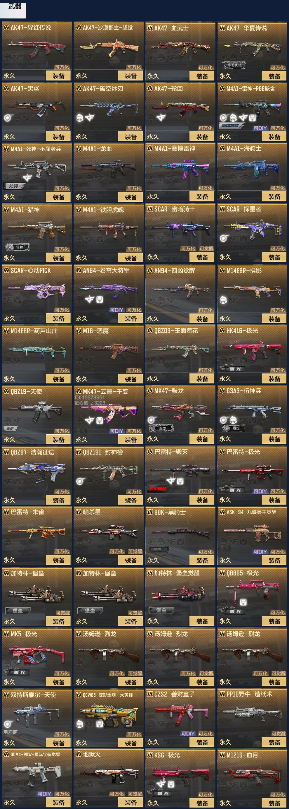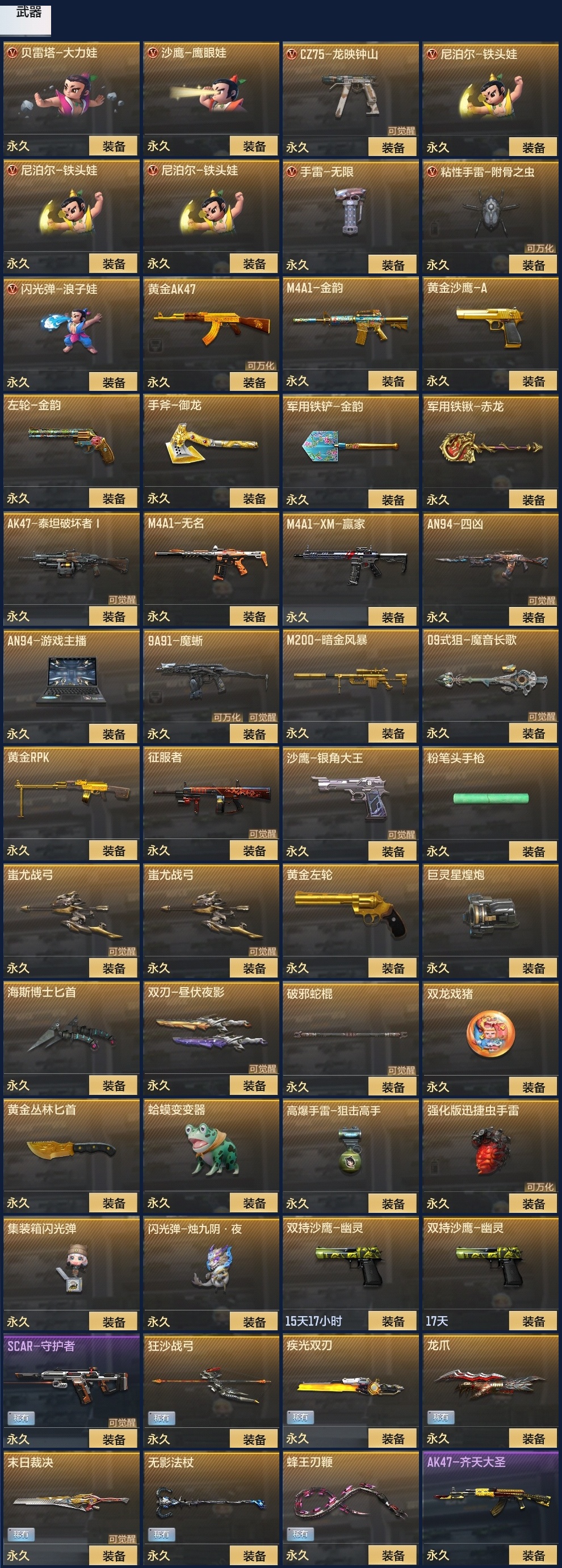 [9800431]实名: 可修改 贵族等级: v3 v武器: mk47-云舞81式-光明之神m4a1-海骑士ak47-血武士m4a1-赛博雷神an94-卷帘大将ak47-沙漠郡主-超觉ak47-猩红传说q19-天使m4a1-仲达m4a1-龙血ak47-黑武士觉醒m4a1-死神ak47-无影m4a1-雷神98k-黑骑士暗杀星芭蕾特-极光芭蕾特-毁灭加特林-堡垒觉醒加特林-炼狱czs2-善财童子mk5-极光双持斯泰尔-天使汤姆逊-烈龙地狱火usp-神罚沙鹰-飞电沙鹰-修罗白骨利刃血阳血月斩魔刀星芒麒麟刺神罚战斧马来剑-毁灭屠龙ak47-华夏传说ak47-黑鲨scar-幽暗骑士加特林-堡垒usp-机械迷城唐刀-大唐荣耀手斧-机械迷城迷你饕餮cz75-穷奇柯尔特-伏刹山海觉醒an94-四凶觉醒ksg-极光m1216-血月qcw05-变形金刚·大黄蜂qbb95-极光秋逸觉醒pp19野牛-造纸术scar-探星者m4a1-猎神沙鹰-神兵修罗ak47-轮回q03-玉面羞花g3a3-五色琉璃觉醒m14ebr-拂影m16-恶魔唐刀-华夏传说 王者武器: 王者之兽 v角色: 瞳葵蜀雪云悠悠-心动起点 呛械皮肤: ak47-无影-汗血之征ak47-黑武士觉醒-金属蜂巢m4a1-雷神-千变mk47-云舞-千变双持柯尔特-极光-清凉夏日黑龙刺-暗月白骨利刃-千变丛林匕首-死神-能量核心马来剑-毁灭-不屈老兵蝴蝶刀-极光-清凉夏日m4a1-死神-不屈老兵柯尔特-伏刹山海觉醒-千变屠龙-星空m4a1-死神-机甲核心 亮点: ss3137
