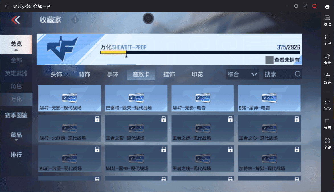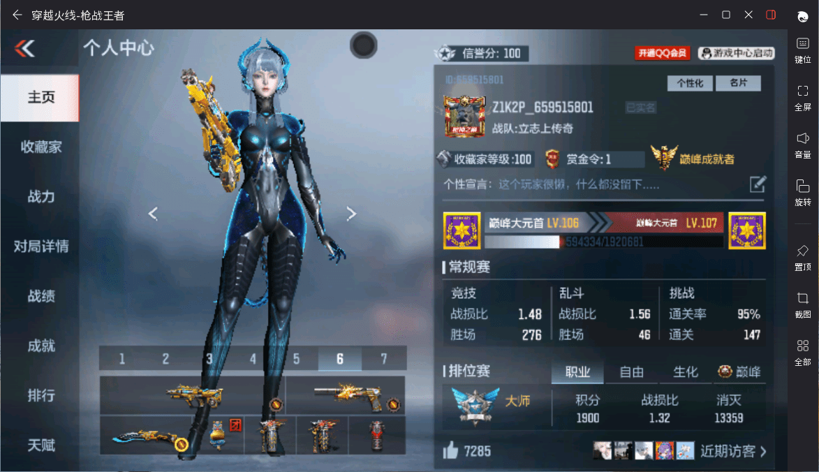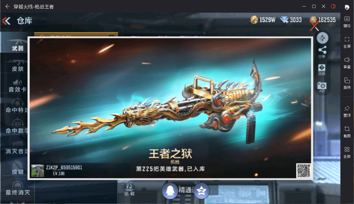 可二次实名 【可排位-可转区-钱包已删】安卓qq-贵6-225v-收藏176武器-10把钥匙-375万化-6王者【/王者之狱/王者之蝶/王者之业/1套王者之竞雷/】【文远套/妙才套/毁灭套/鼓龙套/m200-幻神/ak47-常胜/m4a1-仲达/scar-文远-过载/an94-盖/m4a1-游骑兵/