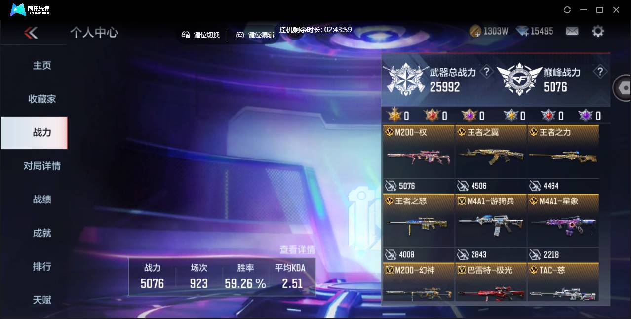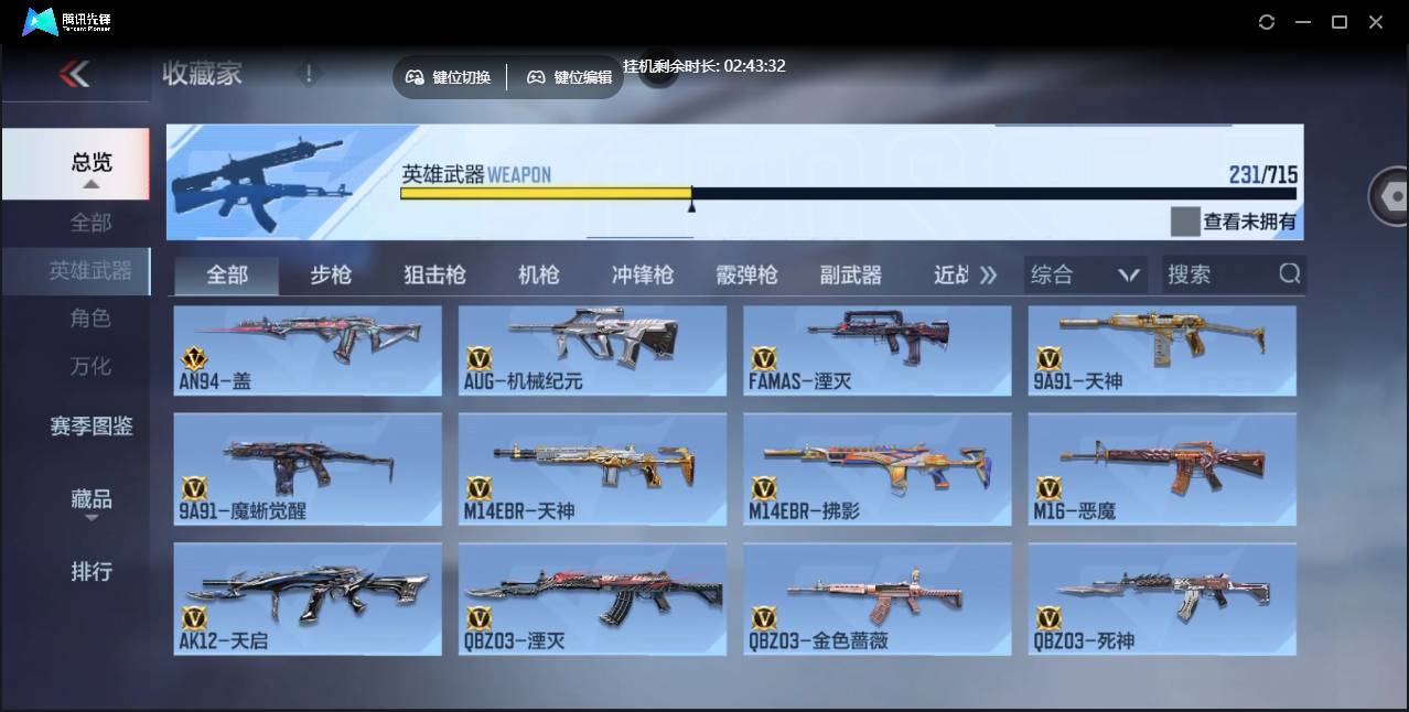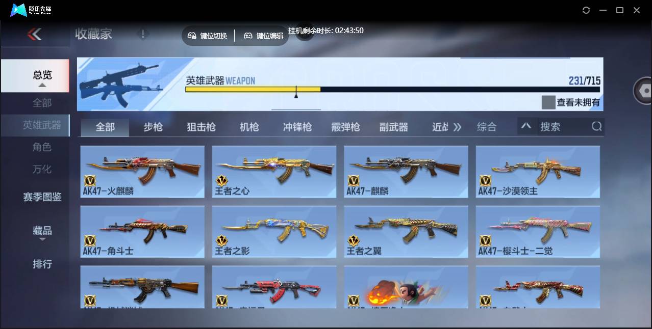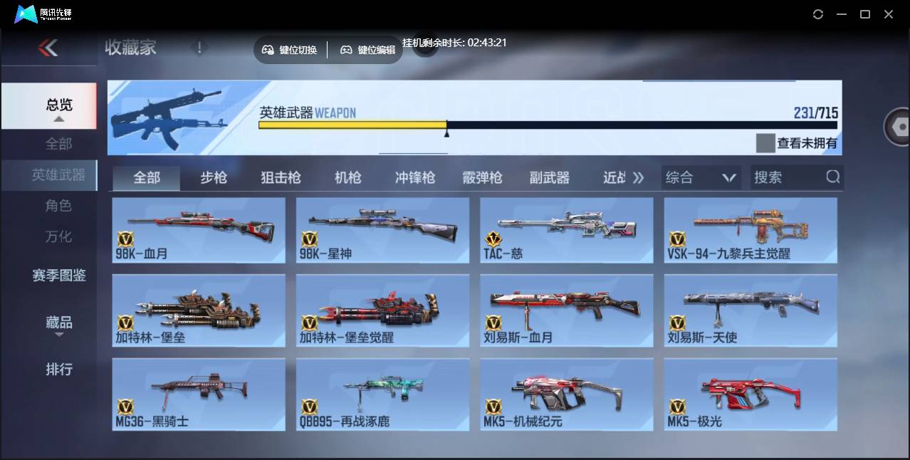 006fs:k2849安卓qq贵族8231英雄武器,422万化,38角色;王者武器:王者之力,王者之蝶,王者之翼,王者之影,王者之心,王者之神,王者之烈,m12s-雷霆王者,芭蕾特-雷霆王者,m4a1-雷霆王者,王者之誉,王者之魂,cop357-雷霆王者,王者之锋;三国武器:m4a1-星象,m4a1-卧龙,cz75-策,双管猎呛-文远,usp-仁德,双持glock18-本初,双持沙鹰-元让,丈八蛇矛,气勇胆烈戟,思召剑;热门武器:m200-幻神,awm-天龙,芭蕾特-雷霆,awm-大湾溢彩,awm-指南针,awm-指南针觉醒,vsk-94-九黎兵主觉醒,芭蕾特-冬灭觉醒,98k-血月,m200-心动次元觉醒,awm-裁决
