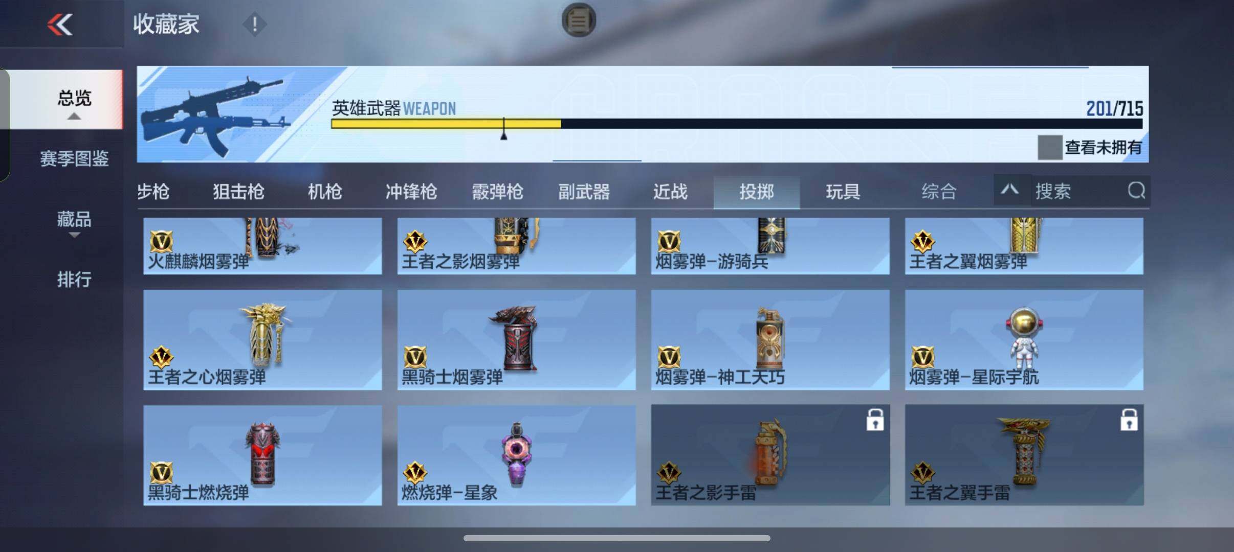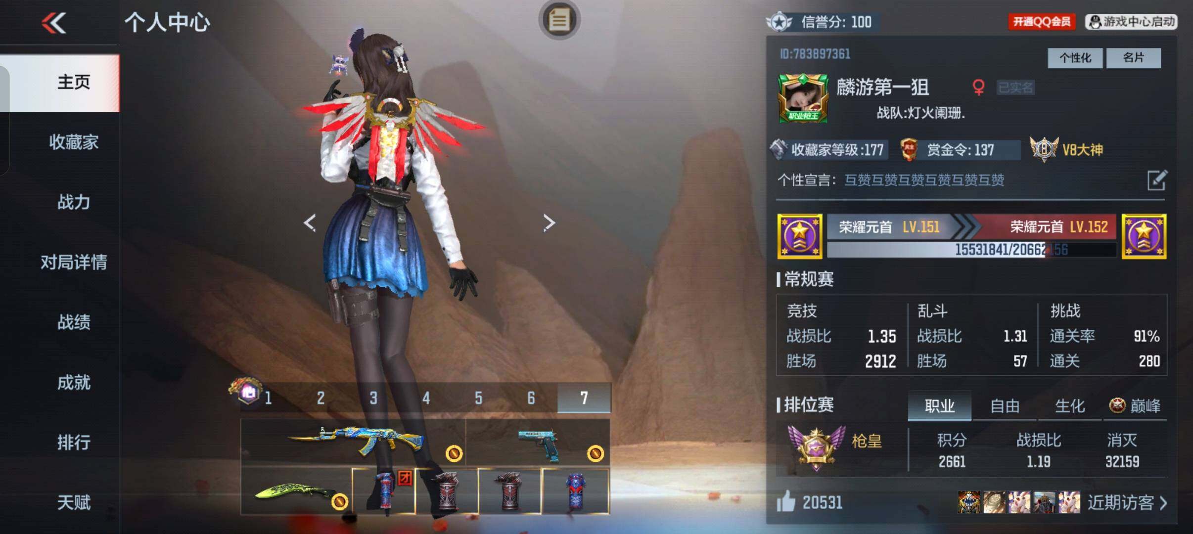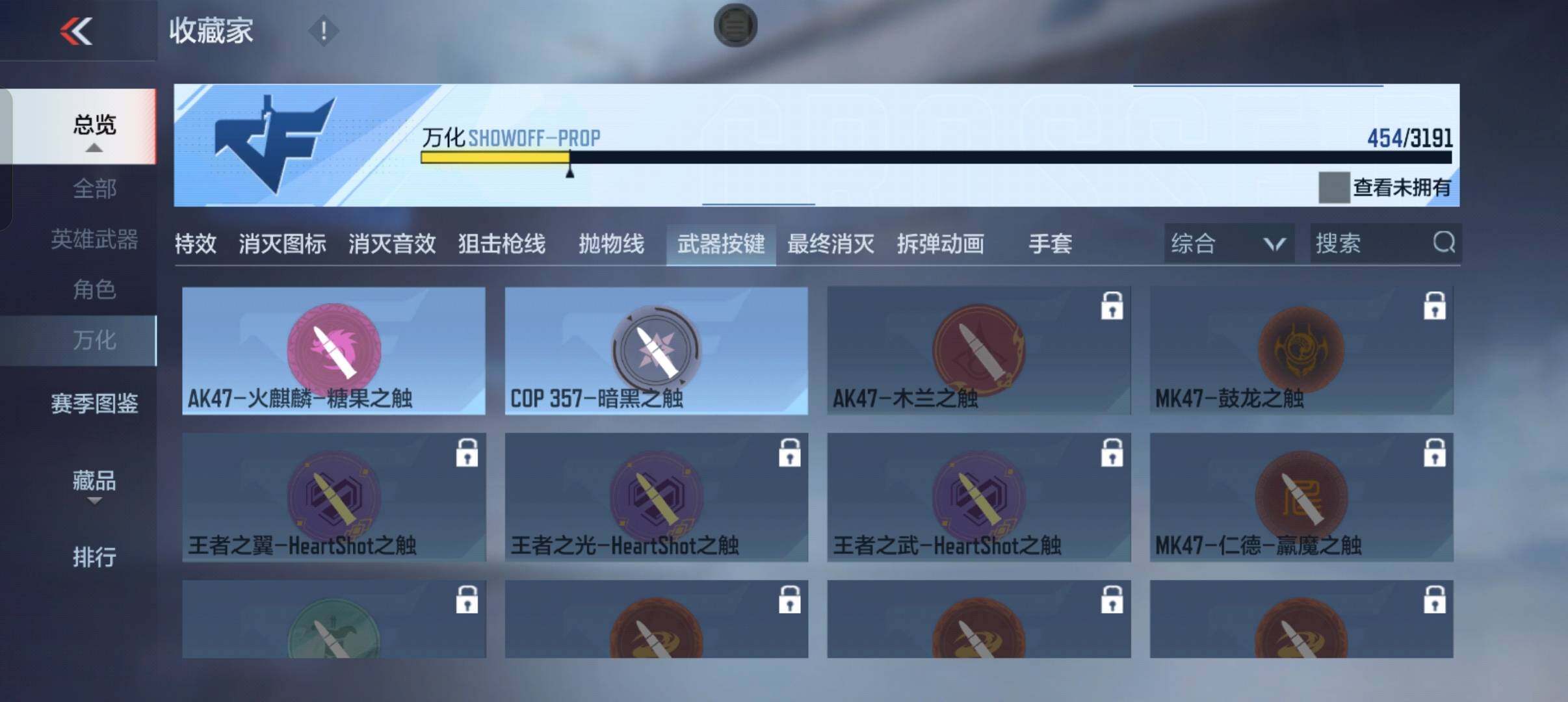 6英雄角色数-217英雄武器数 【王者系列】:王者之戮,王者之影,王者之武,王者之怒,王者之心,王者之锋,王者之狱,王者之魂,王者之霆 【热门武器】:81式-光明之神,m4a1-仲达,m4a1-星象,m4a1-游骑兵,tac-慈,m200-幻神,awm-游骑兵,cop 357-雷霆,cop 357-星象,81式-阿波罗,黄金cop 357,cop 357-a,m200-权 【角色】:审判者,樱2,子涵,职场灵狐-赛事经理,零-新生 【英雄武器】:ak47-无影,ak47-火麒麟,ak47-黑武士,ak47-冰魂觉醒,ak47-雷麒麟,ak47-血武士,ak47-波塞冬,ak47-华夏传说,ak47-木兰,m4a1-雷神2,m4a1-死神2,m4a1-玫瑰精灵,m4a1-游骑兵,m4a1-星象,m4a1-仲达,m4a1-机械迷城,m4a1-海骑士,m4a1-哈迪斯,m4a1-堕天神,m4a1-运输船,m4a1-千变,q95-幻兽,scar-探星者,scar-心动pick,an94-超新星,an94-赳赳秦师,9a91-魔蜥觉醒,m16-恶魔,q03-金色蔷薇,q03-死神,hk417-炎龙铠甲,81式-光明之神,q97-浩瀚征途,q191-封神榜,q191-帝皇铠甲,awm-天龙,awm-游骑兵,芭蕾特-毁灭3,芭蕾特-极光6,芭蕾特-安琪拉,芭蕾特-冬灭觉醒,m200-幻神,m200-心动次元觉醒,m200-权,98k-黑骑士,98k-星神,tac-慈,gm6-战争风云觉醒,vsk-94-金蚀,加特林-堡垒,加特林-炼狱,mk5-极光,汤姆逊-烈龙,寒霜烈龙,双持斯泰尔-天使2,qcw05-死神,p90-双脊龙,ddm4-pdw-星际宇航觉醒,地狱火,地狱烈炎,亡命之徒-幻兽,ksg-火力竞放觉醒,ksg-极光,usp-神罚,usp-机械迷城,usp-仁德,沙鹰-修罗3,沙鹰-火麒麟,沙鹰-无影,沙鹰-波塞冬2,沙鹰-神兵修罗,蟒蛇-火力竞放,双持glock18-本初,glock18-猎神,cop 357-星象,cop 357-雷霆,柯尔特-仲达,柯尔特-伏刹山海觉醒,双持柯尔特-极光,cz75-穷奇,mk23-幻神,mk23-双脊龙,白骨利刃,墨刃-幻神2,蝴蝶刀-天神,炽芒蝶刃2,龙啸2,神罚战斧,血阳,镰刀-哈迪斯,手斧-机械迷城2,秋逸觉醒,气勇胆烈戟,屠龙4,血月,尼泊尔-星象,龙鳞-觉醒,麒麟刺2,麒麟刺-堕天神,双脊龙趾,耀金雷刃,马来剑-毁灭3,丈八蛇矛,唐刀-华夏传说,唐刀-大唐荣耀2,擎天觉醒,三叉戟-波塞冬,双截棍-天使,丛林匕首-火力竞放,斩神刀,迷你饕餮