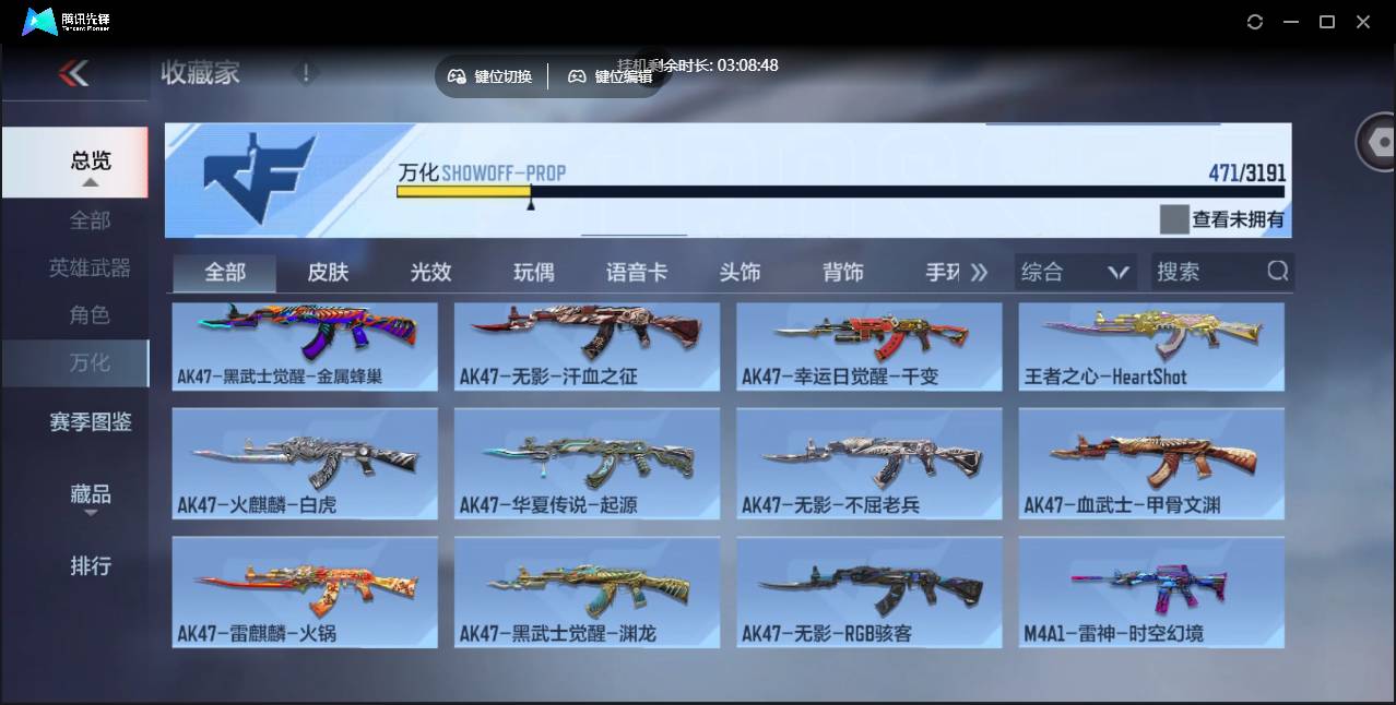 006fs:k2992安卓qvip6级,191英雄武器,471万化,42角色;王者武器:王者之霆,王者之心,王者之烈,m12s-雷霆王者,王者之击;三国武器:m4a1-武圣,m4a1-卧龙,81式-瑜,czs2-仲康,双管猎呛-威侯,glock18-武圣,双持glock18-本初,双持沙鹰-元让,虎头湛金呛;热门武器:m200-幻神,awm-天龙,awm-大湾溢彩,98k-星神,98k-蜻蜓,gm6-战争风云觉醒,芭蕾特-冬灭觉醒,m200-心动次元觉醒,mr1-龙吟惊沧海,芭蕾特-金色蔷薇,09式狙-天神,m4a1-雷神,m4a1-赛博雷神,m4a1-游骑兵,scarlight-白虎,hk417-朱雀,m12s-雷霆,hk417-炎龙铠甲,ksg-钟馗觉醒,m1887-幽冥玄喵觉醒,an94-盖,m14ebr-葫芦山庄,scar-心动pick,m4a1-铁胆虎魄,ak47-雅韵青花,hk416-极光,9a91-魔蜥觉醒,q03-玉面羞花,ak47-破空冰刃,ak47-木兰,9a91-天神,scar-探星者,m4a1-夏清,m4a1-运输船,ak47-华夏传说,mk47-云舞,81式-光明之神,m4a1-海骑士,ak47-血武士,ak47-雷麒麟,ak47-心动次元,m4a1-堕天神,an94-卷帘大将军,ak47-沙漠郡主-二觉,q03-死神,ak47-幸运日觉醒,q19-天使,m4a1-猎神,ak47-黑鲨,ak47-变色龙,ak47-樱斗士-超觉,q03-金色蔷薇,m4a1-君威gs,ak47-耀金伯爵,ak12-天启,scar-幽暗骑士,ak47-沙漠领主,m4a1-黑龙,m4a1-黑骑士,ak47-无影,9a91-诛仙四剑,双持czs2-魔礼寿,fnf2000-十绝阵觉醒,m14ebr-拂影,ak47-黑武士觉醒,ak47-火麒麟,双管猎呛-黑骑士,usp-太白诗仙,mk23-机械纪元,mac-10-孟获,qsz92-冰魂觉醒,蛮神巨斧,匕首-冰魂觉醒,修罗之刃,太白诗仙扇,末日裁决觉醒,环刃-炫光掠影觉醒,尼泊尔-火麒麟,ak47-无影-葵,m4a1-黑龙钰-子涵,m4a1-游骑兵-香香;生化武器:王者之烈,rpk-盘龙,嗜血金鲨,m4a1-死神挑战武器:加特林-堡垒,地狱烈炎,寒霜烈龙,rpk-赤炎盘龙;角色:关小雨,零水下丽影,雅典娜,职场灵狐赛事经理,春节兰x,夏日灵狐x,曼陀罗09x,关小雨x,救世主x;武器皮肤:王者之心-heartshot,glock18-武圣-傲魔,ak47-火麒麟-虎牙,m4a1-游骑兵-航轩,铁锹-游骑兵-永恒誓约;详情看图