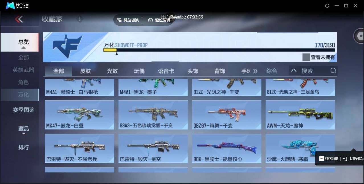 006fs:k3007 vip6级,135英雄武器,170万化,24角色;王者武器:王者之影,王者之迹;三国武器:ak47-元让,m4a1-卧龙,mk47-仁德,czs2-仲康,双管猎呛-文远,双持glock18-本初;热门武器:awm-天龙,98k-星神,98k-黑骑士,awm-指南针,tac-晴舞,09式狙-天神,m4a1-雷神,m4a1-太白诗仙,scarlight-白虎,g3a3-衍神兵,q03-天罚,scar-心动pick,q191-封神榜,ak47-谜城烟火,ak47-塔罗牌觉醒,m14ebr-拂影,ak47-轮回,g3a3-五色琉璃觉醒,q03-玉面羞花,scar-印刷术觉醒,scar-印刷术,scar-守护者觉醒,ak47-破空冰刃,mk47-鼓龙,ak47-木兰,9a91-天神,m4a1-夏清觉醒,m4a1-运输船,m4a1-破空冰刃,81式-光明之神,ak47-血武士,m4a1-机械迷城,q03-死神,m14ebr-天神,m4a1-龙血,q03-金色蔷薇,scar-幽暗骑士,ak47-沙漠领主,ak47-火麒麟,9a91-诛仙四剑,fnf2000-十绝阵觉醒,改装glock-樱龙·超觉,太白诗仙扇,修罗之刃,m4a1-黑龙钰-子涵;生化武器:m4a1-死神,cbj-ms-毒蜂挑战武器:mg36-变形金刚·威震天,加特林-堡垒觉醒,加特林-堡垒;武器皮肤:王者之翼闪光丹-heartshot;详情看图【苹果qq】【可二次实名