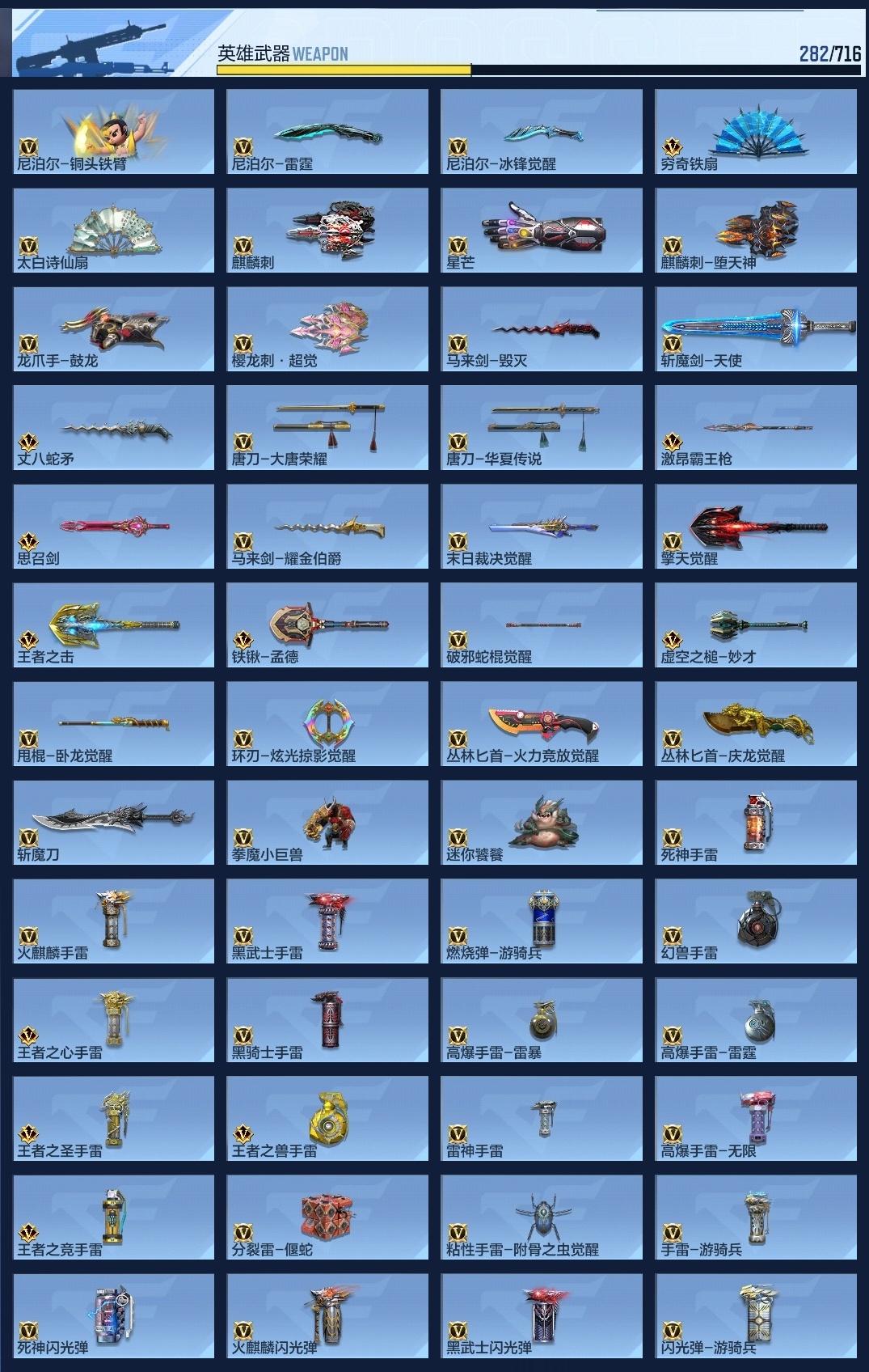 640666 【极品特价狙号-25王者-2至尊1同框-权-慈-幻神套-仁德-常胜-宙斯-5cop-3套王雷-竞技生化双开花】 王者v武器数量25 英雄武器数量282 音效卡数量13 万化数量662 vip等级【文本】vip8级 狙击呛线数量2 消灭音效数量5 游戏等级130 【呛皇】 【支持】 【是】 【可排位】 【可排位】 音效卡13 狙击呛线2 消灭音效5 语音卡6 抛物线8 音效卡:王者之魄-现代战场,王者之影-现代战场,王者之怒-现代战场,王者之神-现代战场,ak47-无影-电音,芭蕾特-毁灭-现代战场,81式-瑜-现代战场,m4a1-仲达-原汁原味,加特林-炼狱-爆竹贺岁,ak47-孟德-现代战场,mk47-鼓龙-嘴炮,m4a1-雷神-电音,ak47-无影-现代战场; 狙击呛线:狙击呛线-螺旋烟雾,狙击呛线-江东骇虎; 消灭音效:消灭音效-赏金猎人,消灭音效-8bit,消灭音效-能量核心,消灭音效-葫芦娃,消灭音效-斩杀; 语音卡:晴雅语音卡,雾萌萌语音卡,雨墨语音卡,蛇精语音卡,葫芦娃语音卡,云悠悠语音卡; 抛物线:抛物线-能量核心,抛物线-字,抛物线-heartshot,抛物线-绿,抛物线-蓝,抛物线-黄,抛物线-粉,抛物线-诸神黄昏;