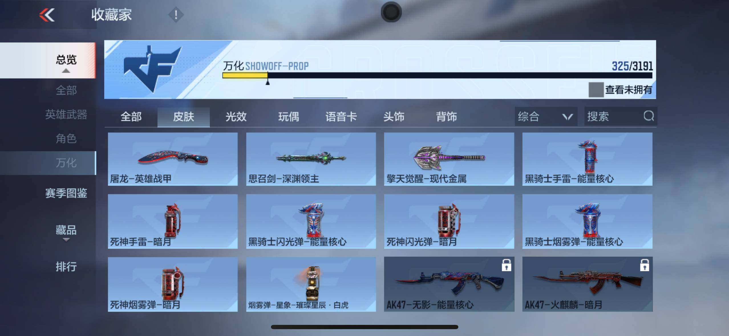 v6/7王者/254英雄/王者之影/王者之心/王者之魂/王圣烟雾4/ak奉先套装无双/an94盖/mk47仁德/m4游骑兵/81式光明之神/m200幻神/czs2仲康/黑铁cop/mk23机械纪元2/双持沙鹰元让/双持glock18本初/双管猎呛文远/屠龙7/炽芒蝶刃/角色/炽天使-x/消灭音效/巴巴塔/能量核心/诸神黄昏/狙击呛线/荣耀2/
